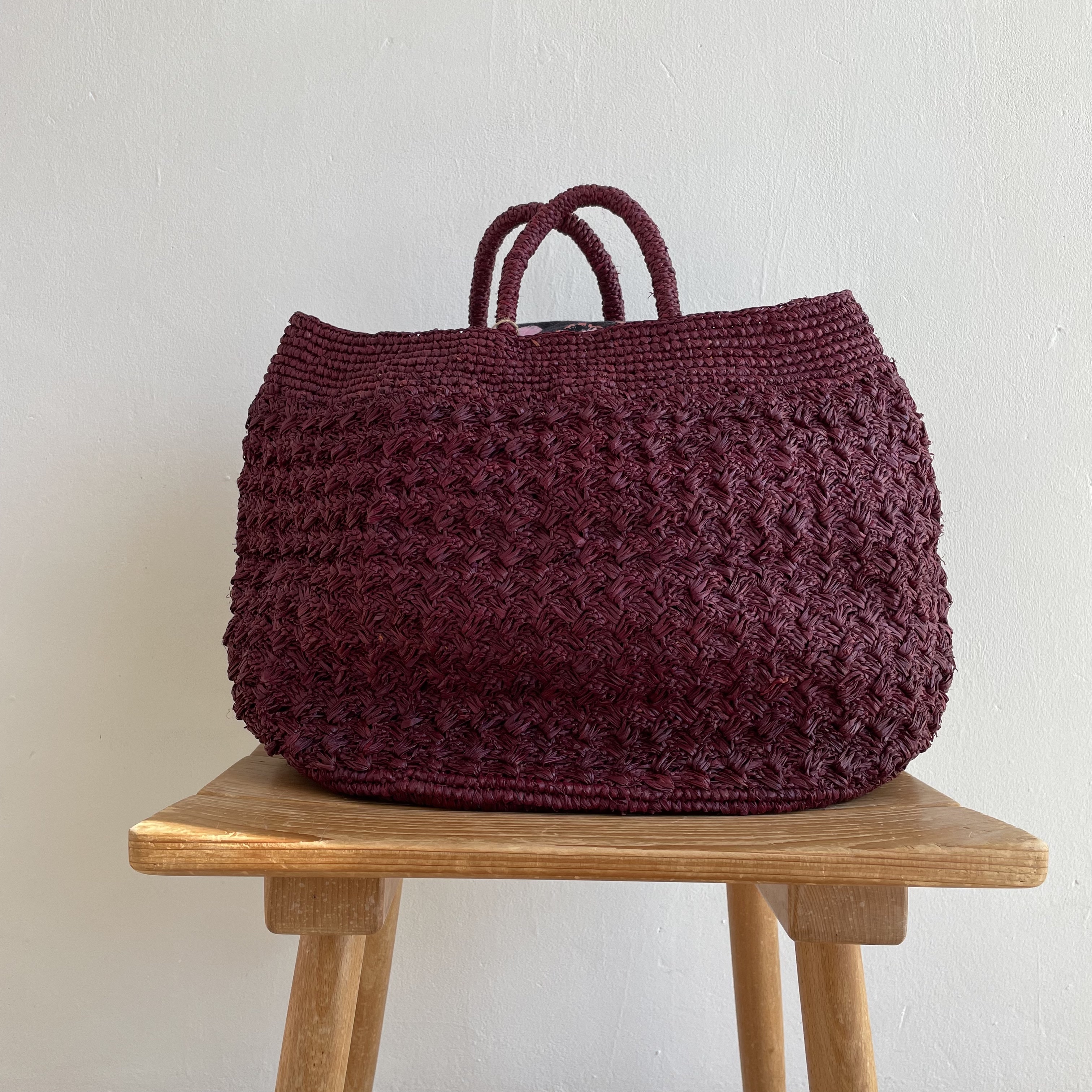 RAFFIA, LARGE BAG FROM MADAGASCAR / AUBERGINE/BORDEAUX / FAIR TRADE