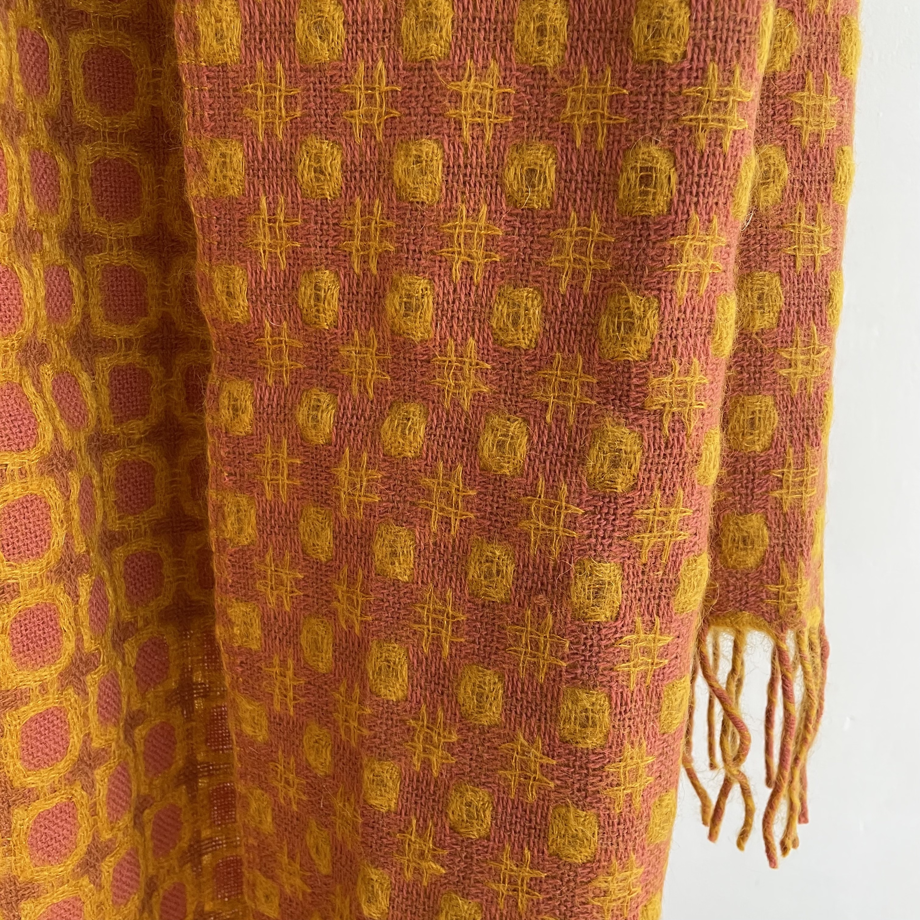 26% Mohair, 66% Merino, 8% Polyester(eine Ausnahme, weil es technisch nicht anders möglich ist diese Decke zu weben)