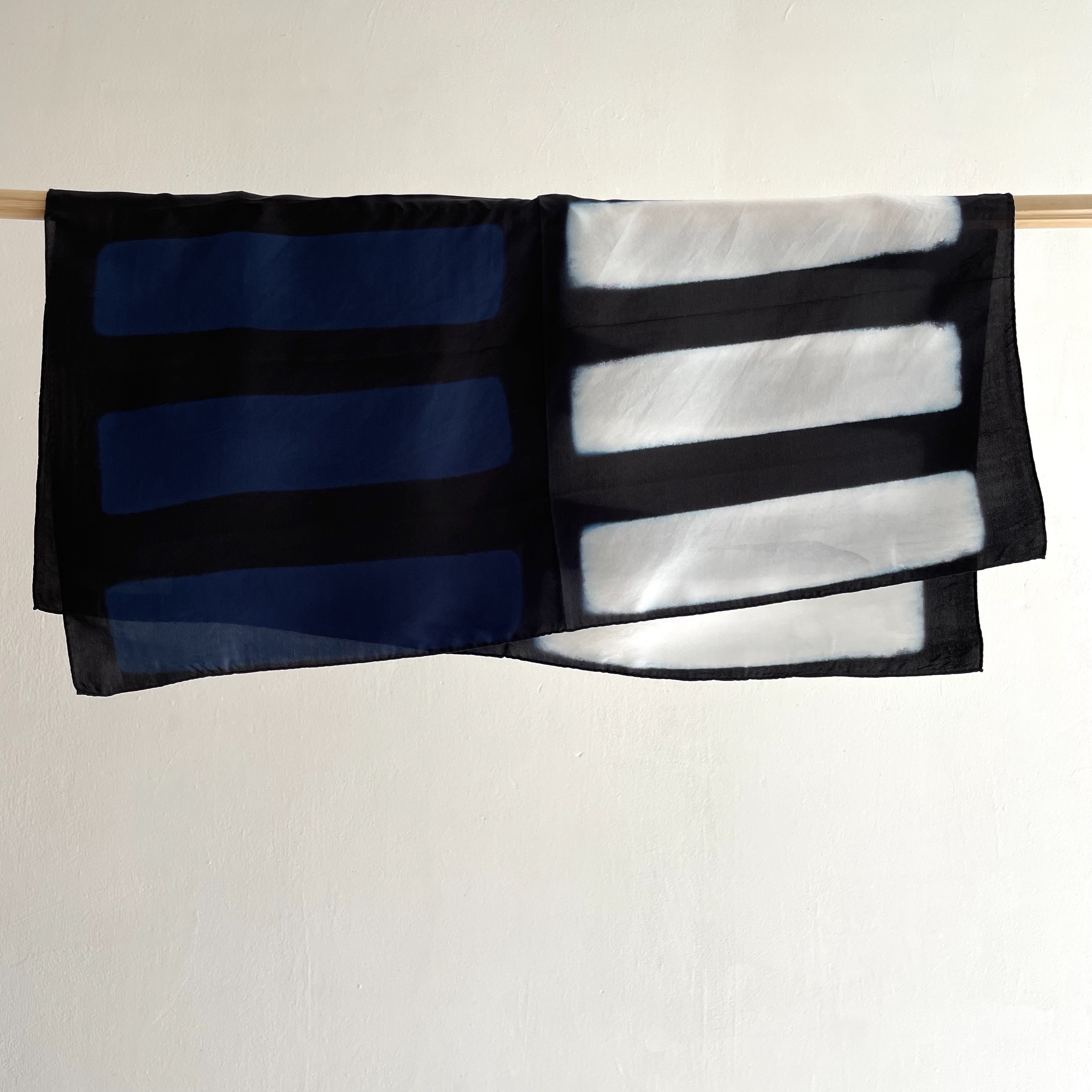 AILLEURS, SILK BANDANA BY DENOVEMBRE, CUMULUS BLUE & BLACK