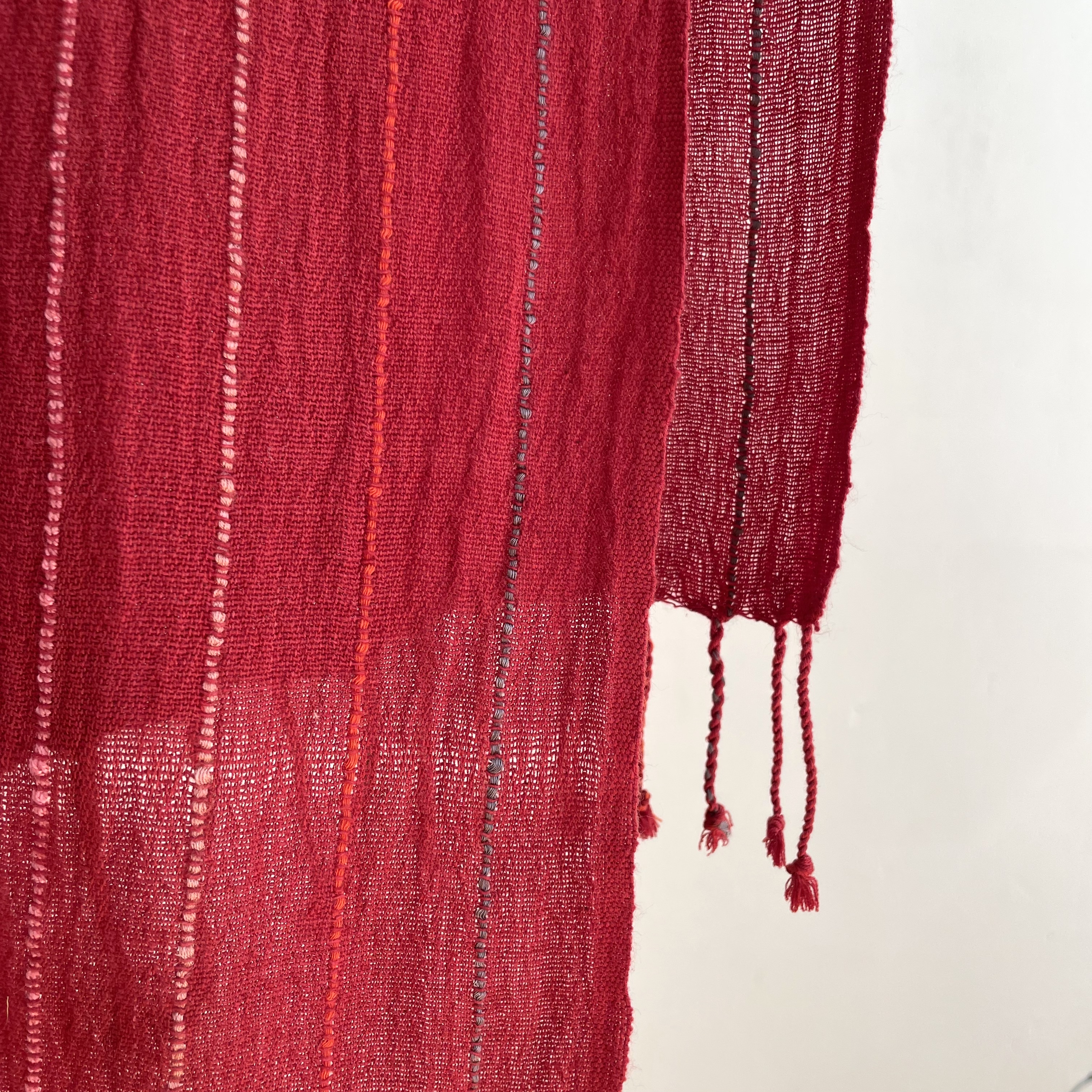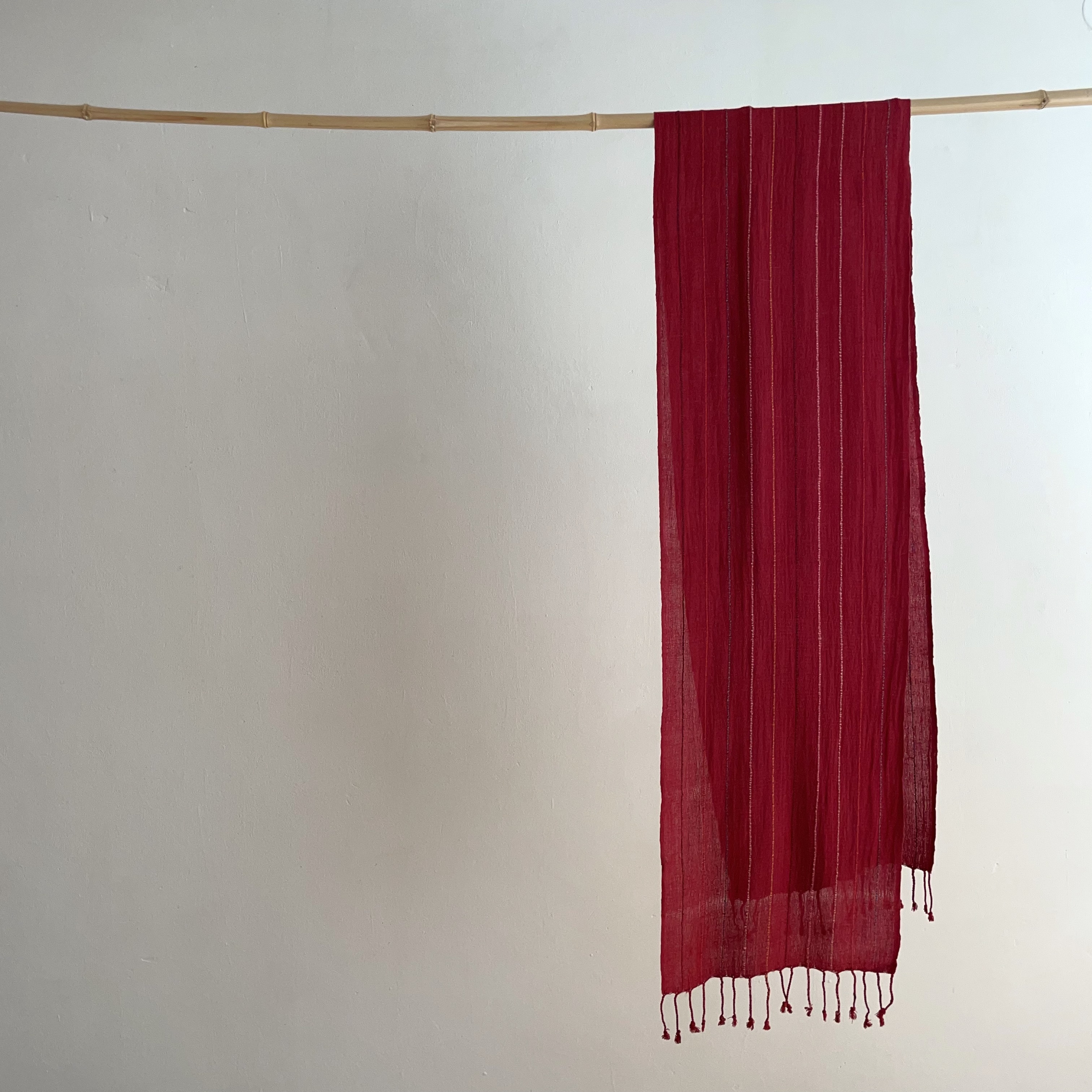 Handwoven Cotton & Viscose Scarf, fair trade, Red & Stripes