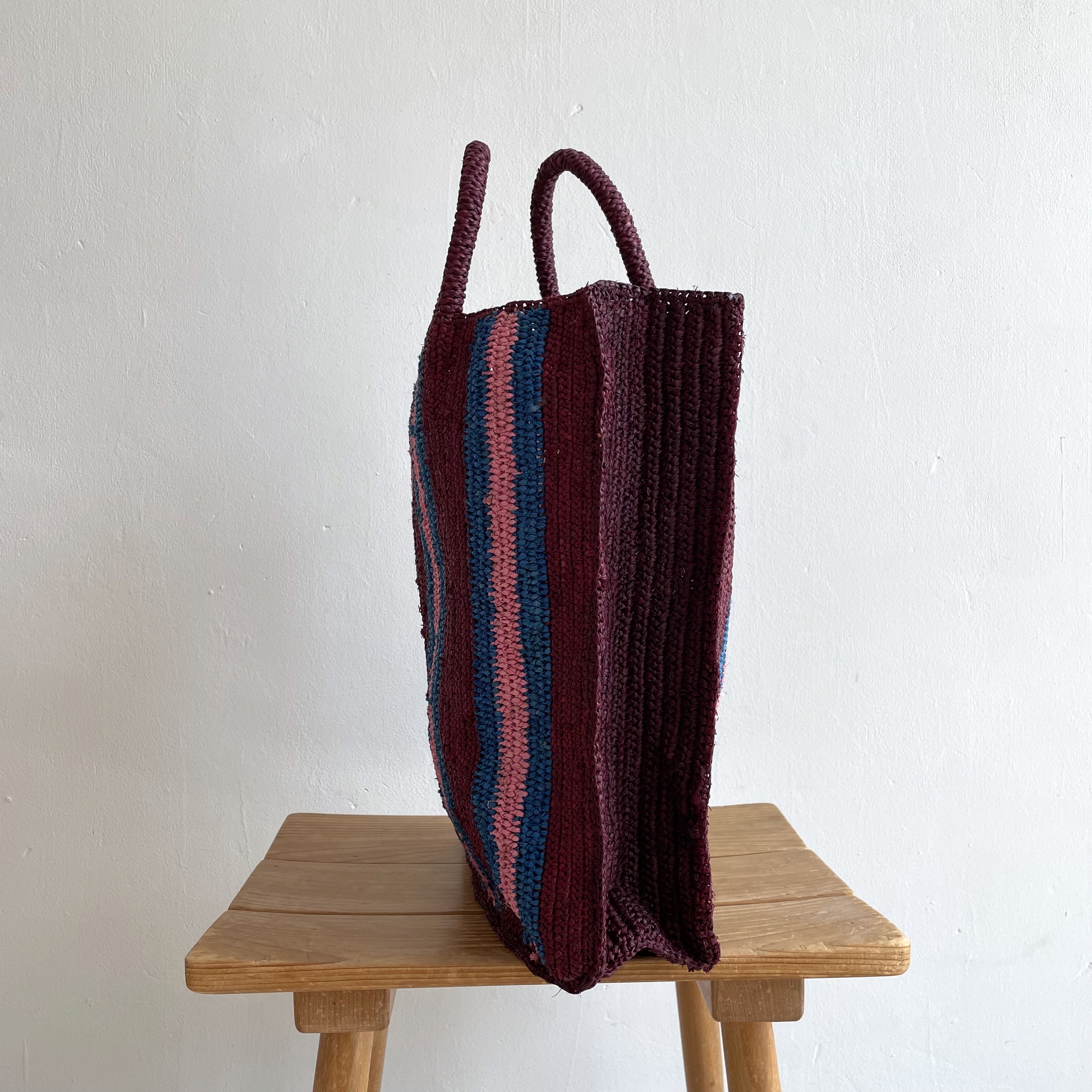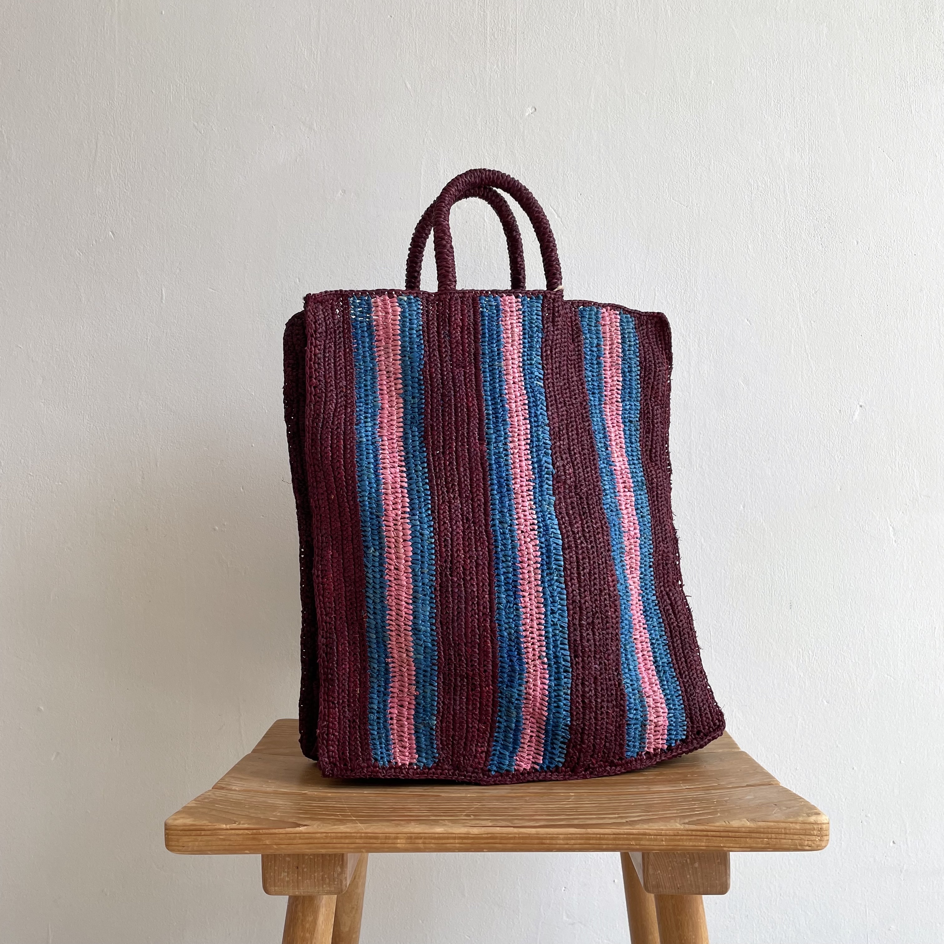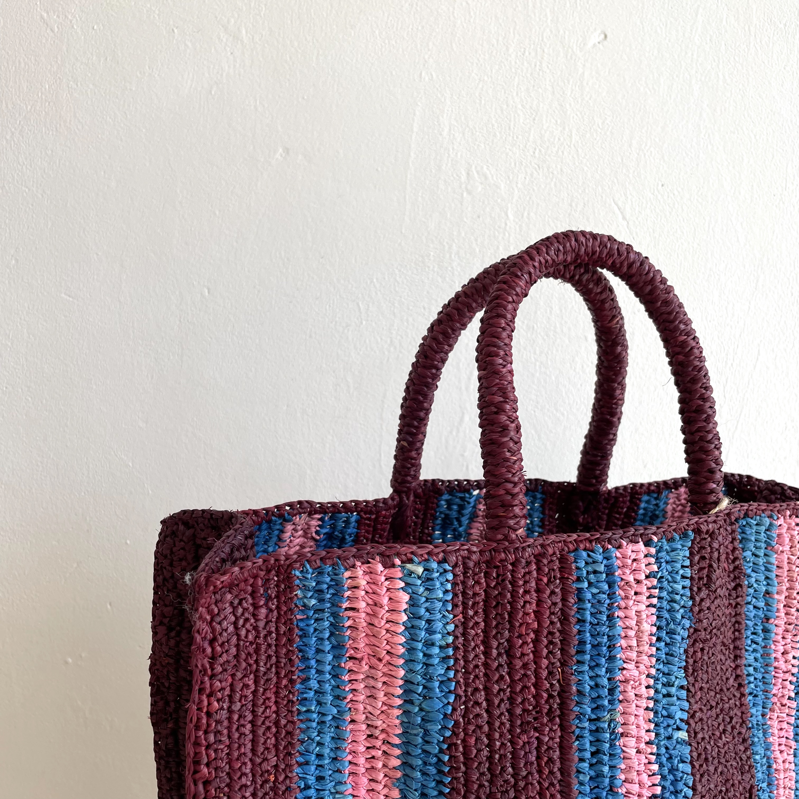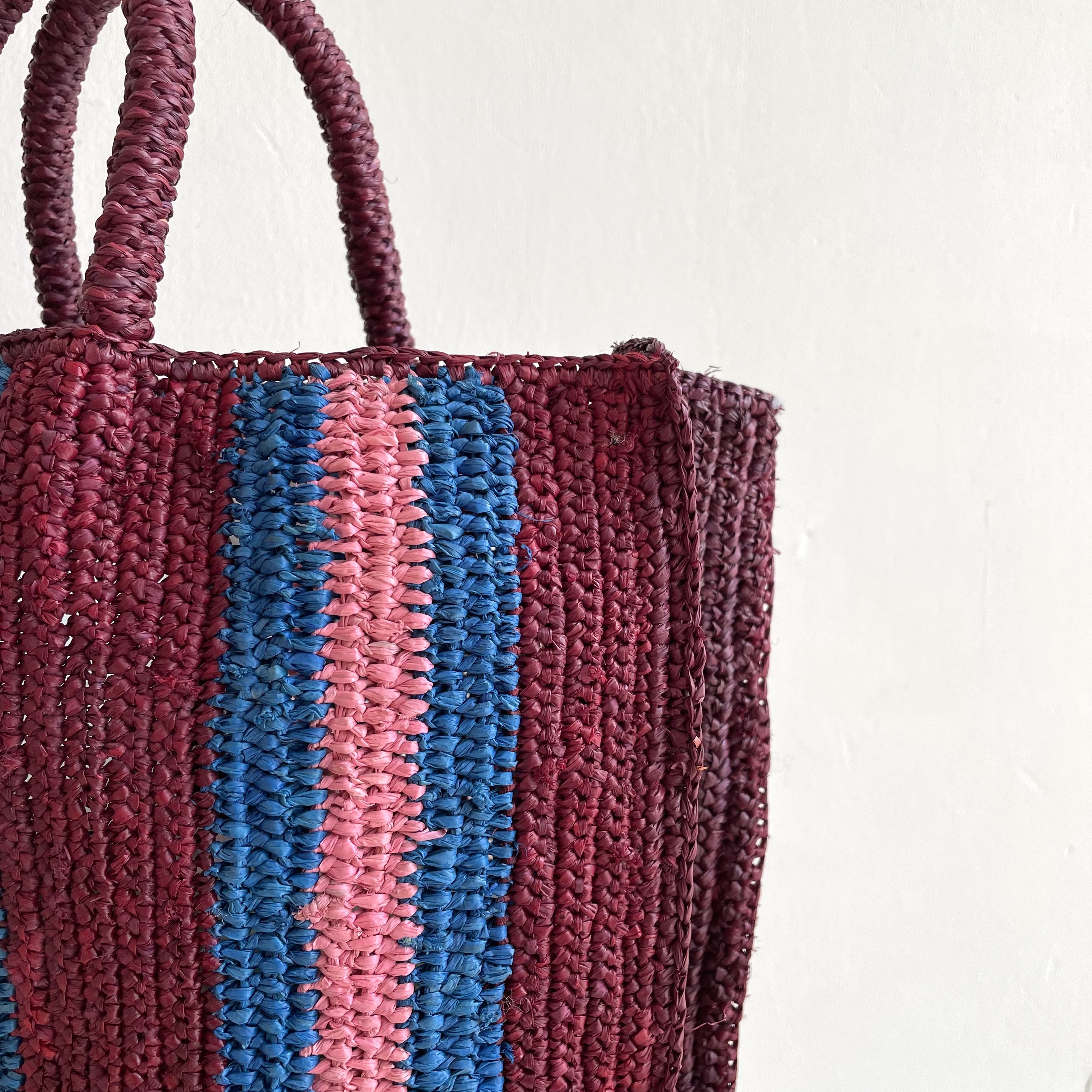 Raffia Tote from Madagascar / Aubergine-Bordeaux, Turquoise, Pink / Fair Trade