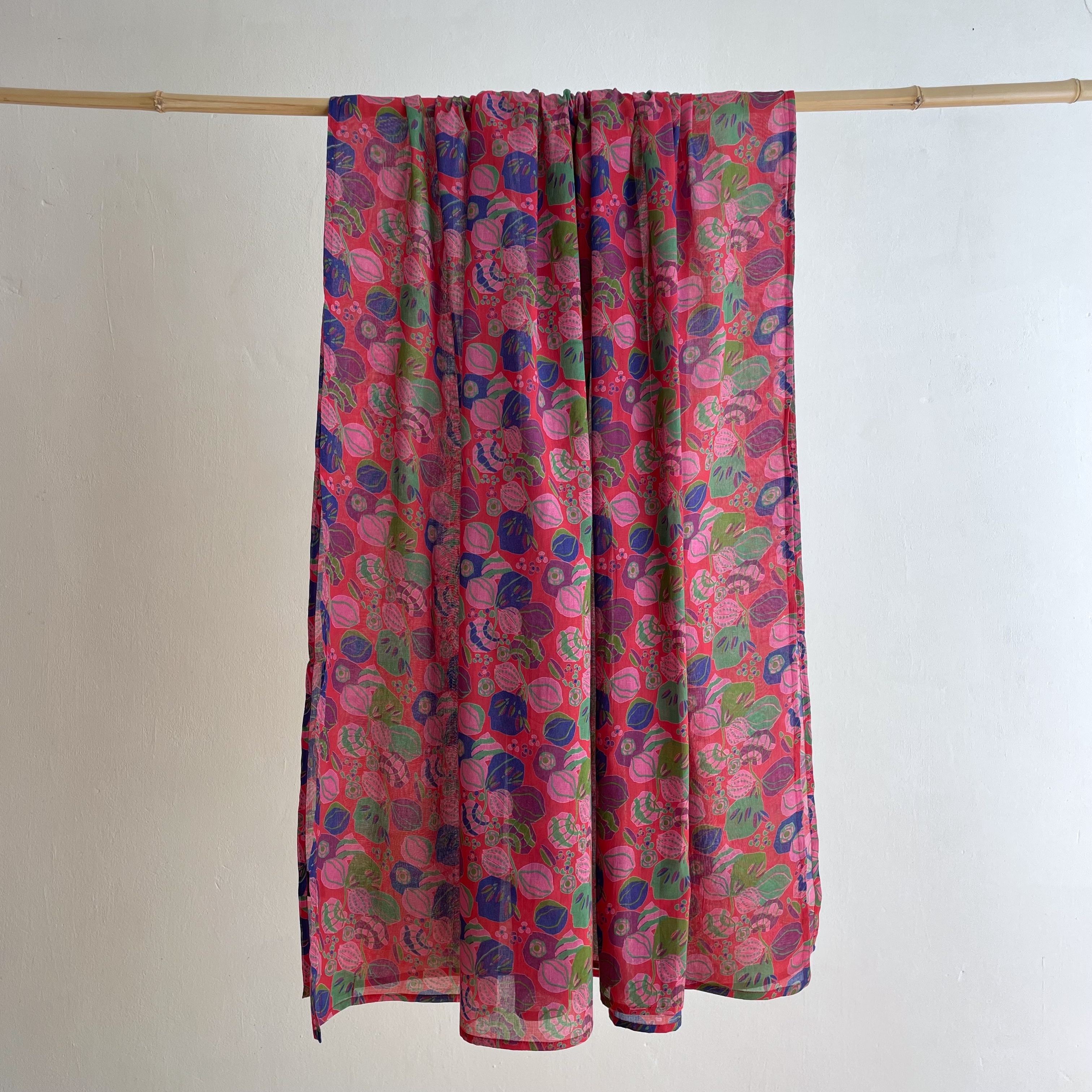 Wrap, Woodblock Print, Cotton, Bloom Red
