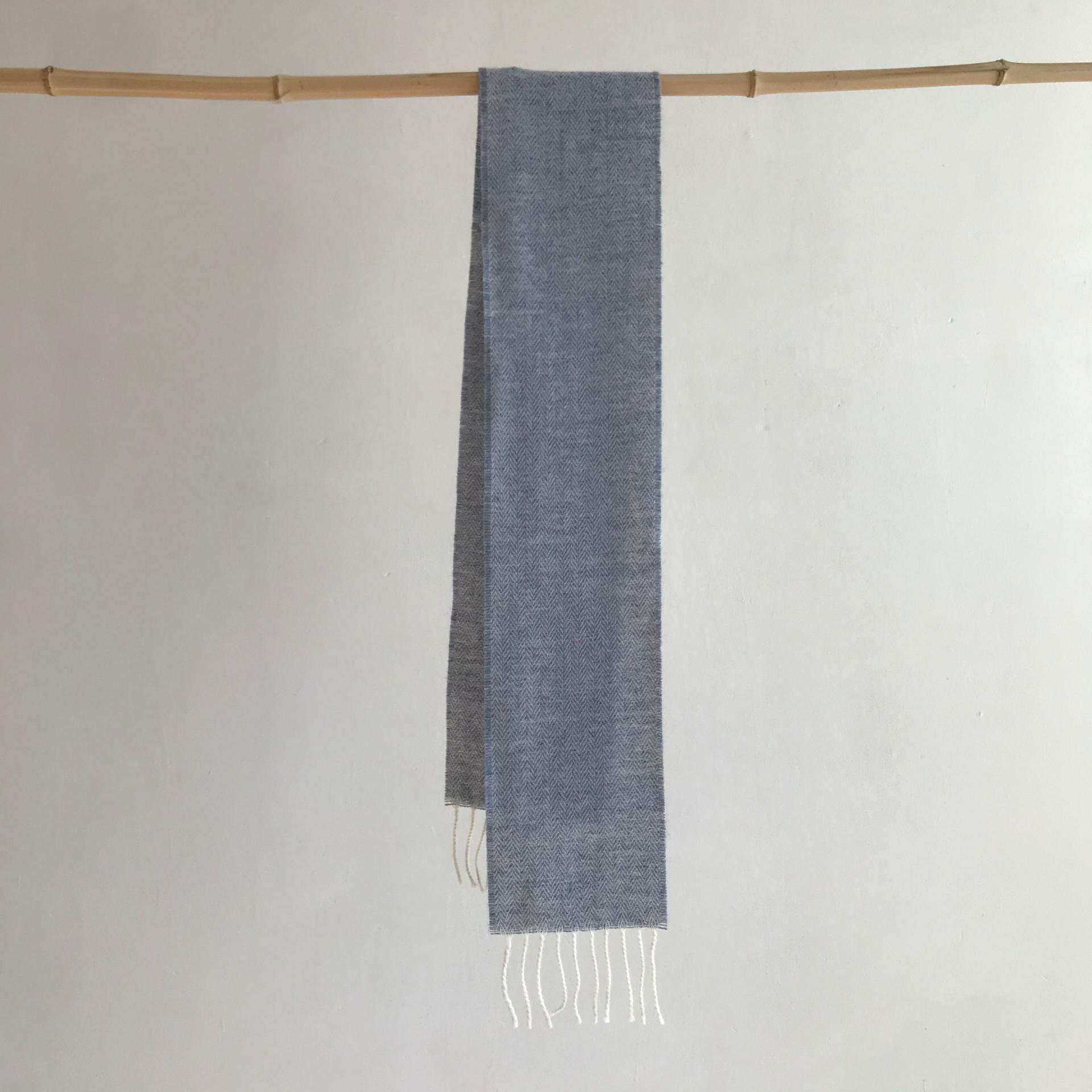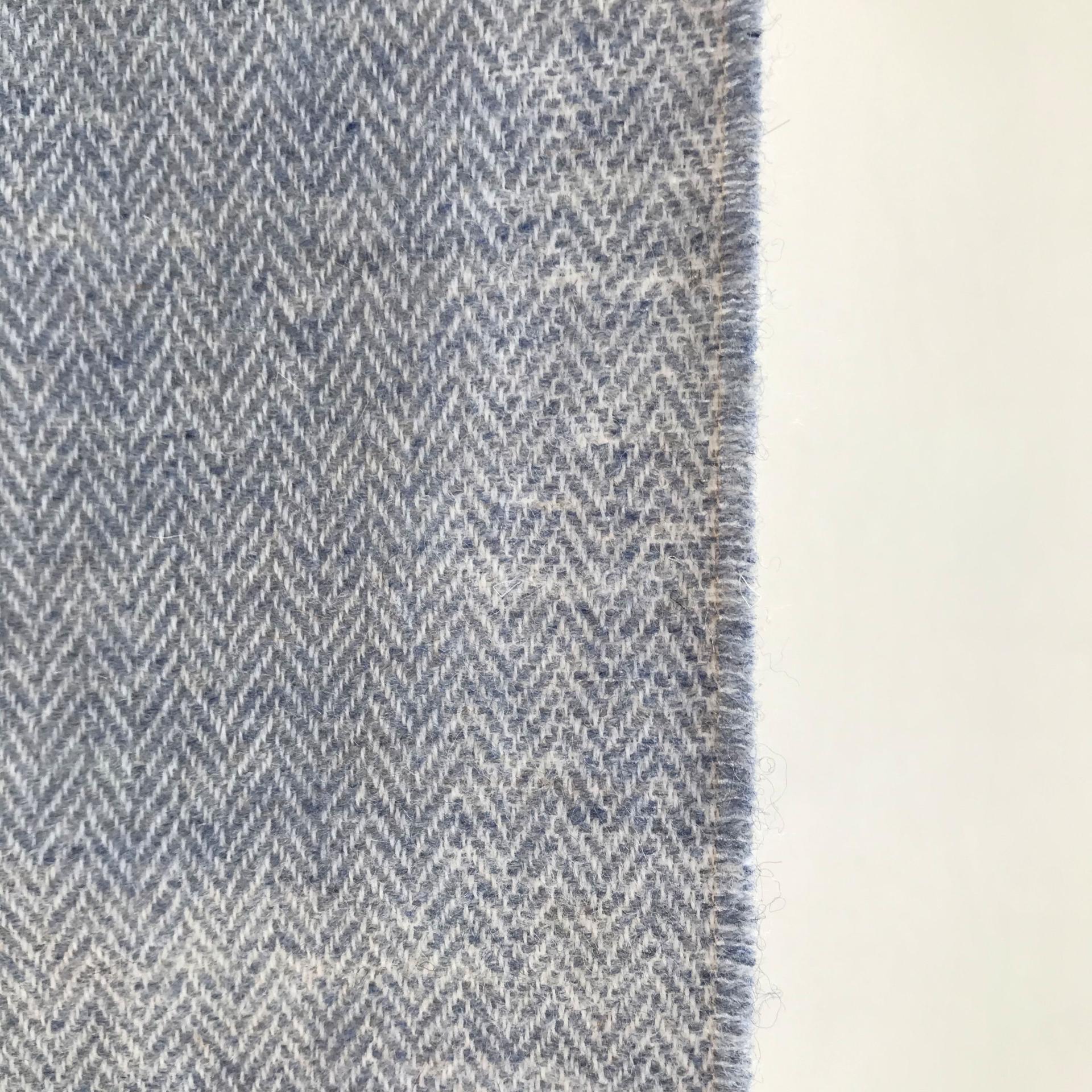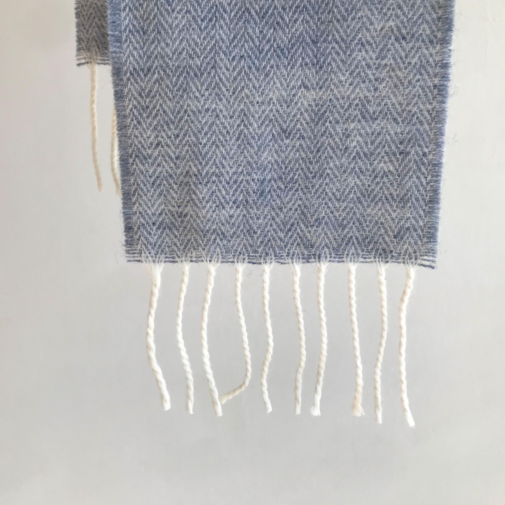 niedlicher Kinderschal in zartem Blau und Wollweiß, kleines Fischgrät