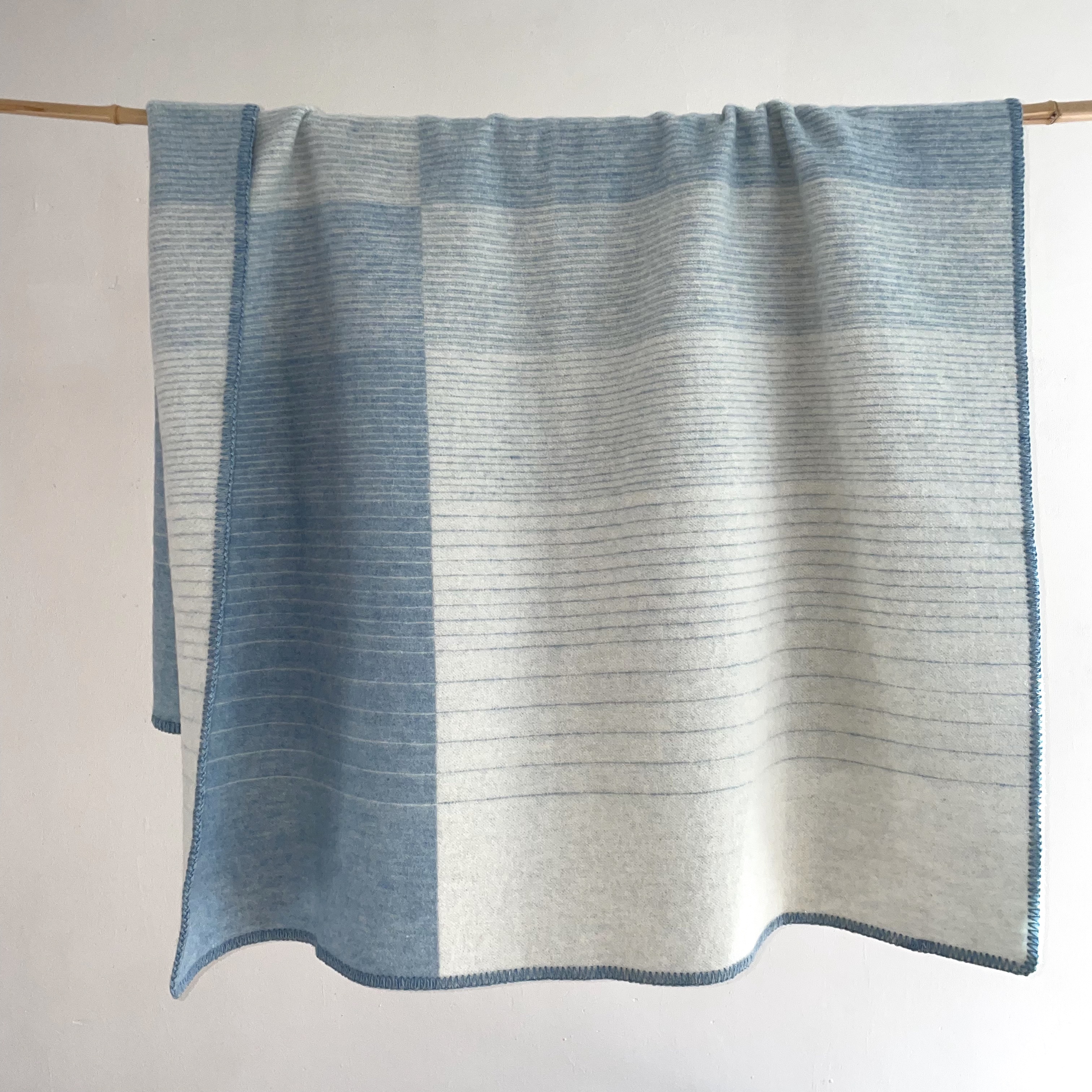 Wollweiß und Hellblau, mit Färberwaid aus Finnland gefärbt!
