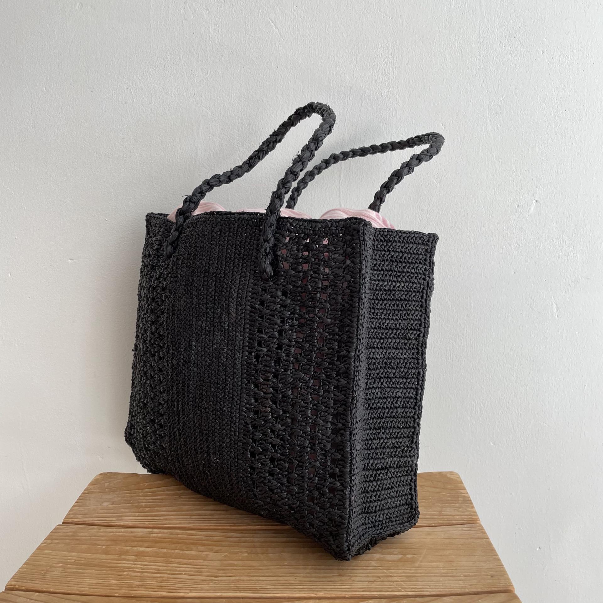 CHIC BLACK RAFFIA BAG, FAIR TRADE, HANDMADE