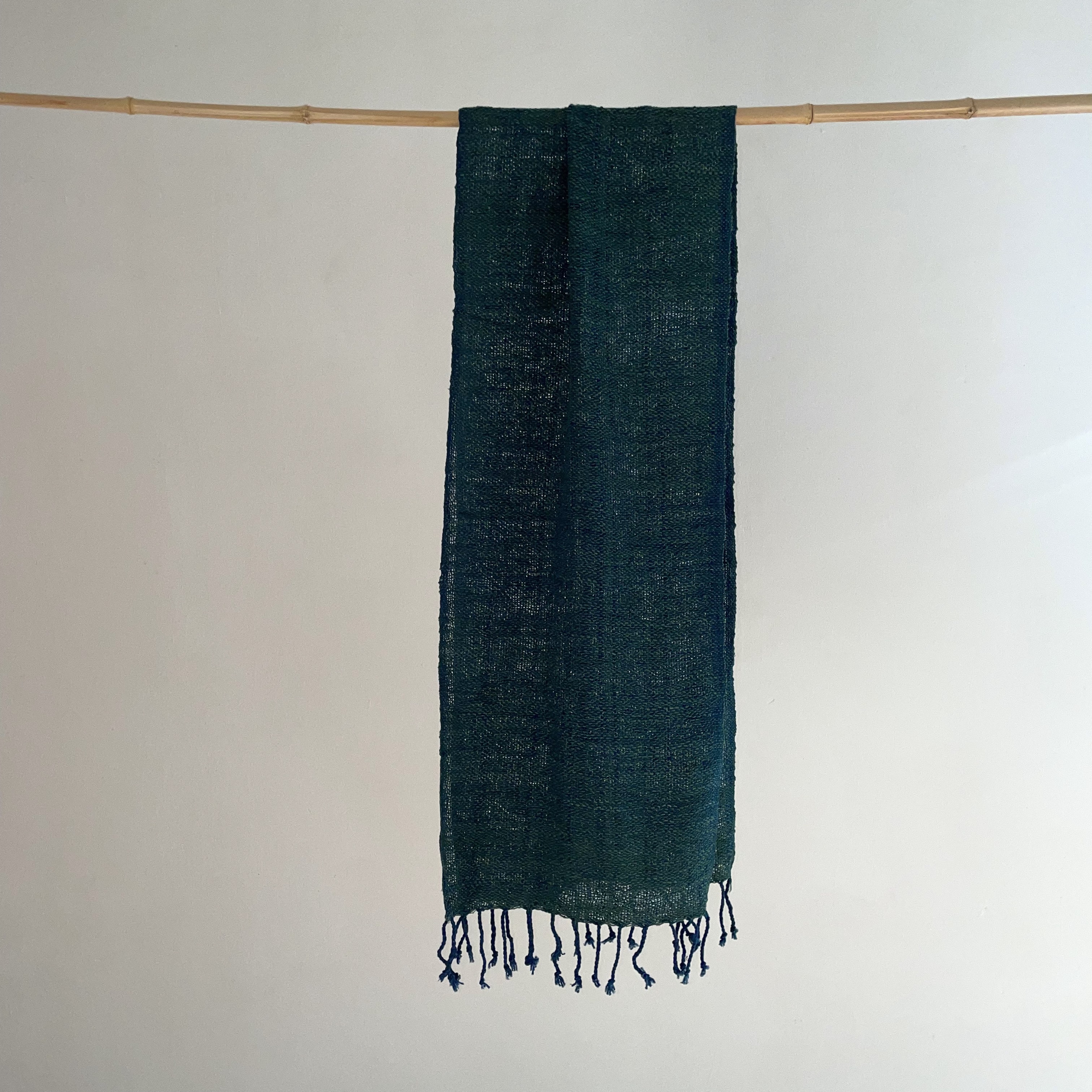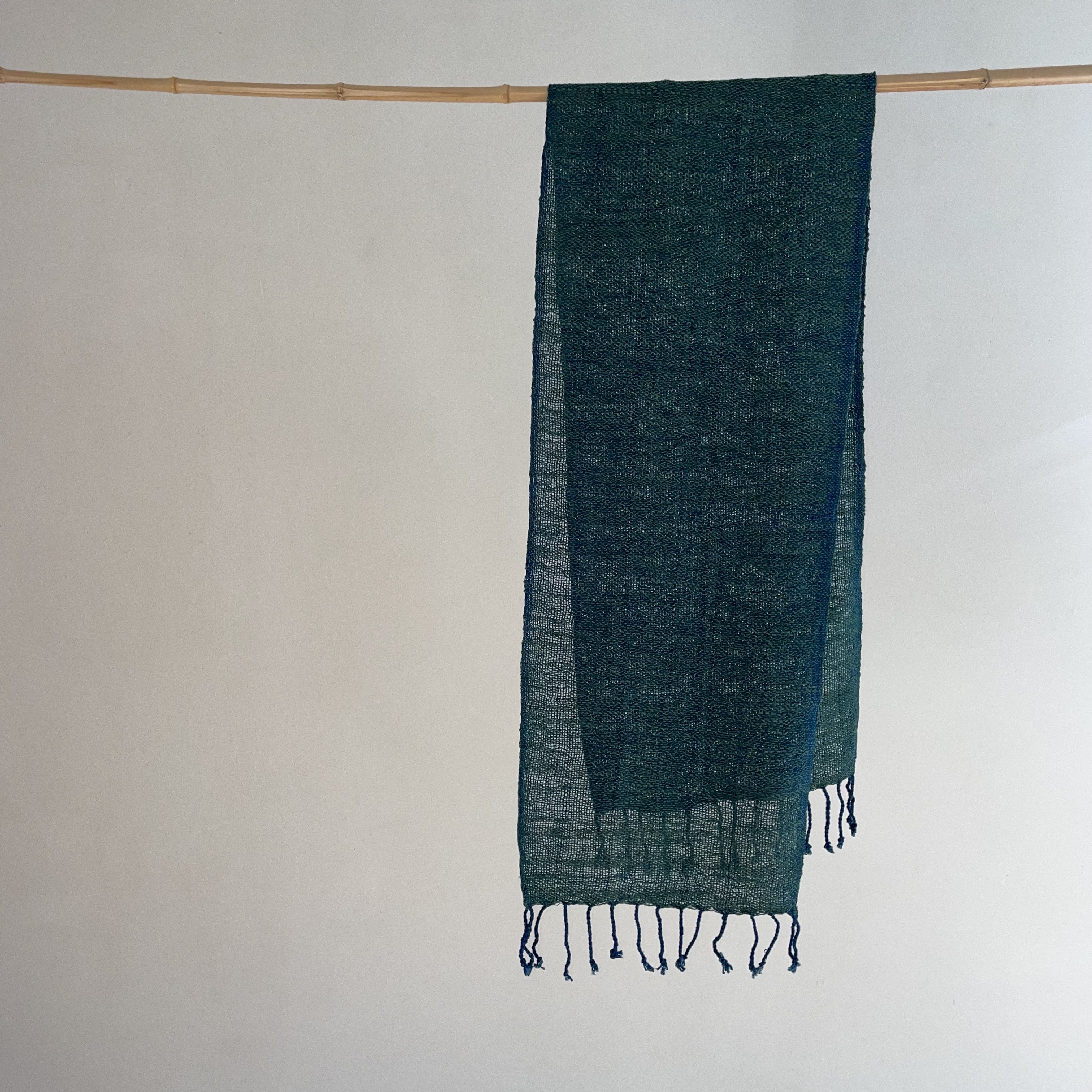 Handwoven Cotton Scarf from Laos, real Indigo & Green