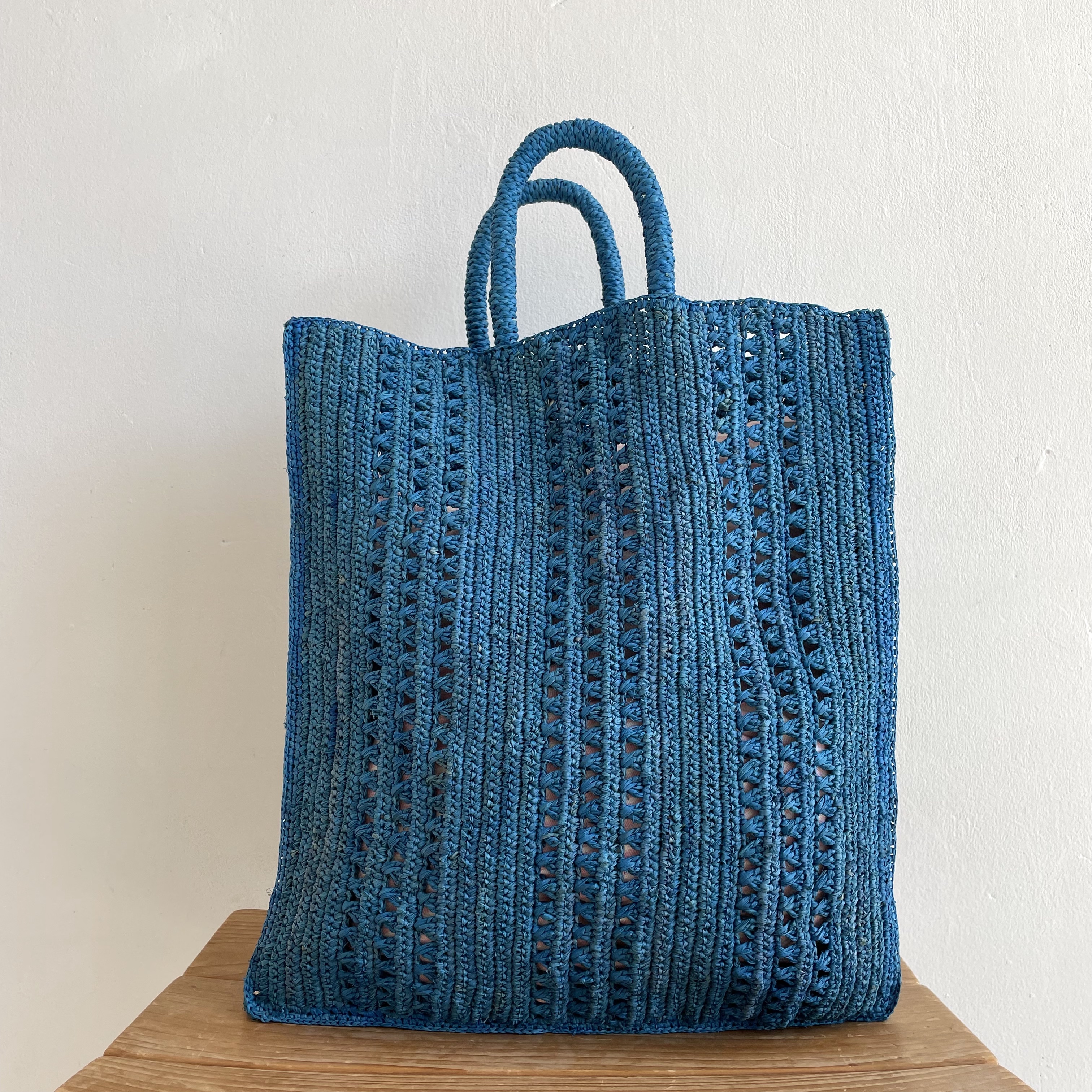 RAFFIA TOTE FROM MADAGASCAR / TURQUOISE / FAIR TRADE