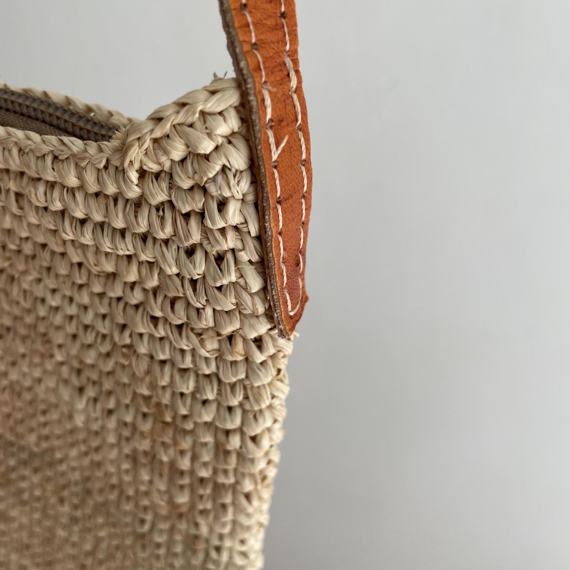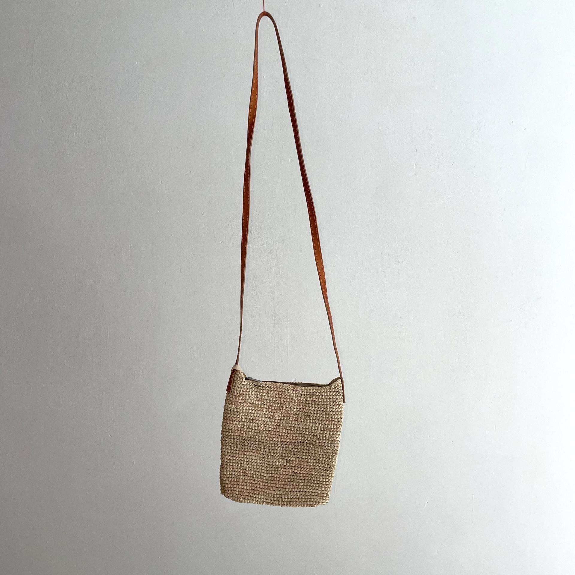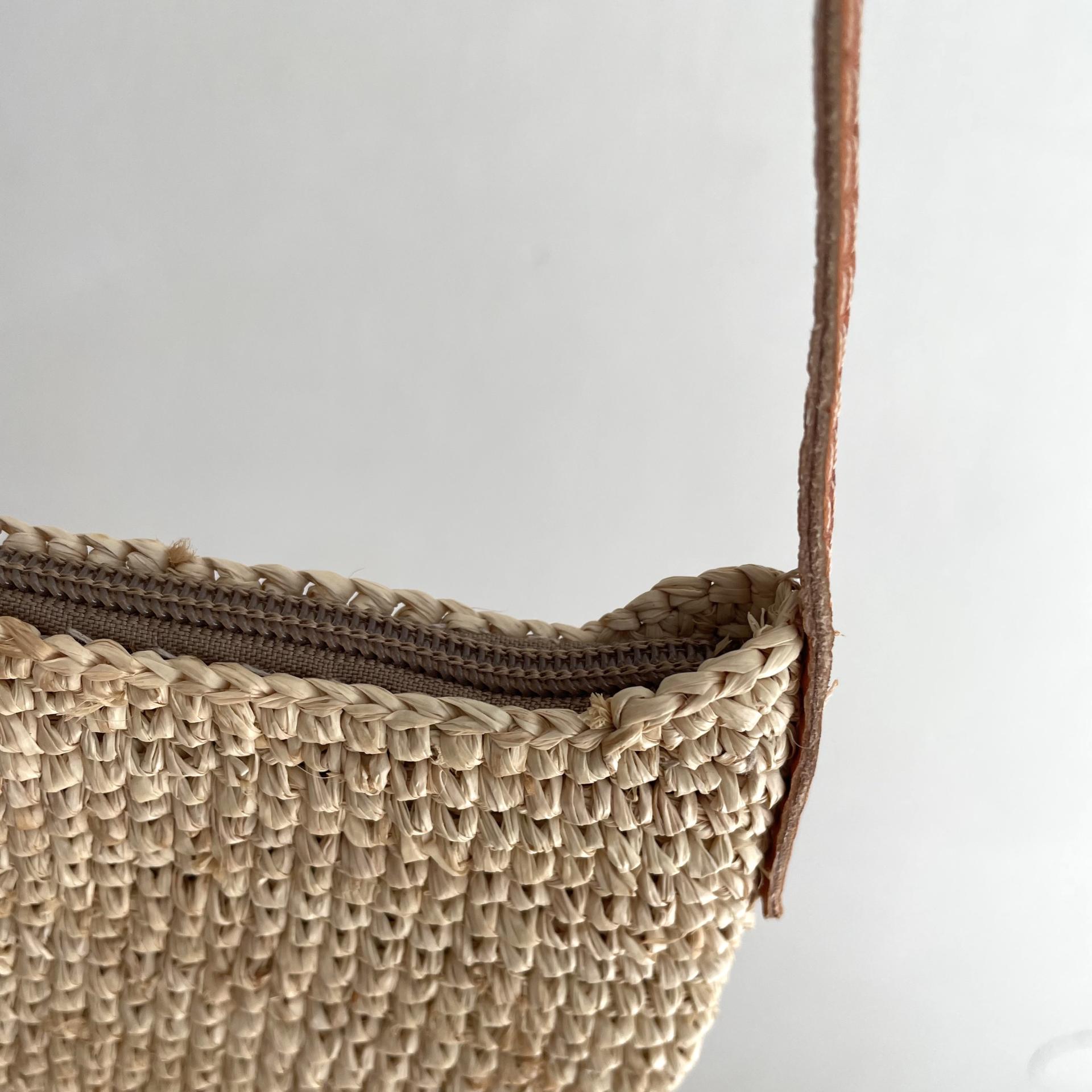 Small Raffia Purse with Long Leather Strap, Fair Trade, Handmade