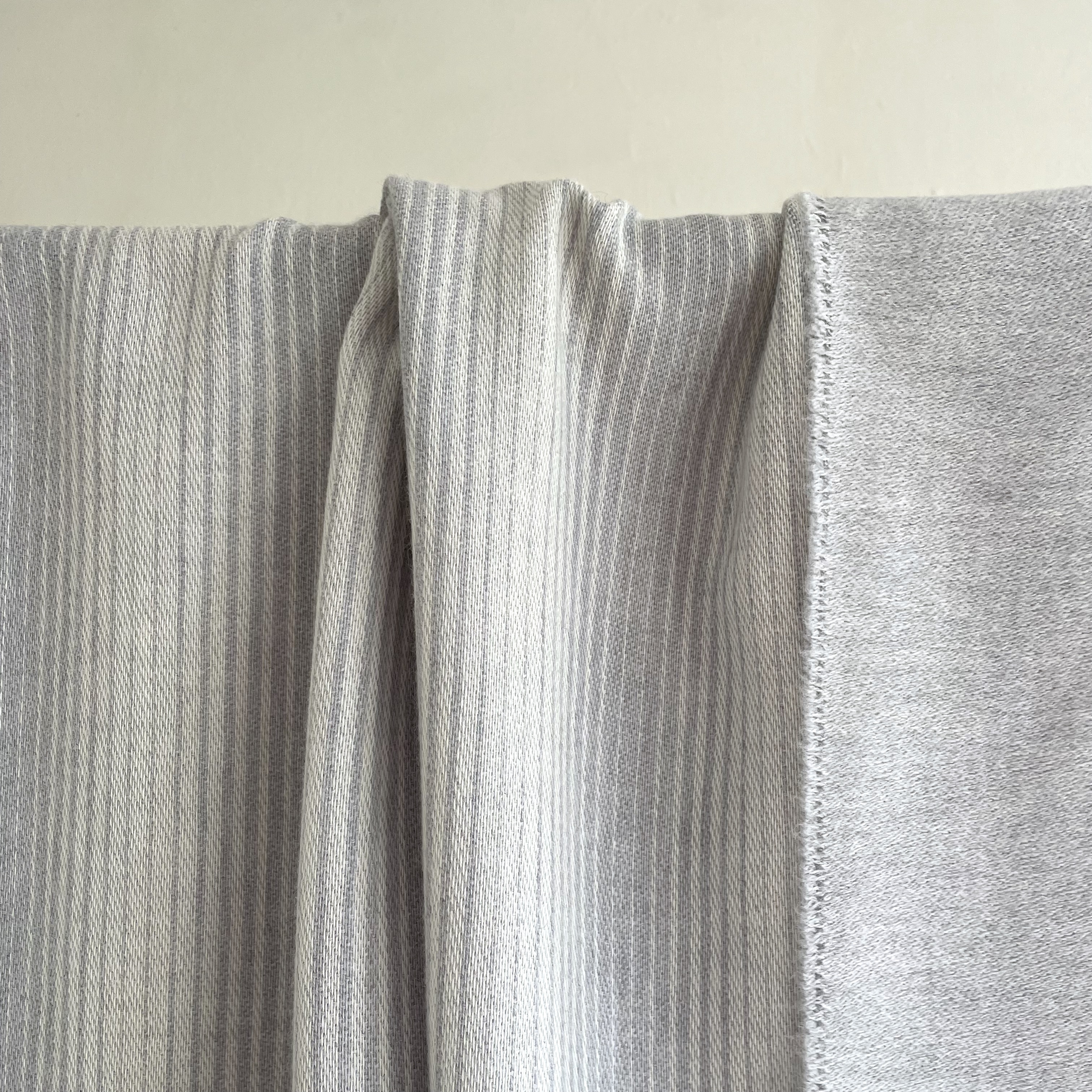 einerseits verlaufsbildende Streifen in Wollweiß und silbrig Grau