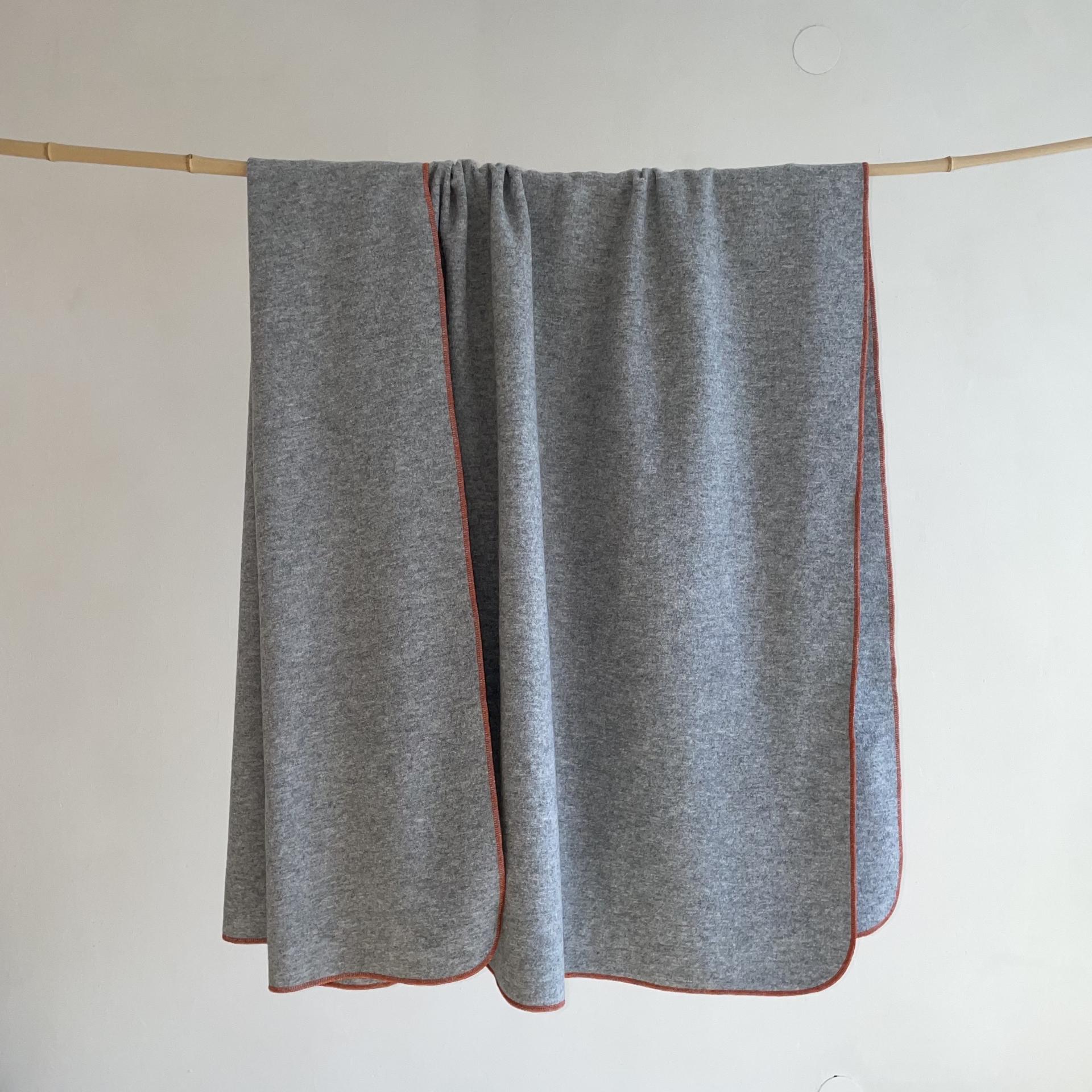 KNITTED, BOILED ORGANIC MERINO, GREY WITH ORANGE BORDER