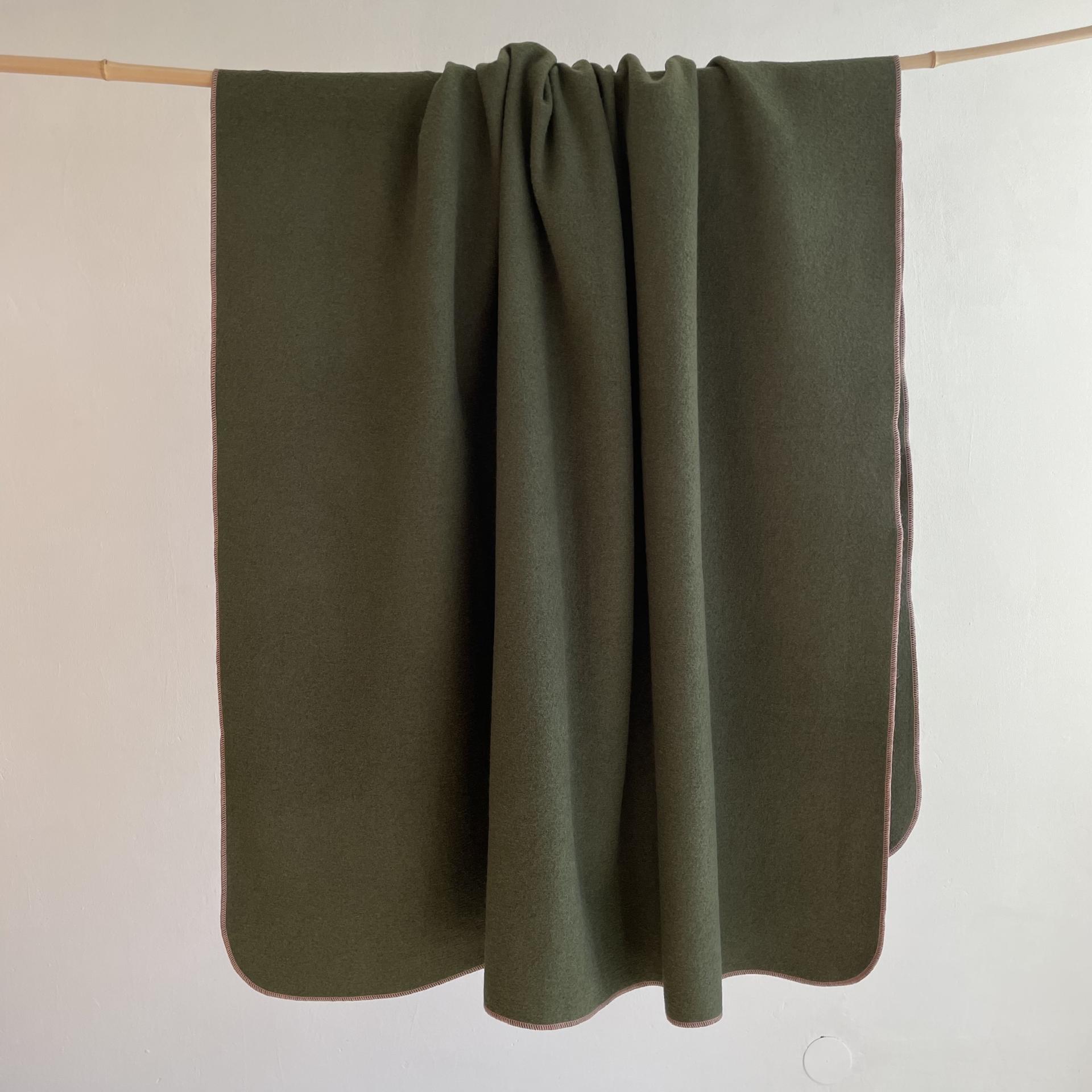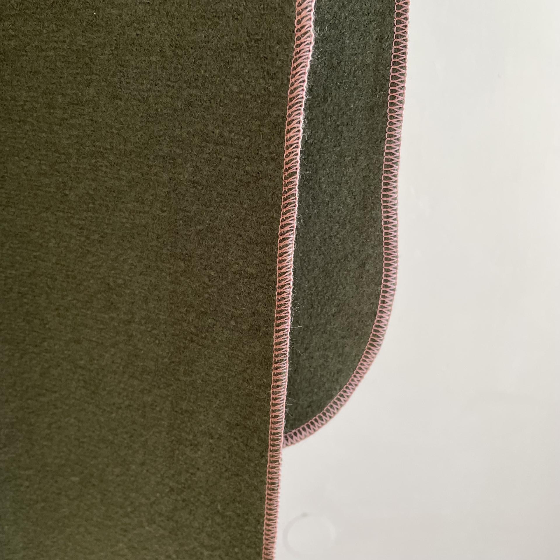 Knitted, Boiled Organic Merino, Dark Olive with Soft Pink Border
