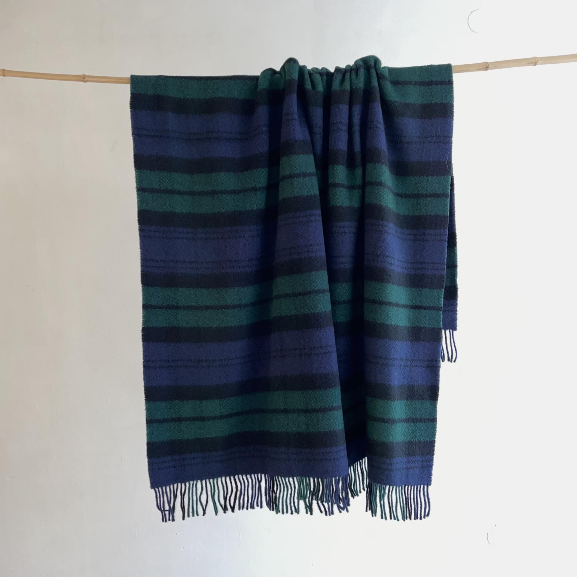 MERINO CASHMERE, GREEN, BLUE & BLACK TARTAN