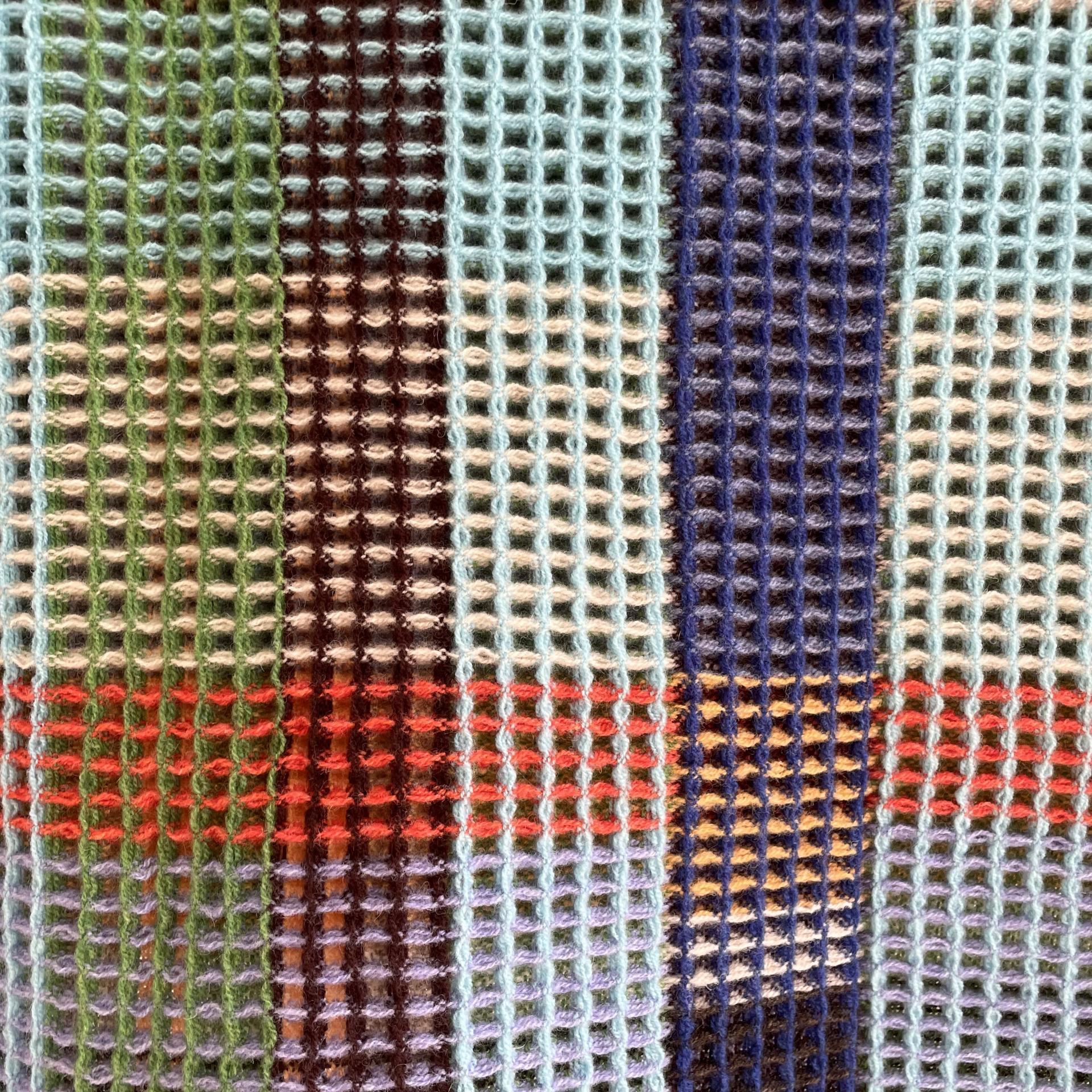 so viele Farben... durchzogen von einerseits helles Türkisbllau, andererseits Grün... mit Taupe, frisches Lavendel, Karamell, Braun, Wollweiß, kräftiges Dunkelblau, Pastelorange, Gelb, Orange, Bordeaux, Graubraun