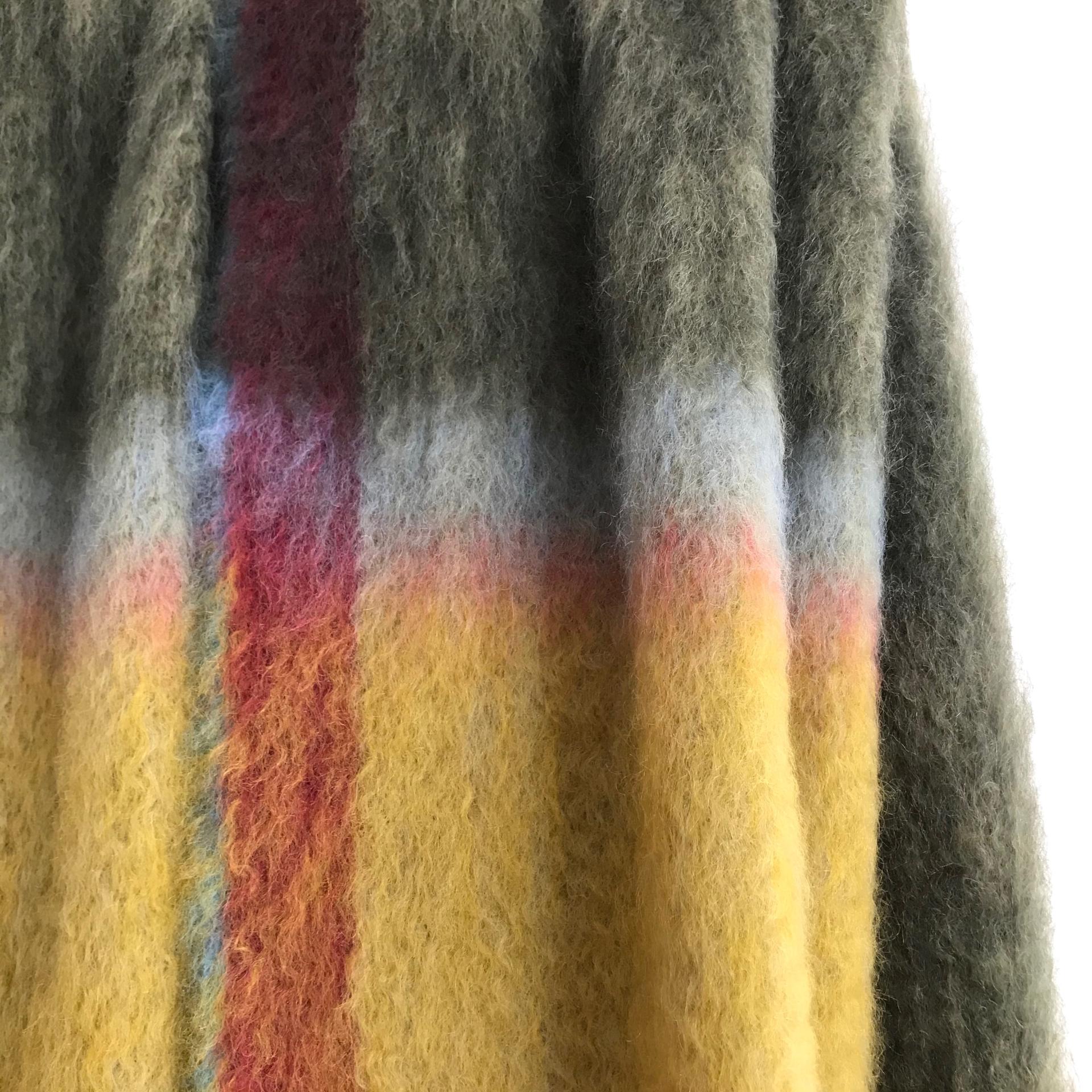 dunkleres Grün, leicht grünliches Ocker, und etwas Bordeaux, Türkis, Lachs, Hellblau und Khaki