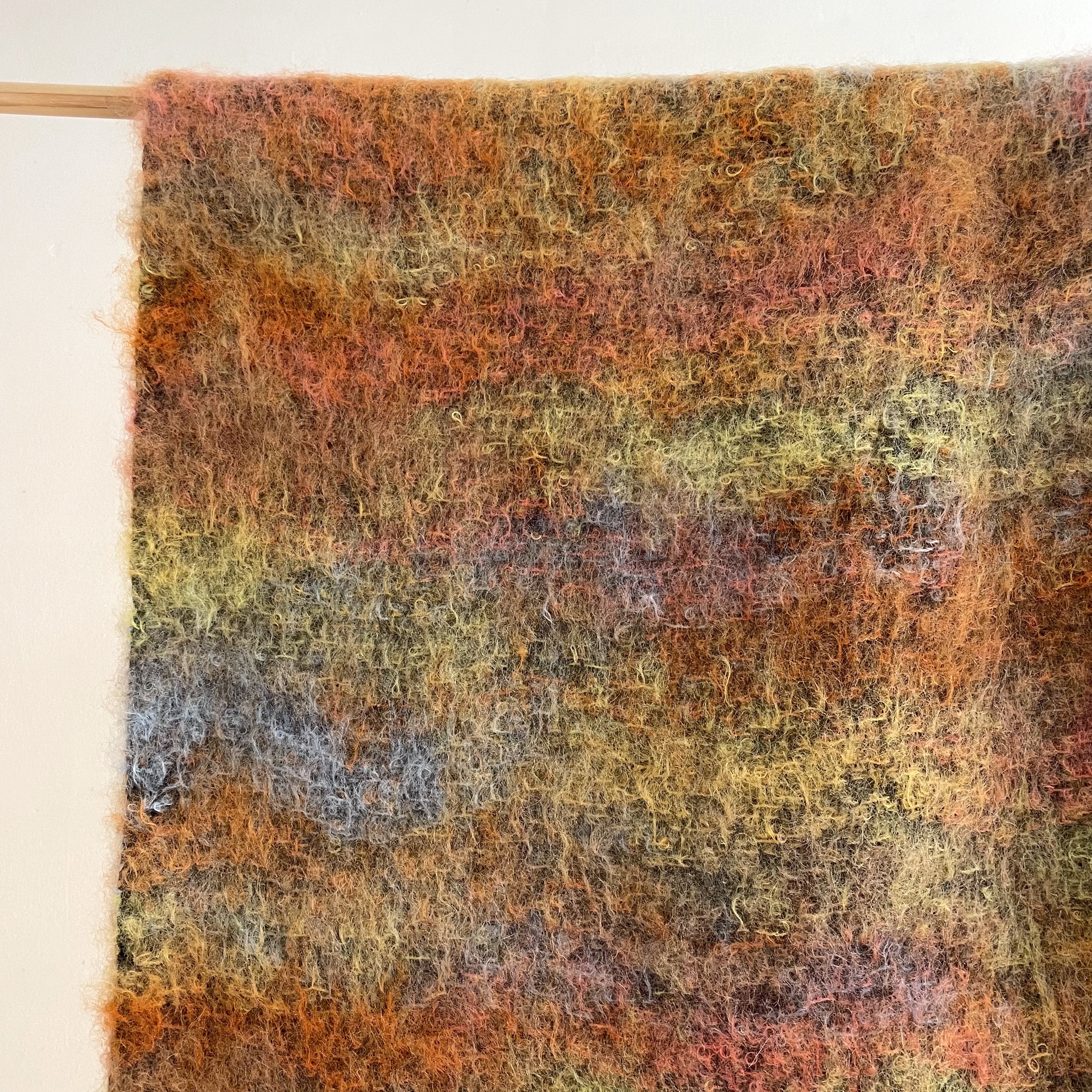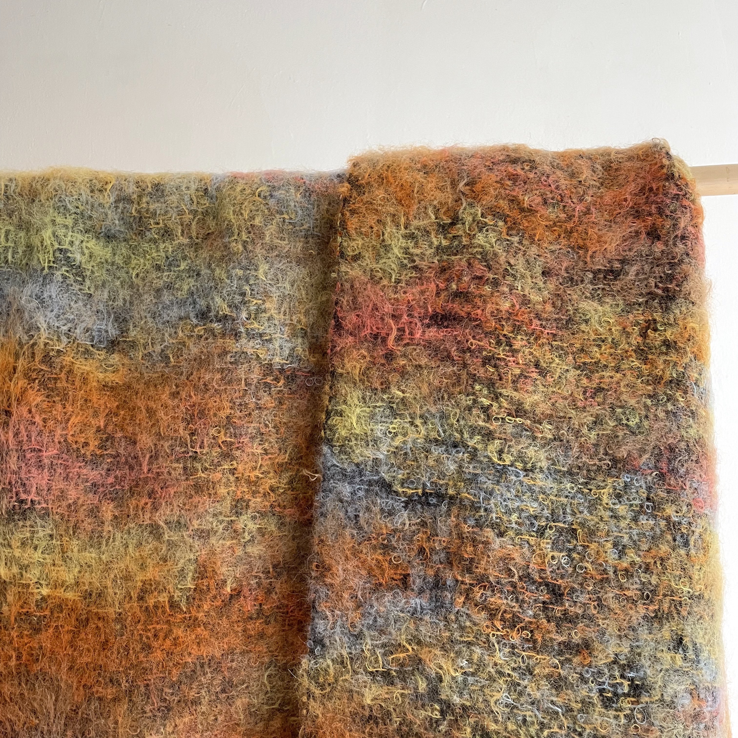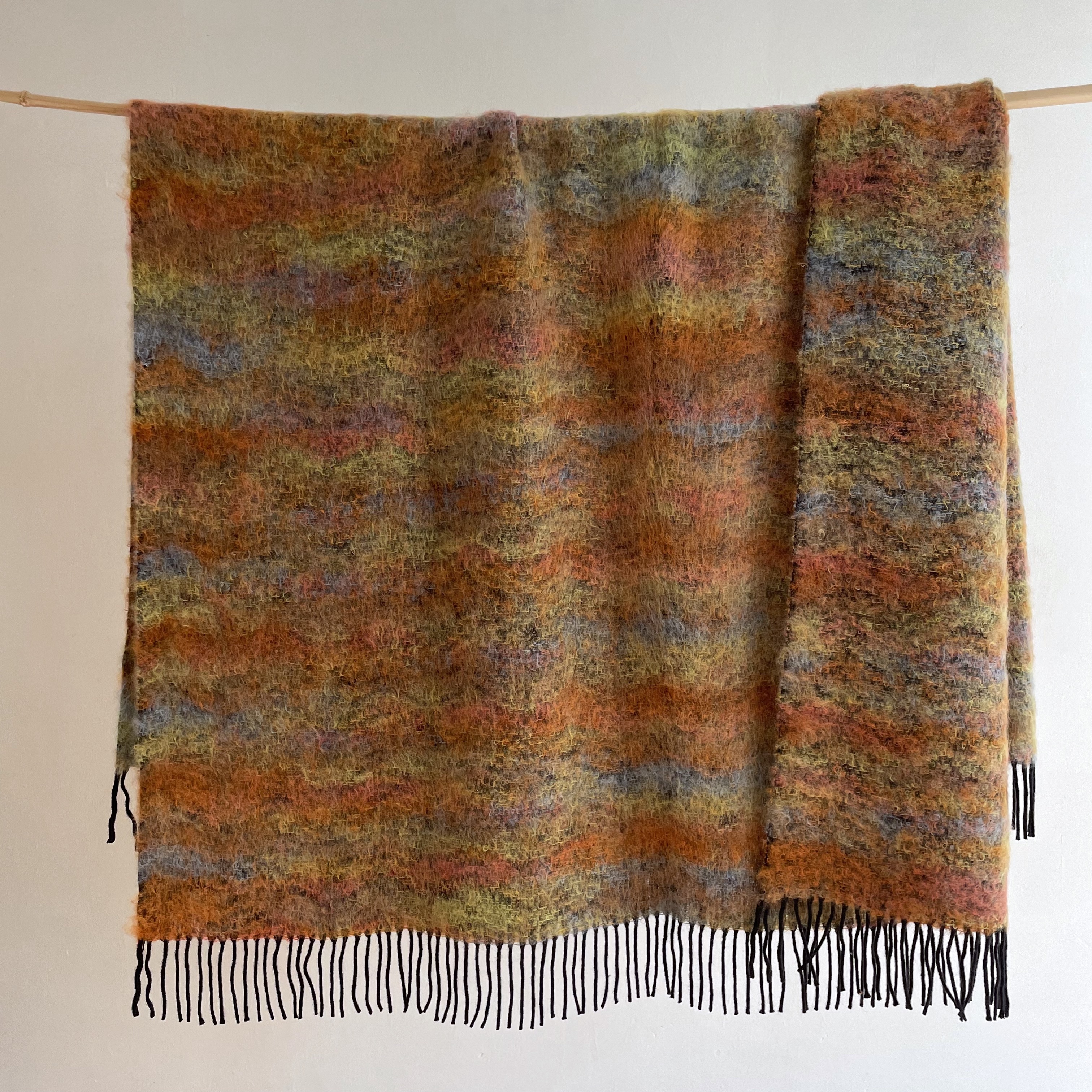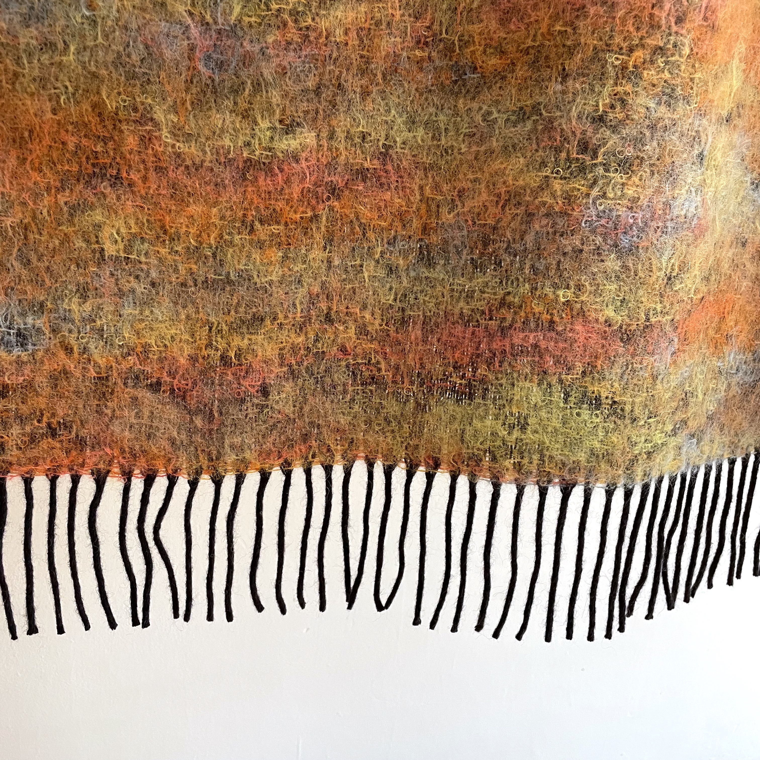 tolle Melange aus feurigem Orange, Lachs, leicht grünliches Gelb, Currybraun, dazu perfektes Grau, schwarze Fransen