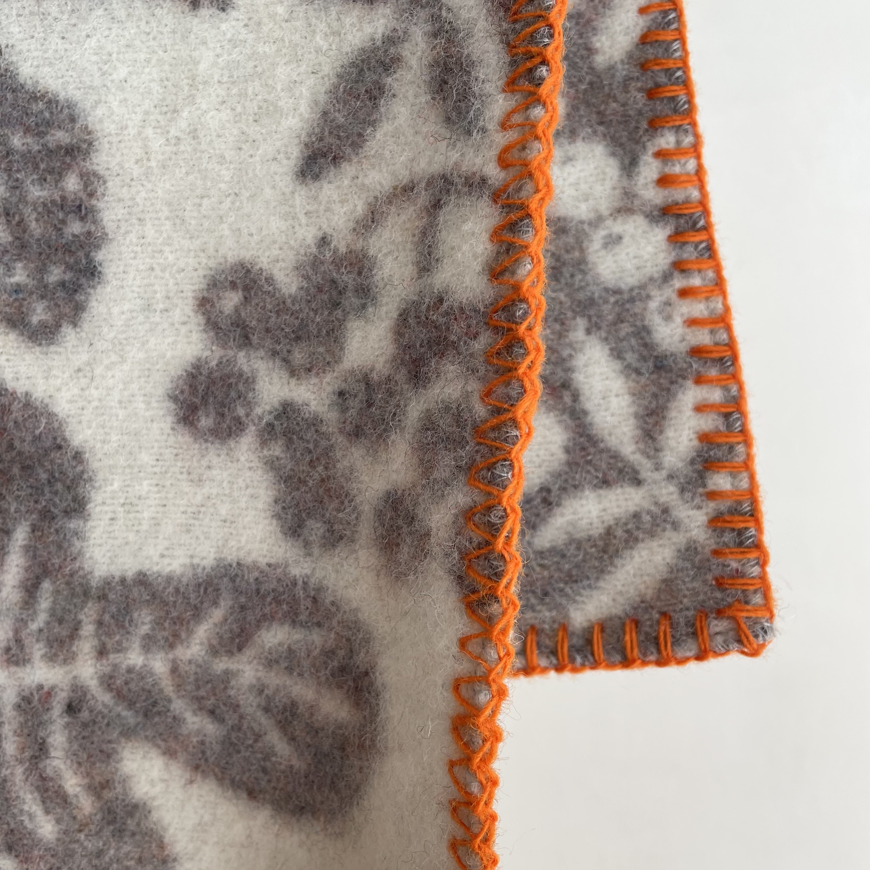 Grau(der Ton variiert) mit sanften Farbsprenkel hier und da, und Wollweiß, Orange gekettelt