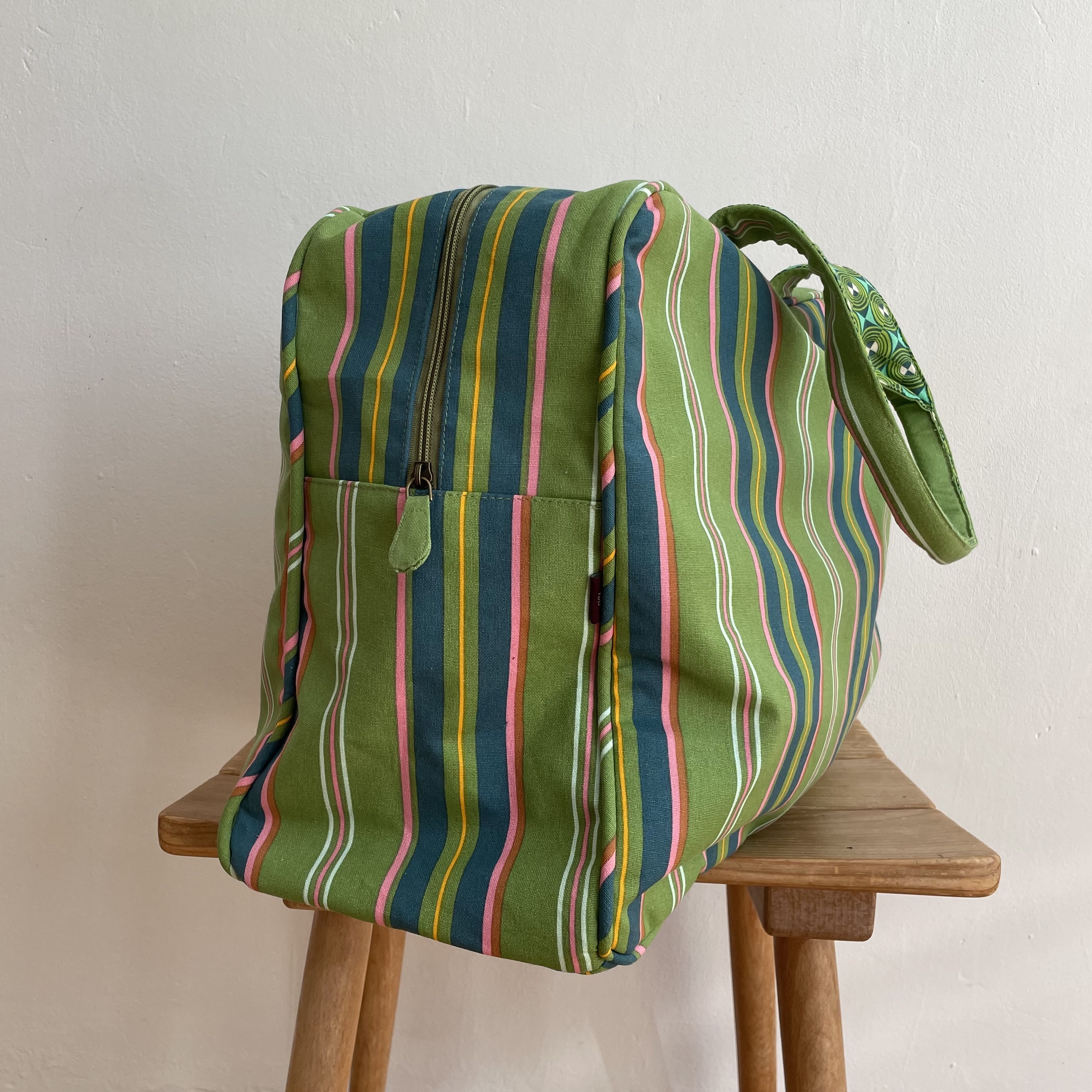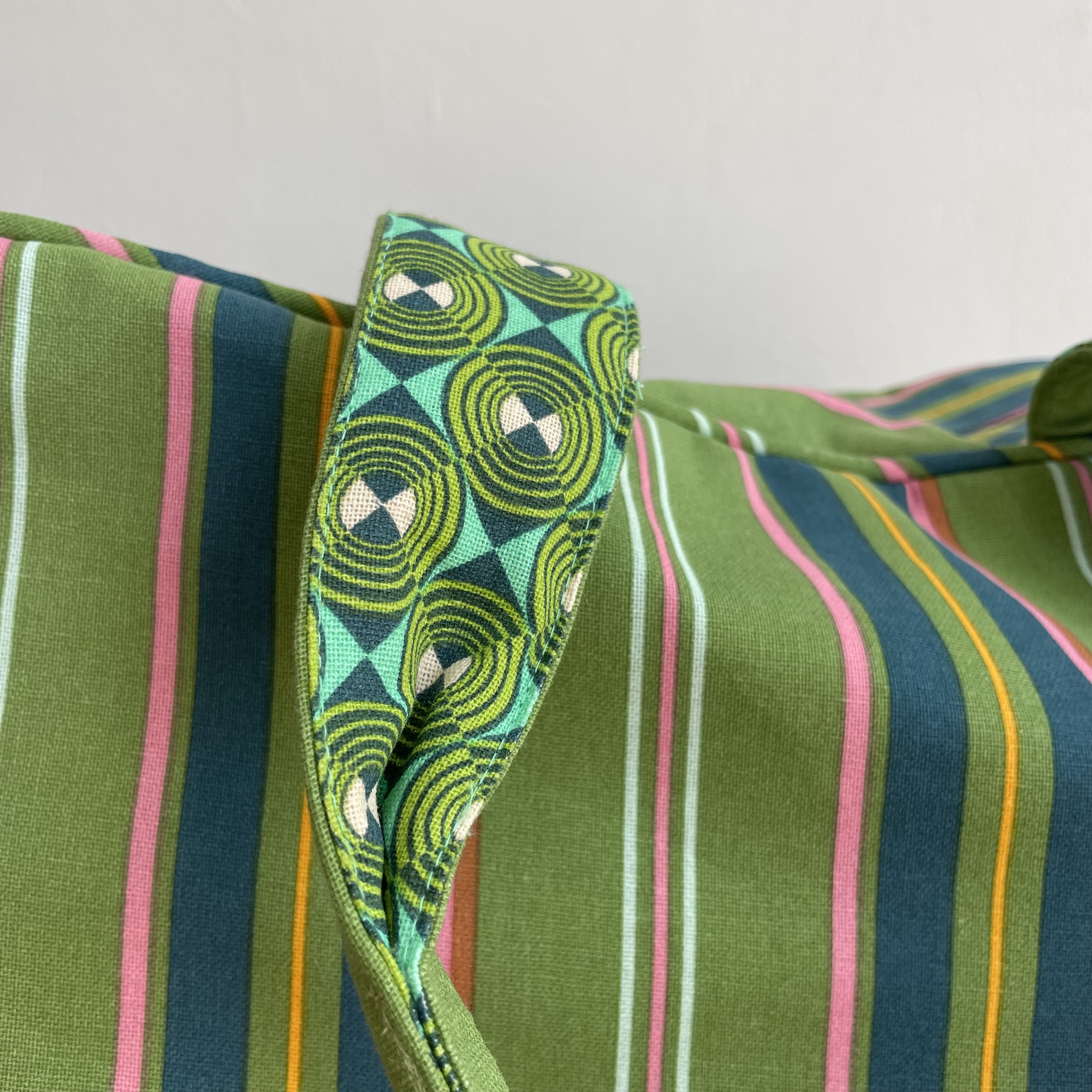 vertikale Streifen in Grün, Petrol, Pink und Weiß