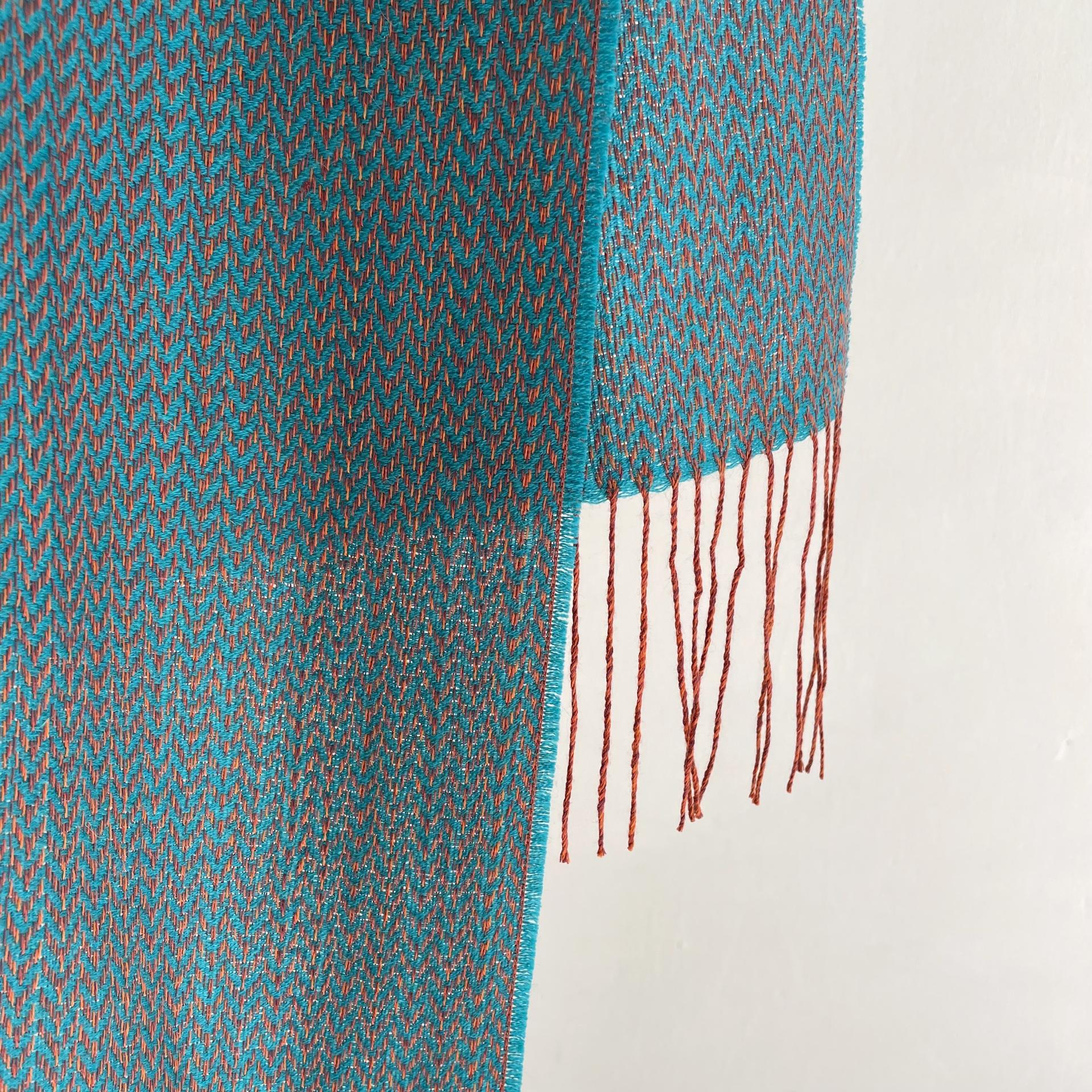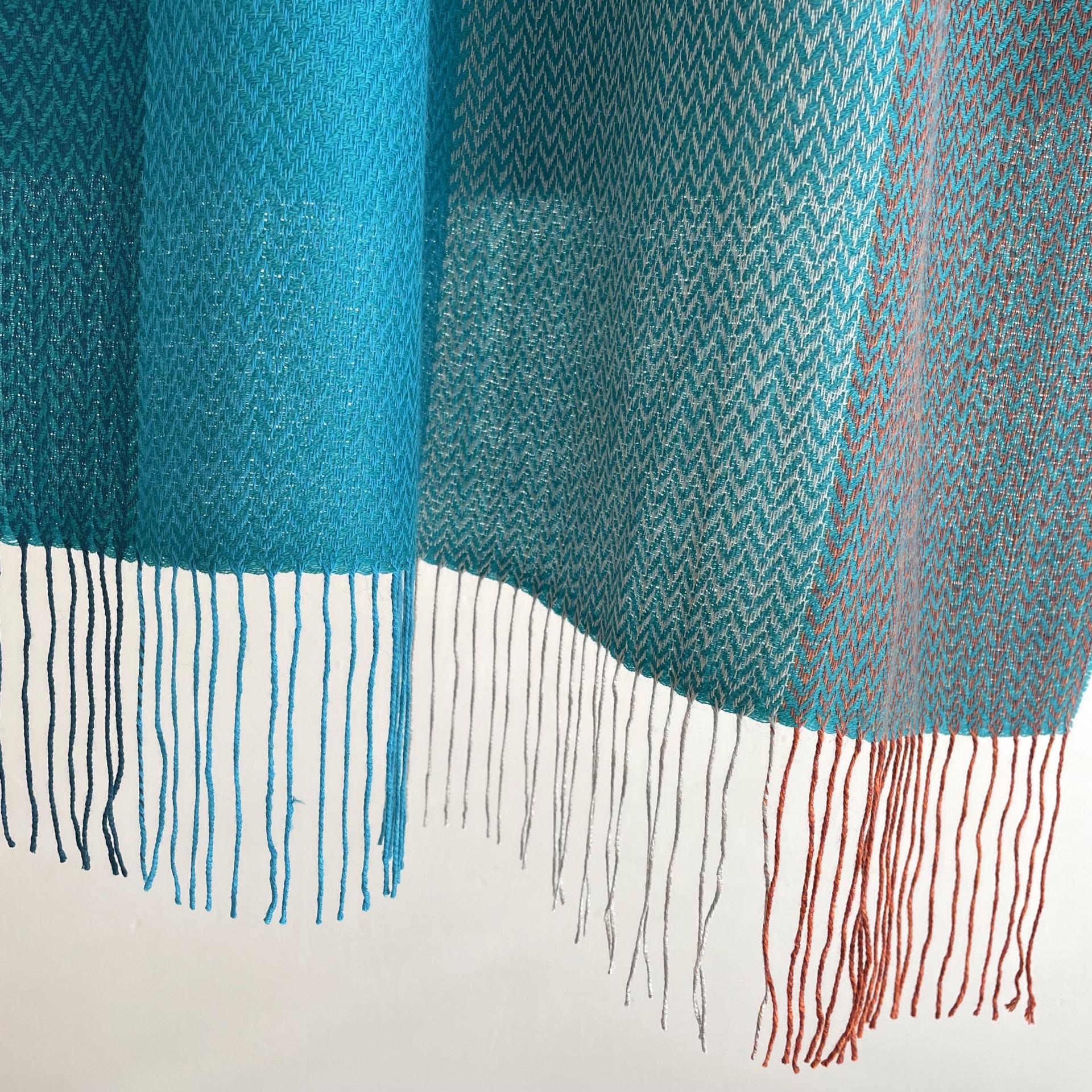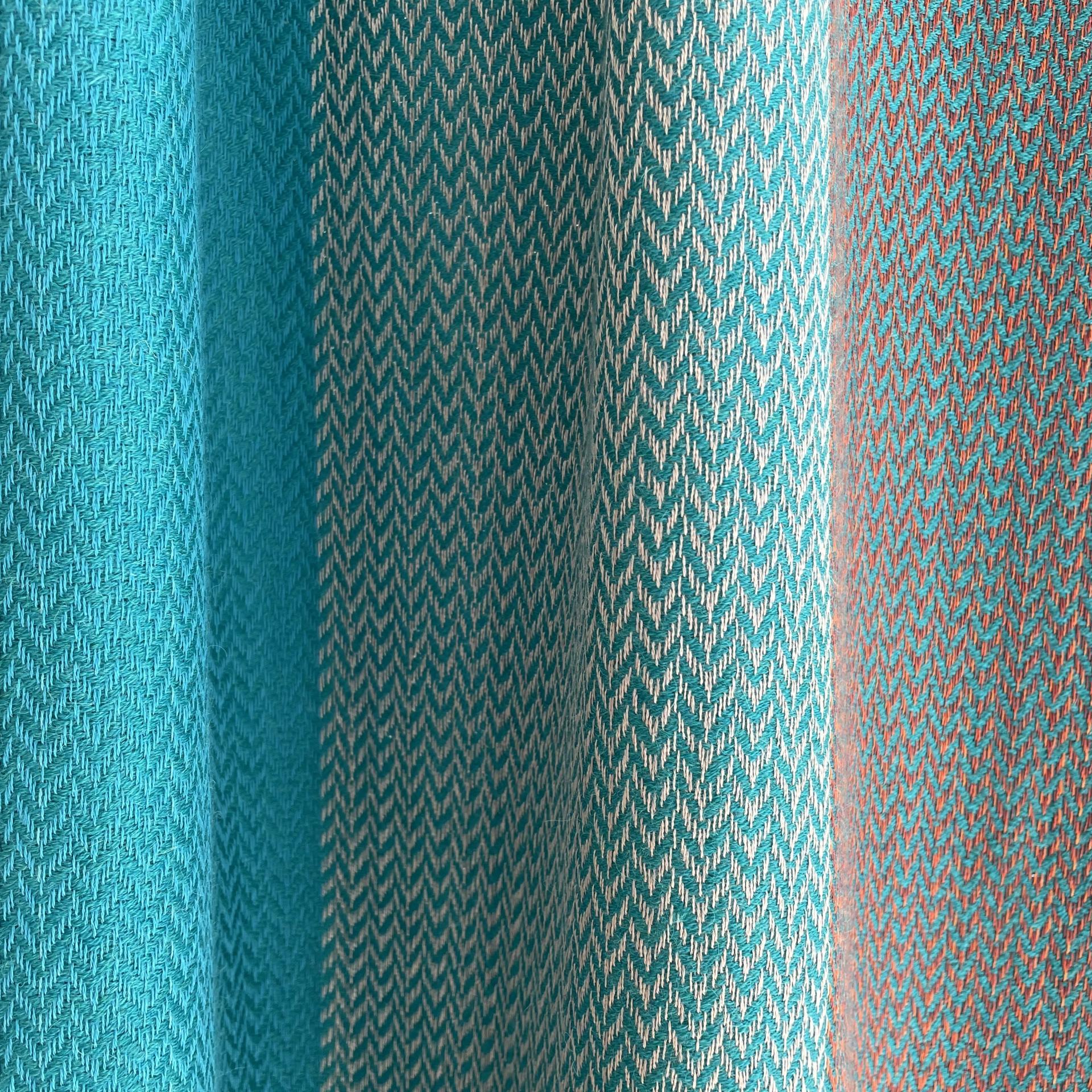 Türkis, dunkles Türkis, Orange, Wollweiß