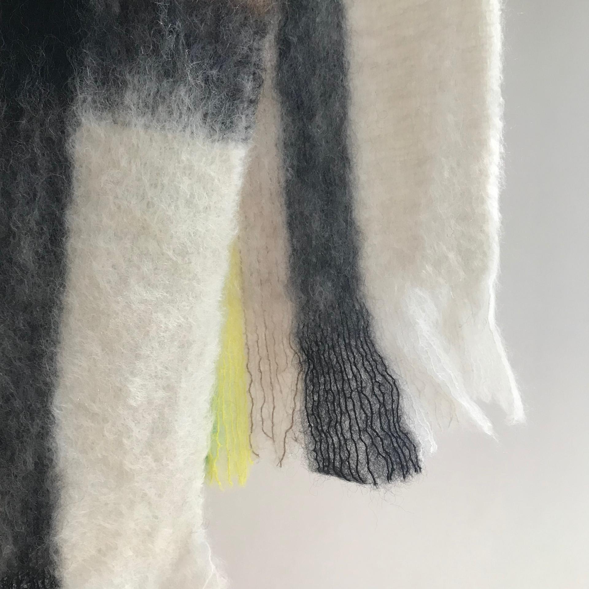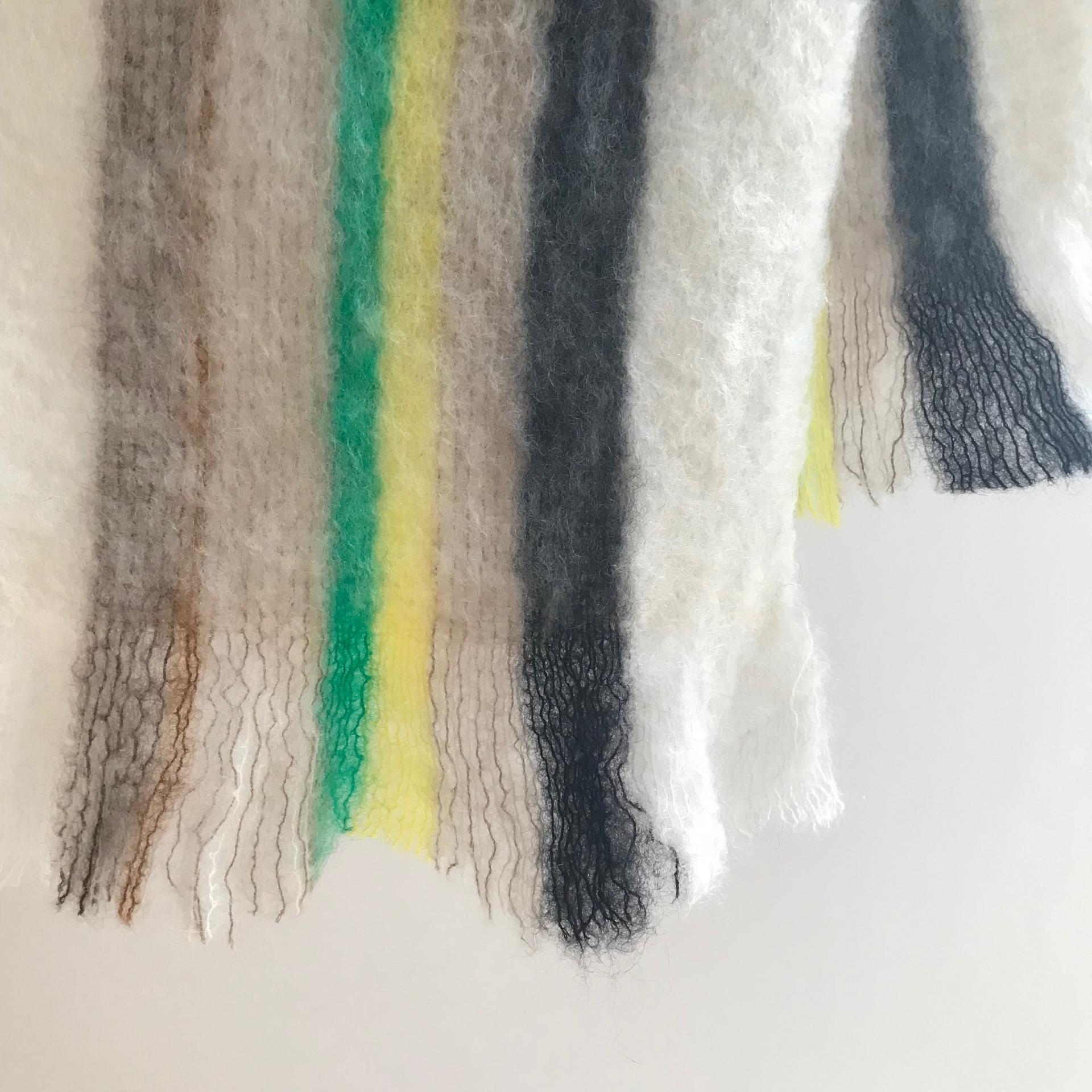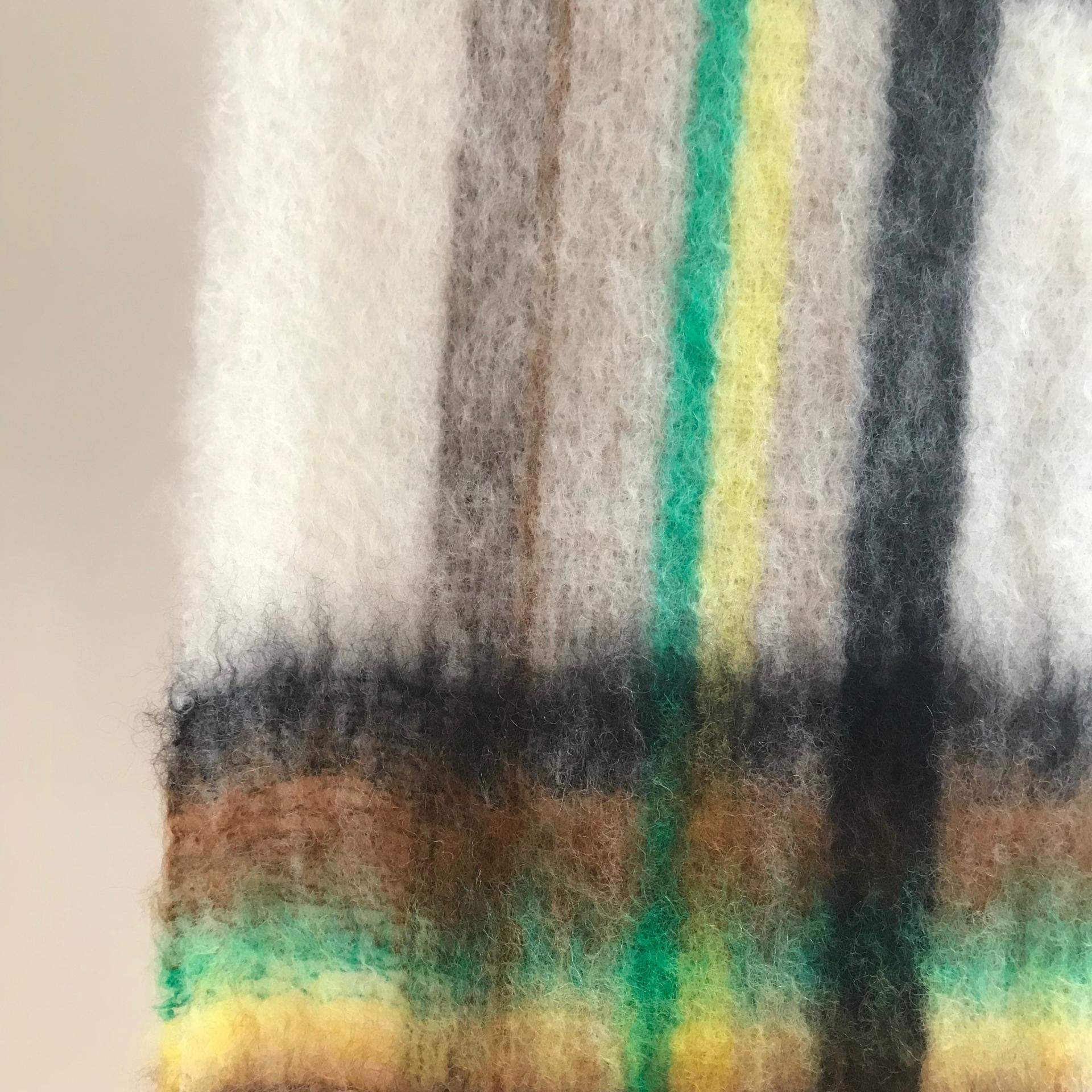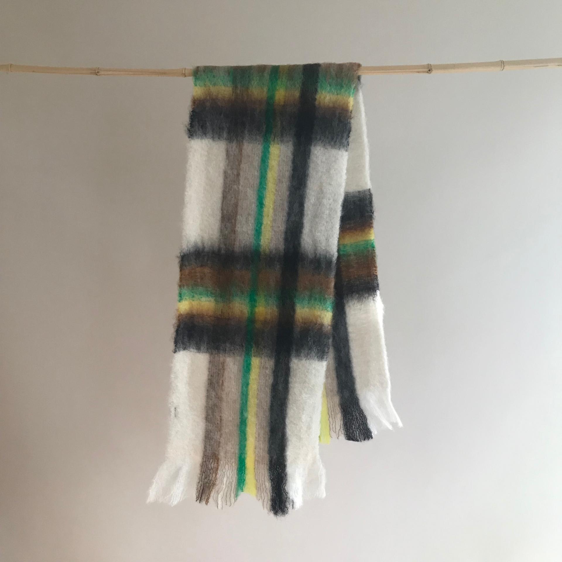 Mohair Tartan Scarf White, Green, Yellow, Brown
