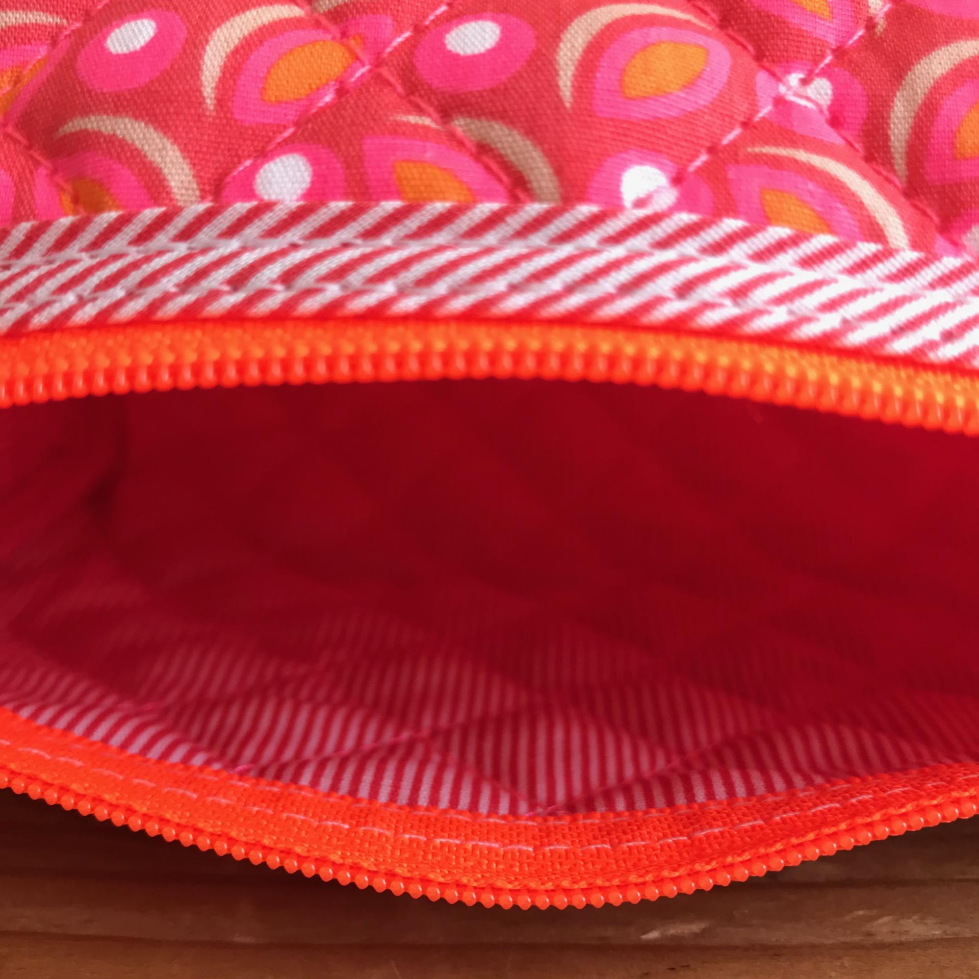 gesteppte Baumwolle, abstraktes Beeren und Blattmuster in Rot, Neonpink, Weiss und Orange, Reisverschluss in Neonorange (18cm),