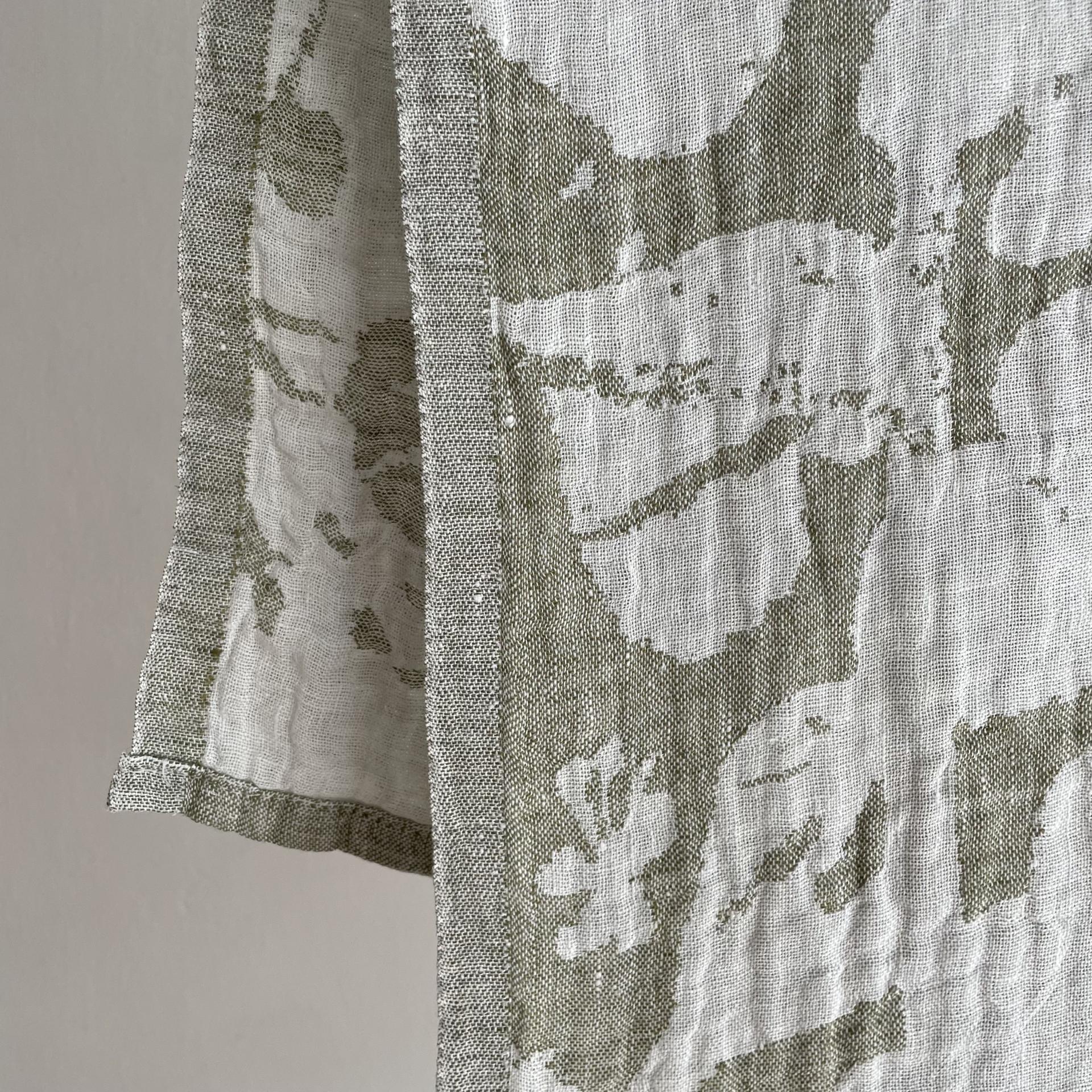 VILLIYRTIT, LINEN TOWEL/BEACH TOWEL, OLIVE & WHITE