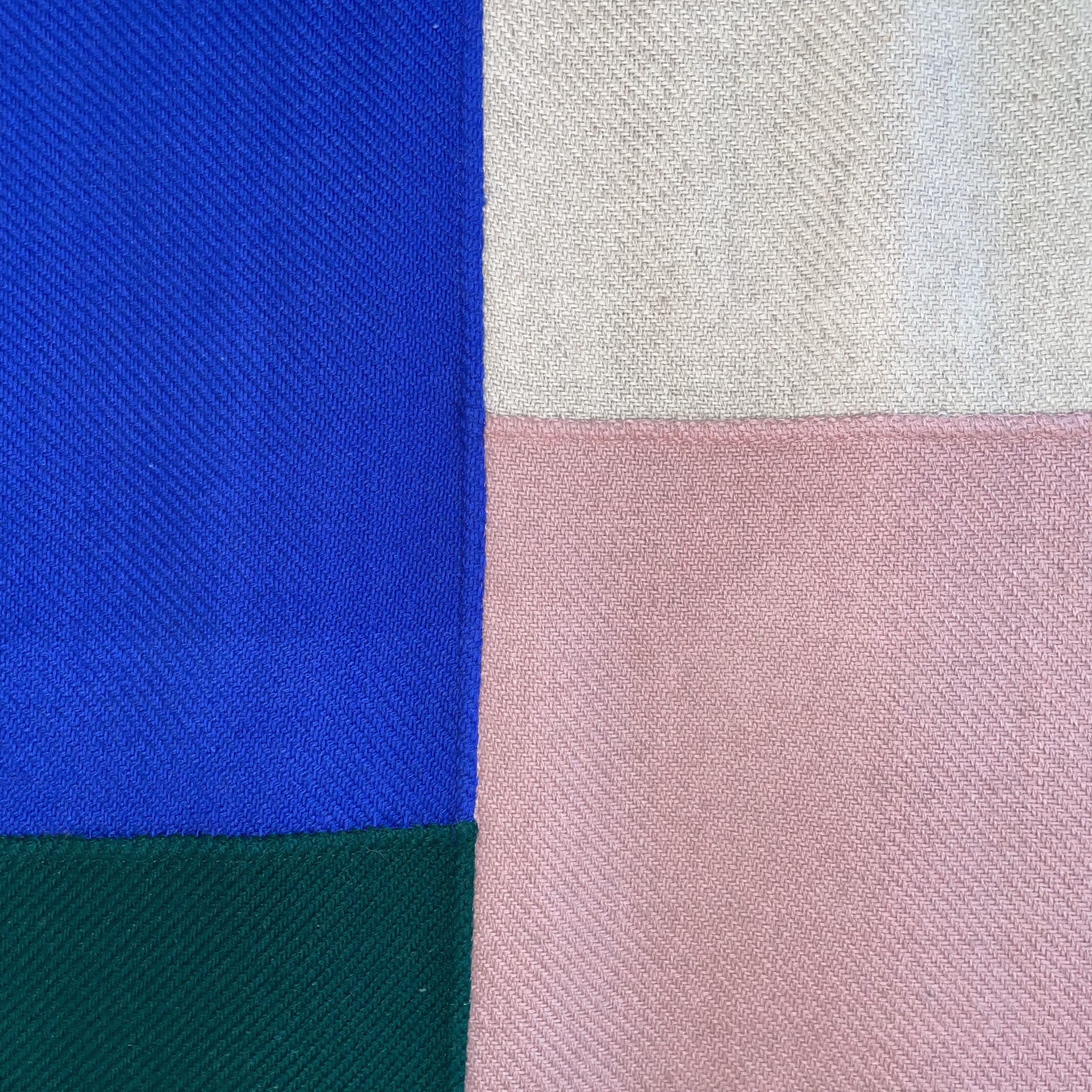 bold blue, soft nudish pink, dark khaki, emerald green, soft beige
