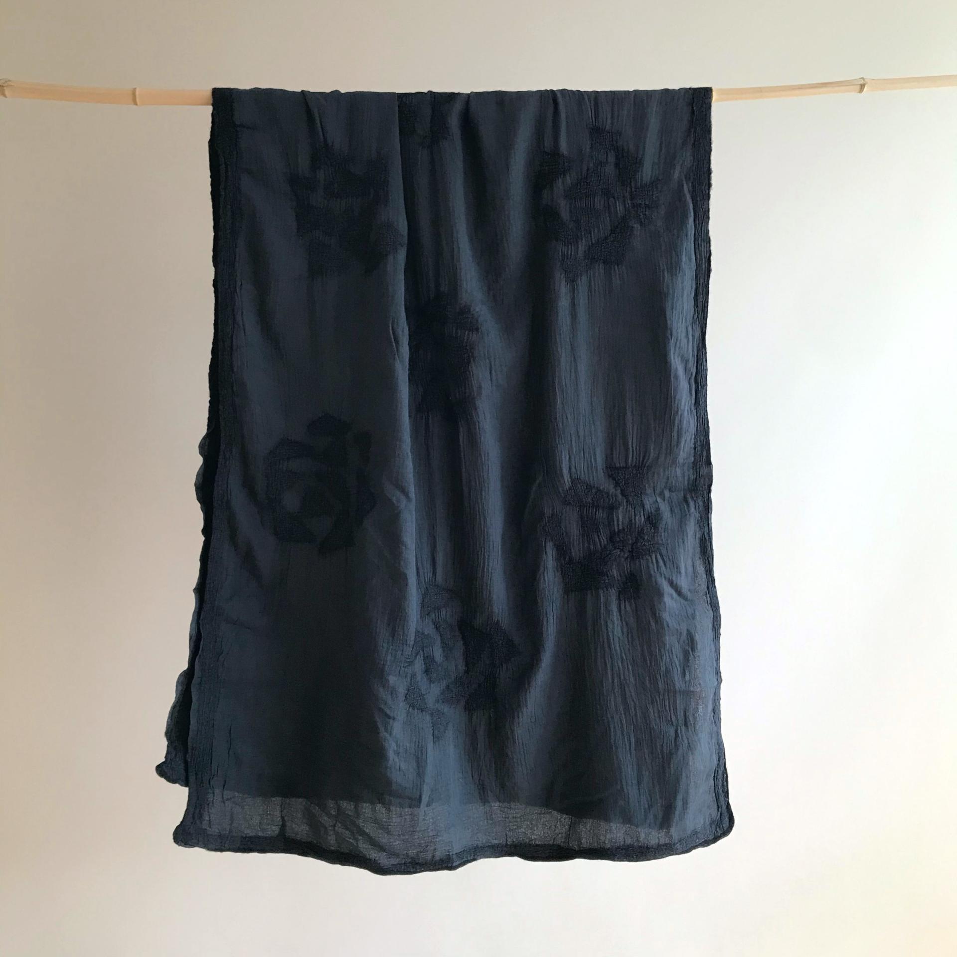 Blue & Black, Cotton & Wool Shawl, Handfelted
