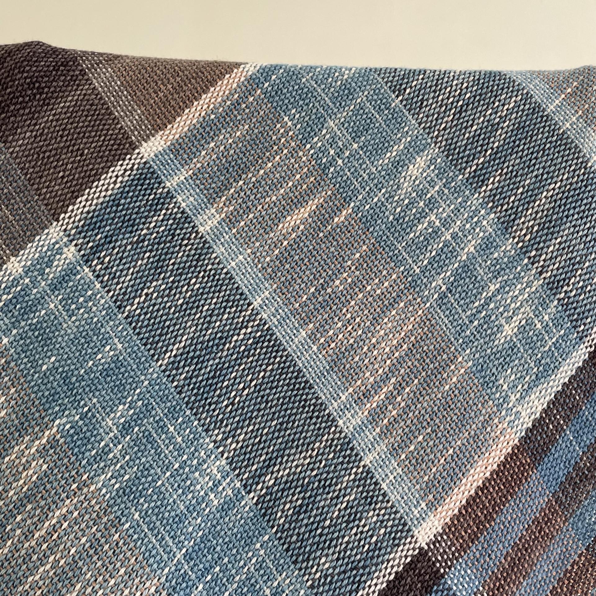 pleasant blue, taupe brown, caramel, wool white