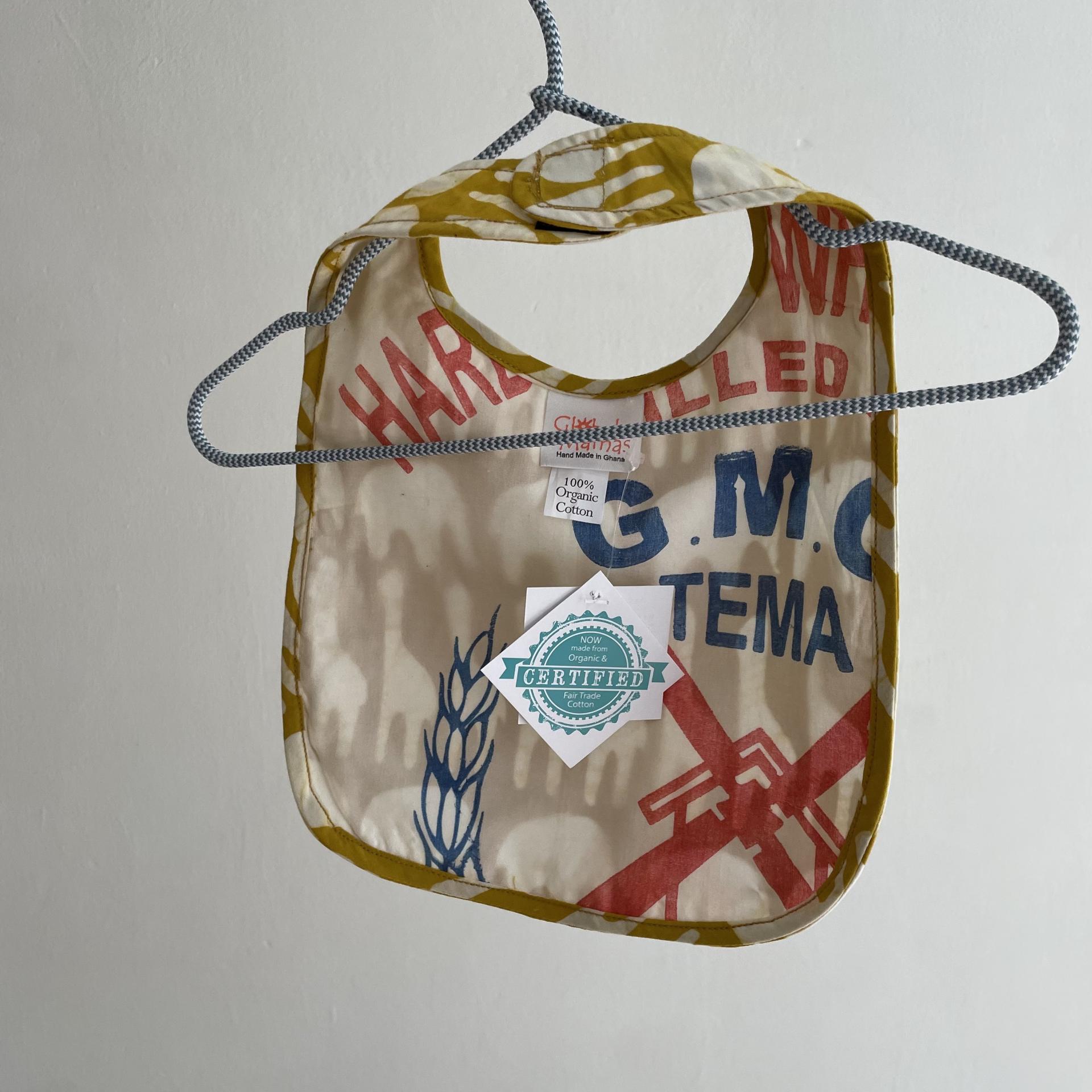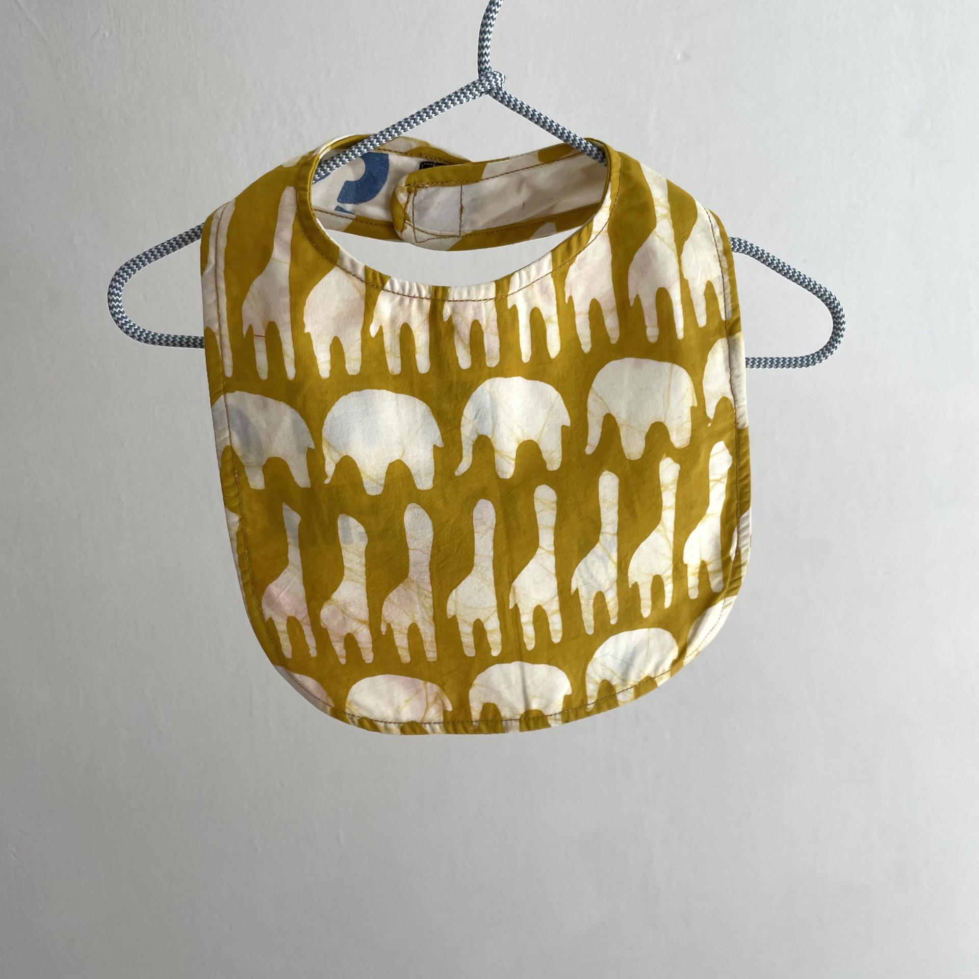 GIRAFFES & ELEPHANTS BATIK BIB, ORGANIC COTTON, FAIR TRADE