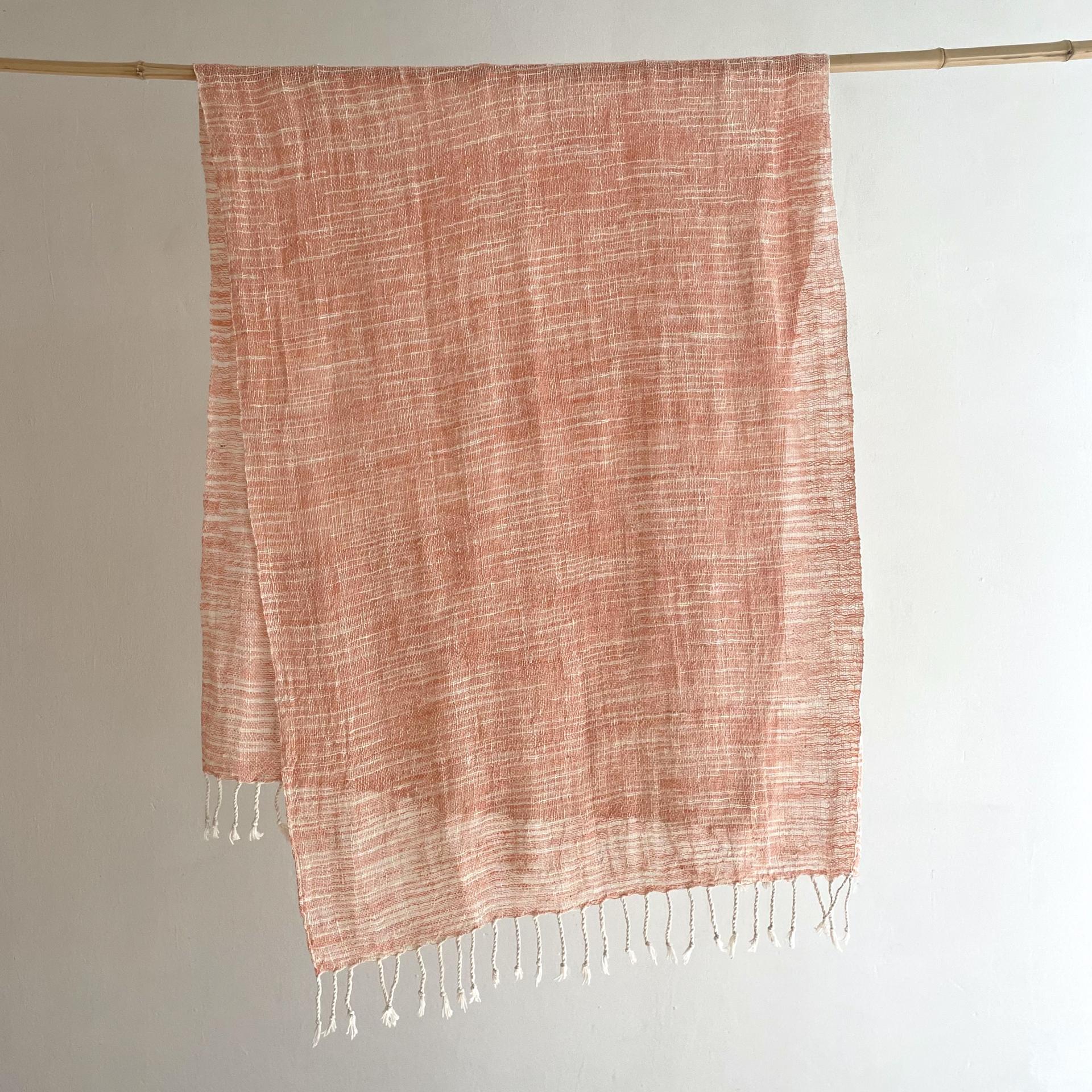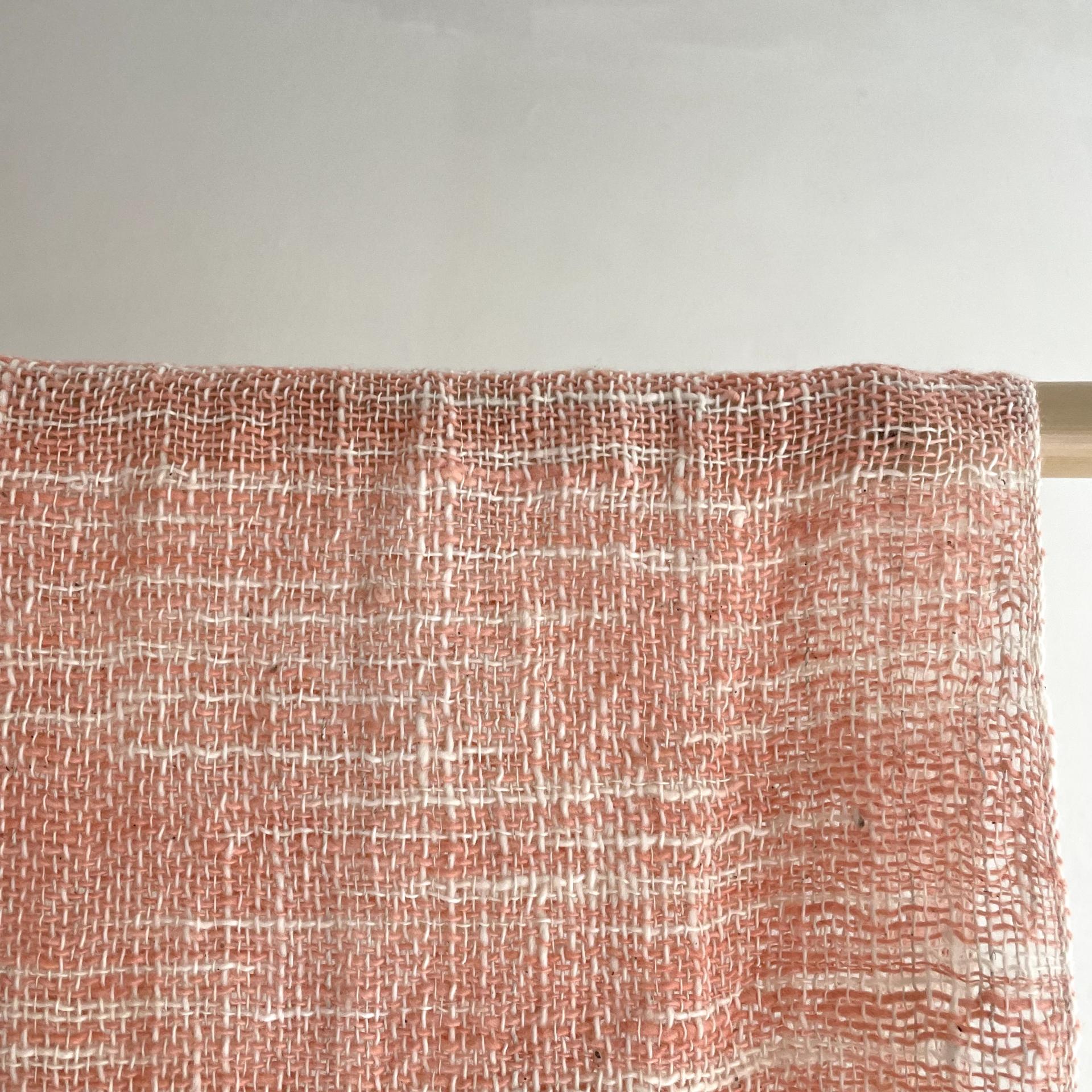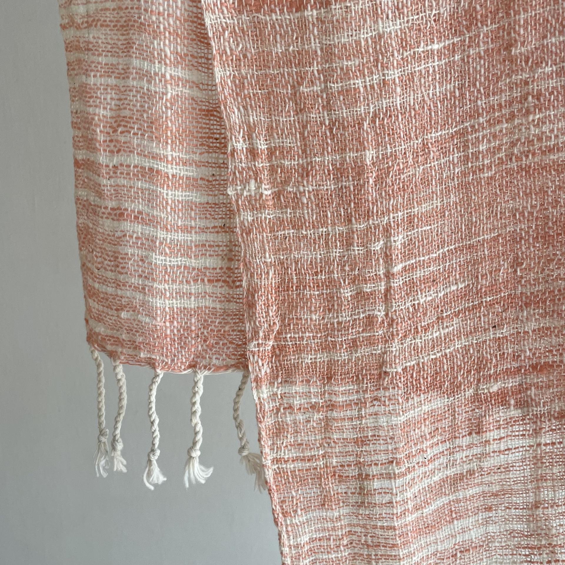 HANDWOVEN COTTON SHAWL FROM LAOS, APRICOT WOOL WHITE