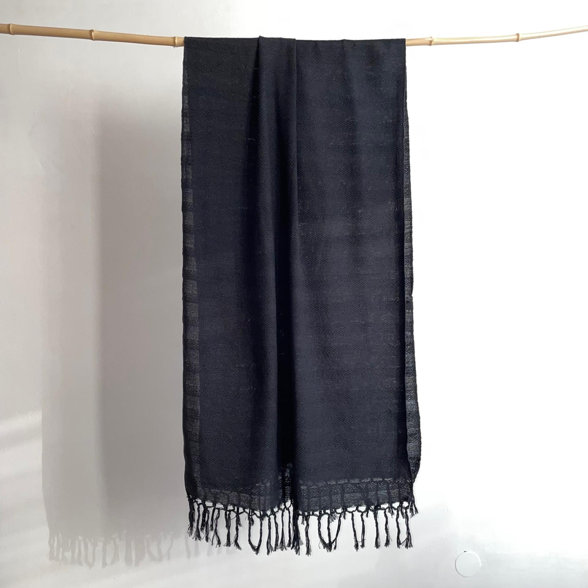 HANDWOVEN COTTON SHAWL FROM MEXICO, BLACK