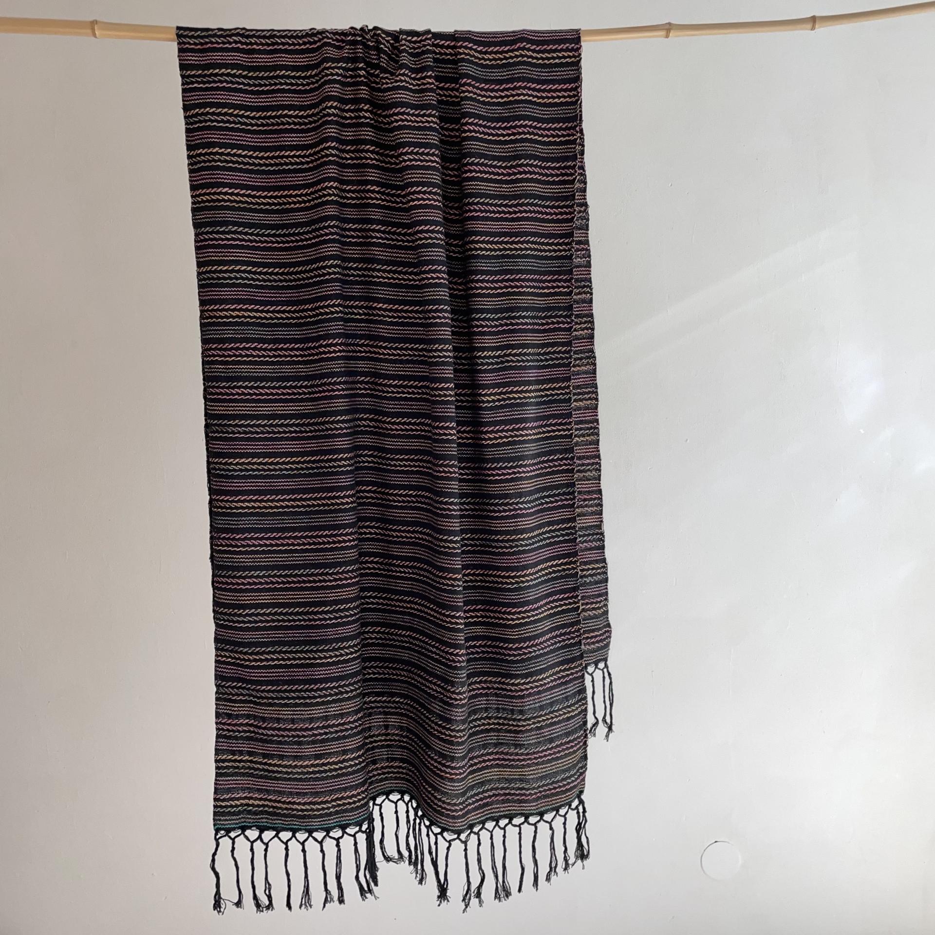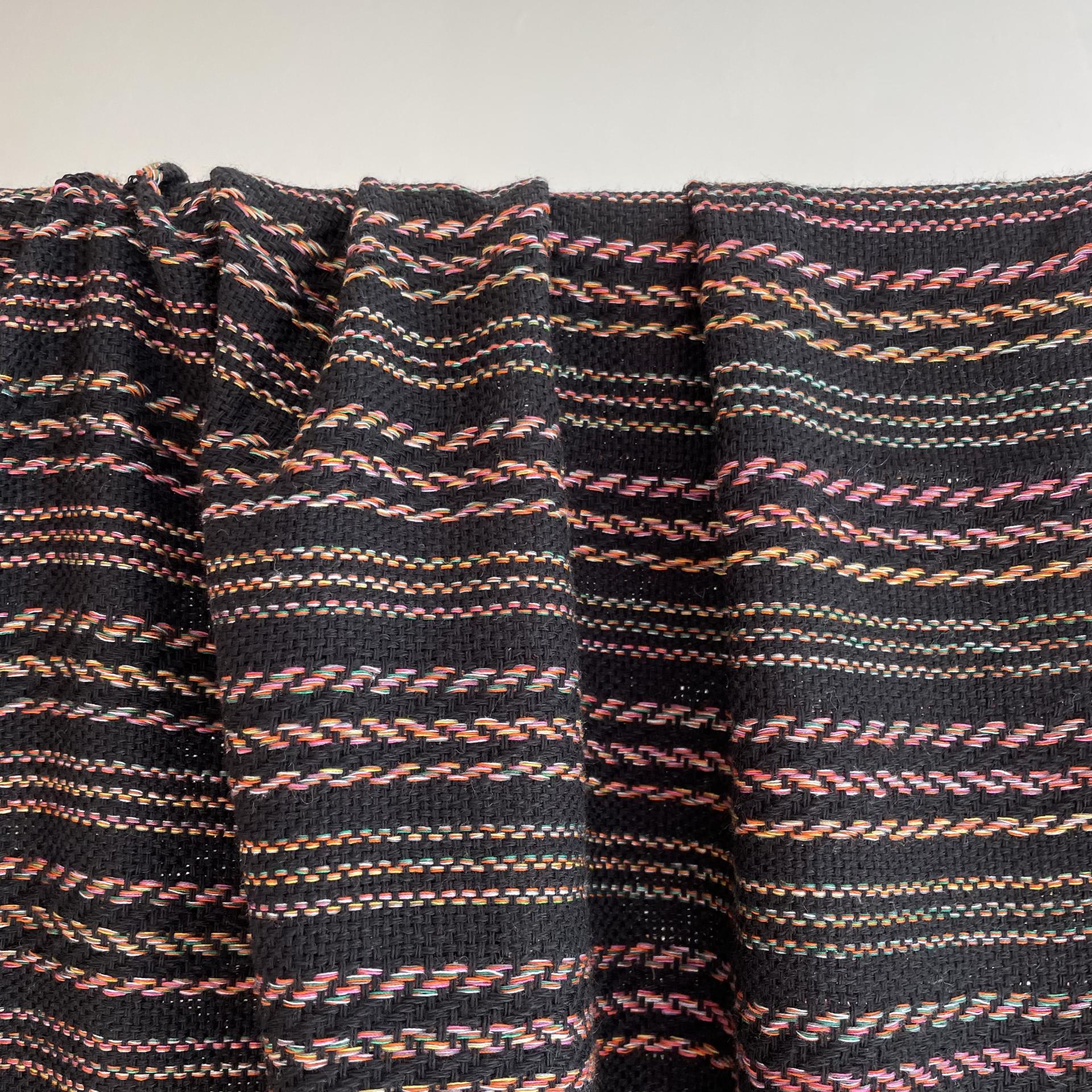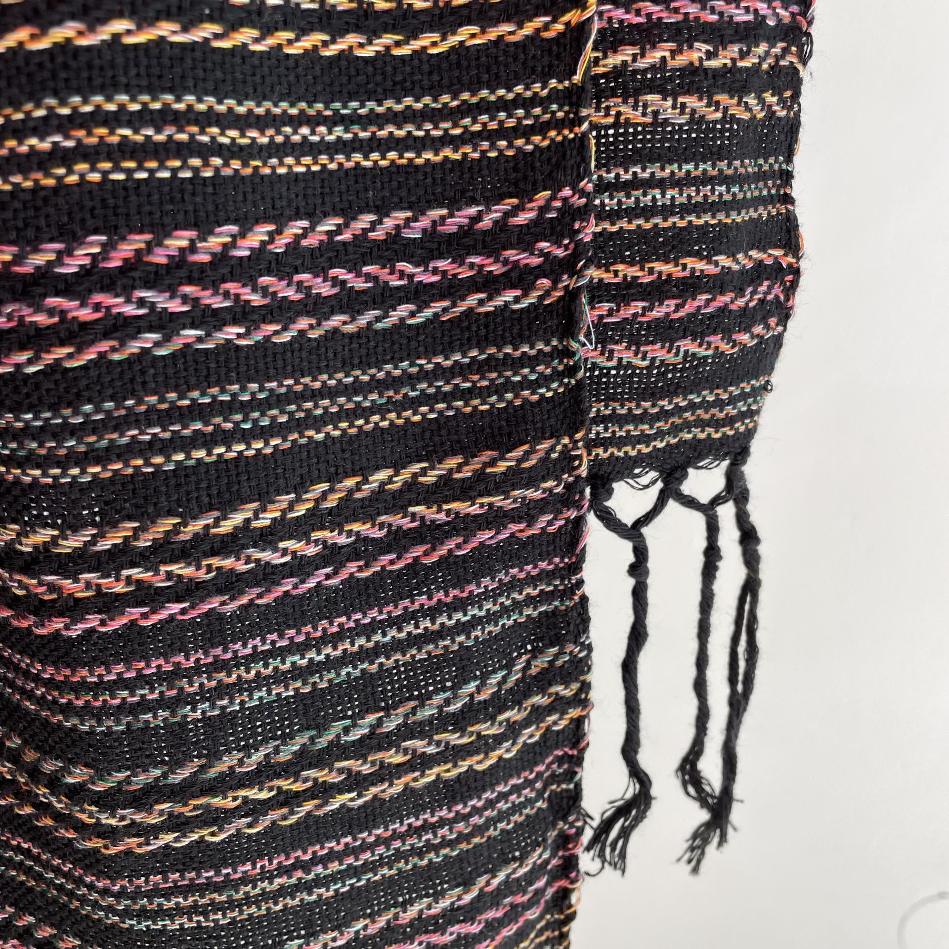 HANDWOVEN COTTON SHAWL FROM MEXICO, BLACK RAINBOW