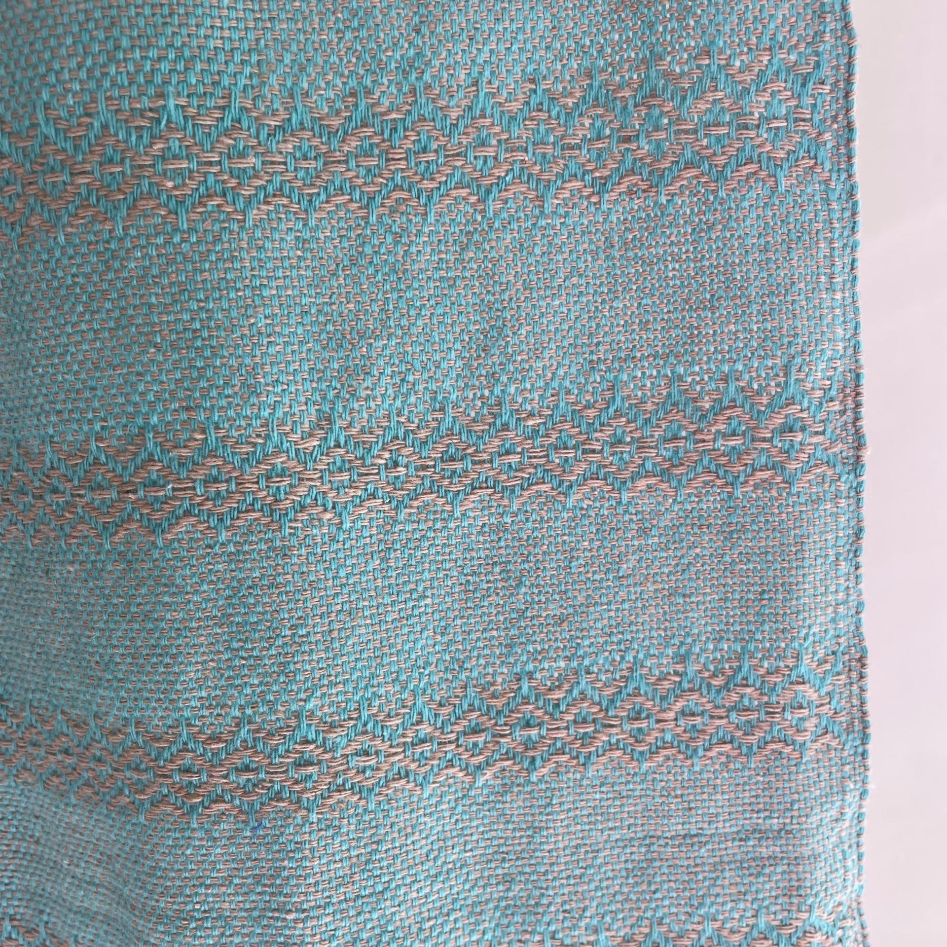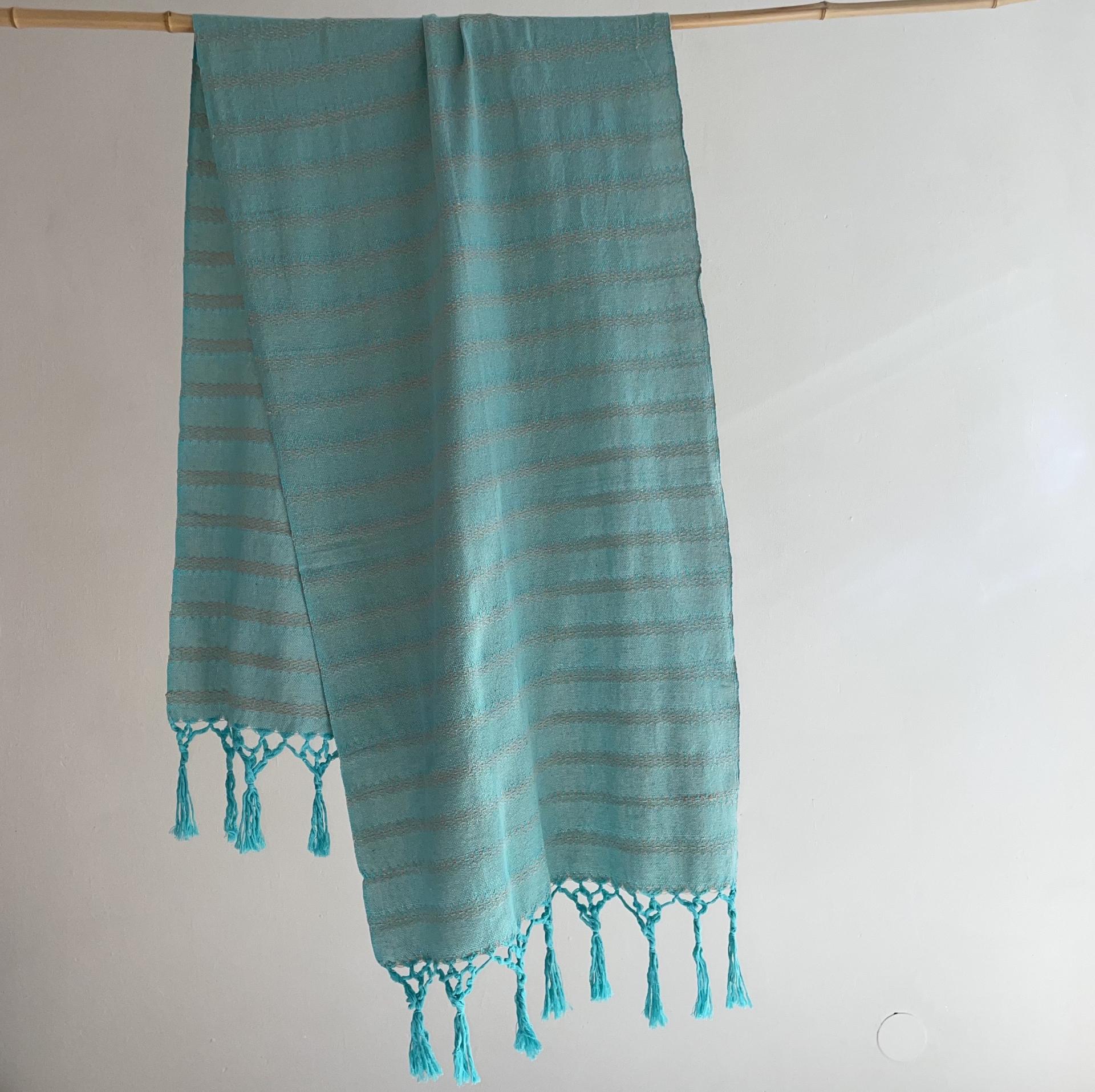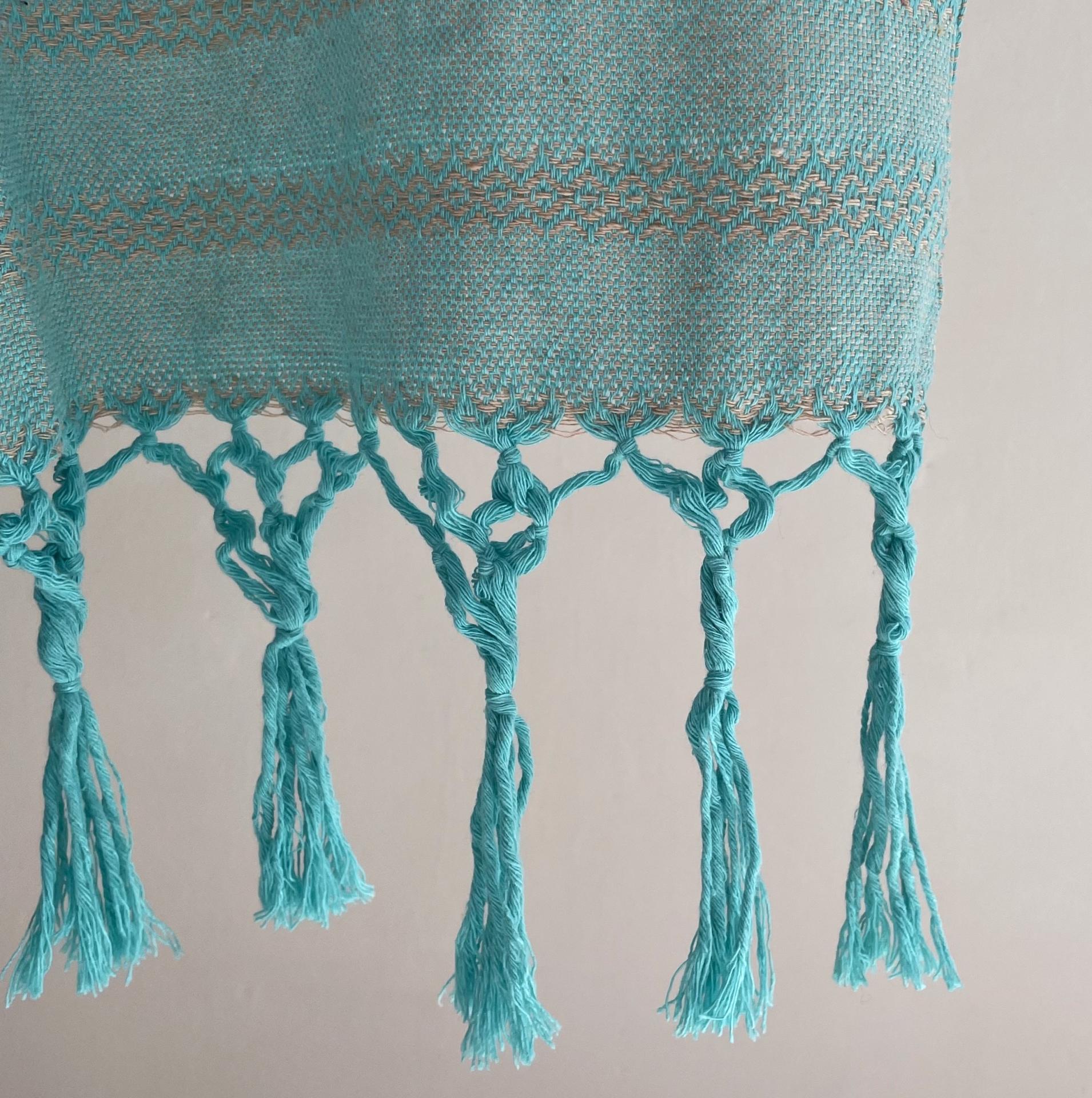 HANDWOVEN COTTON SHAWL FROM MEXICO, TURQUOISE & BEIGE