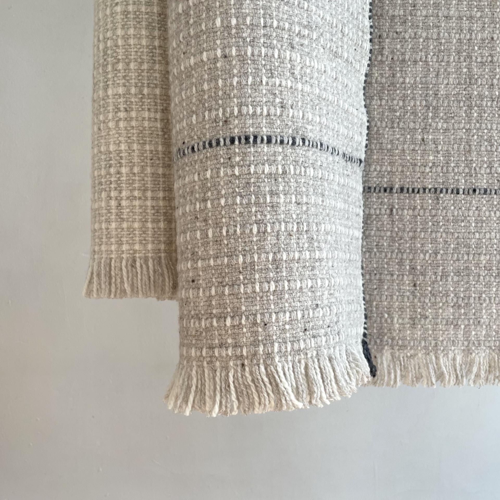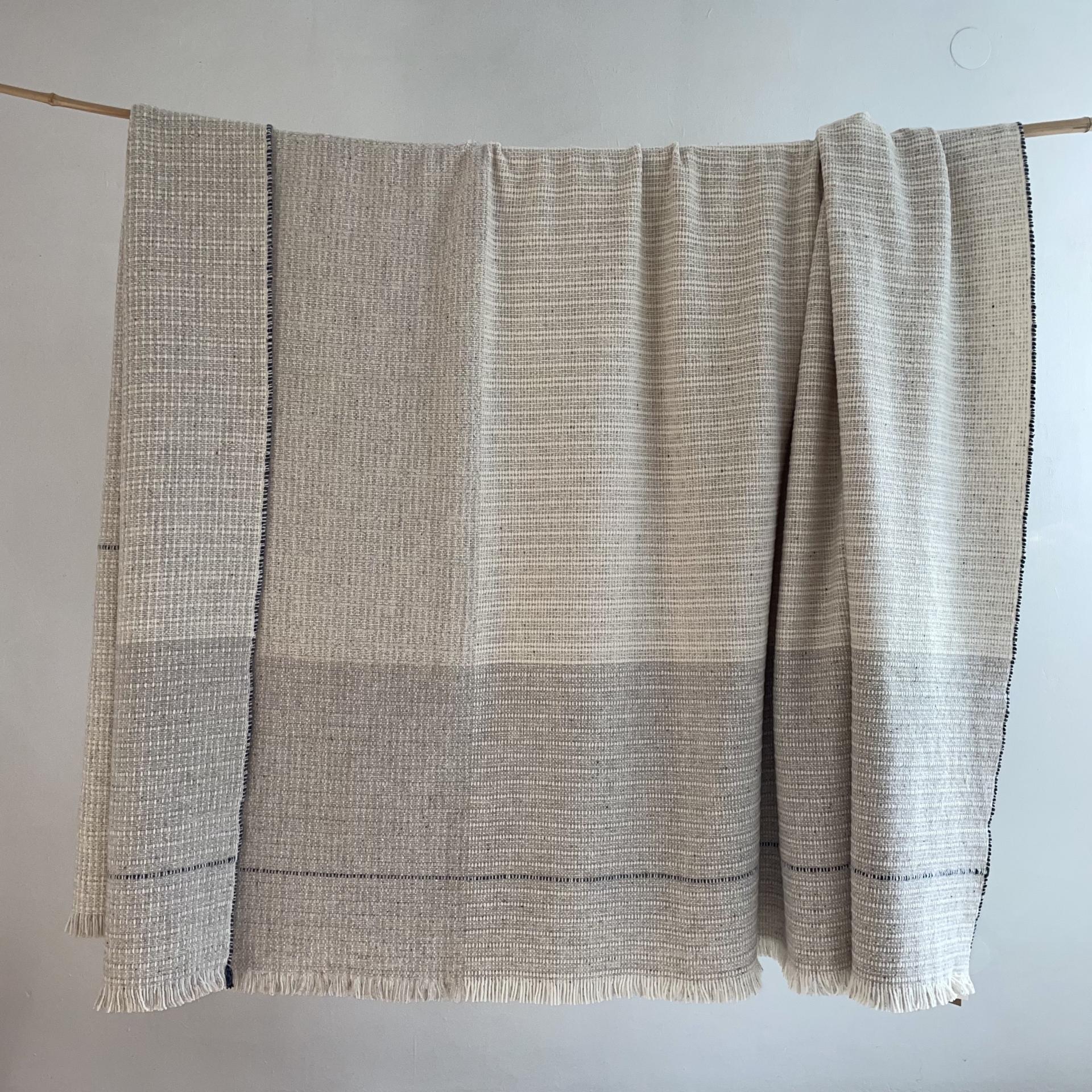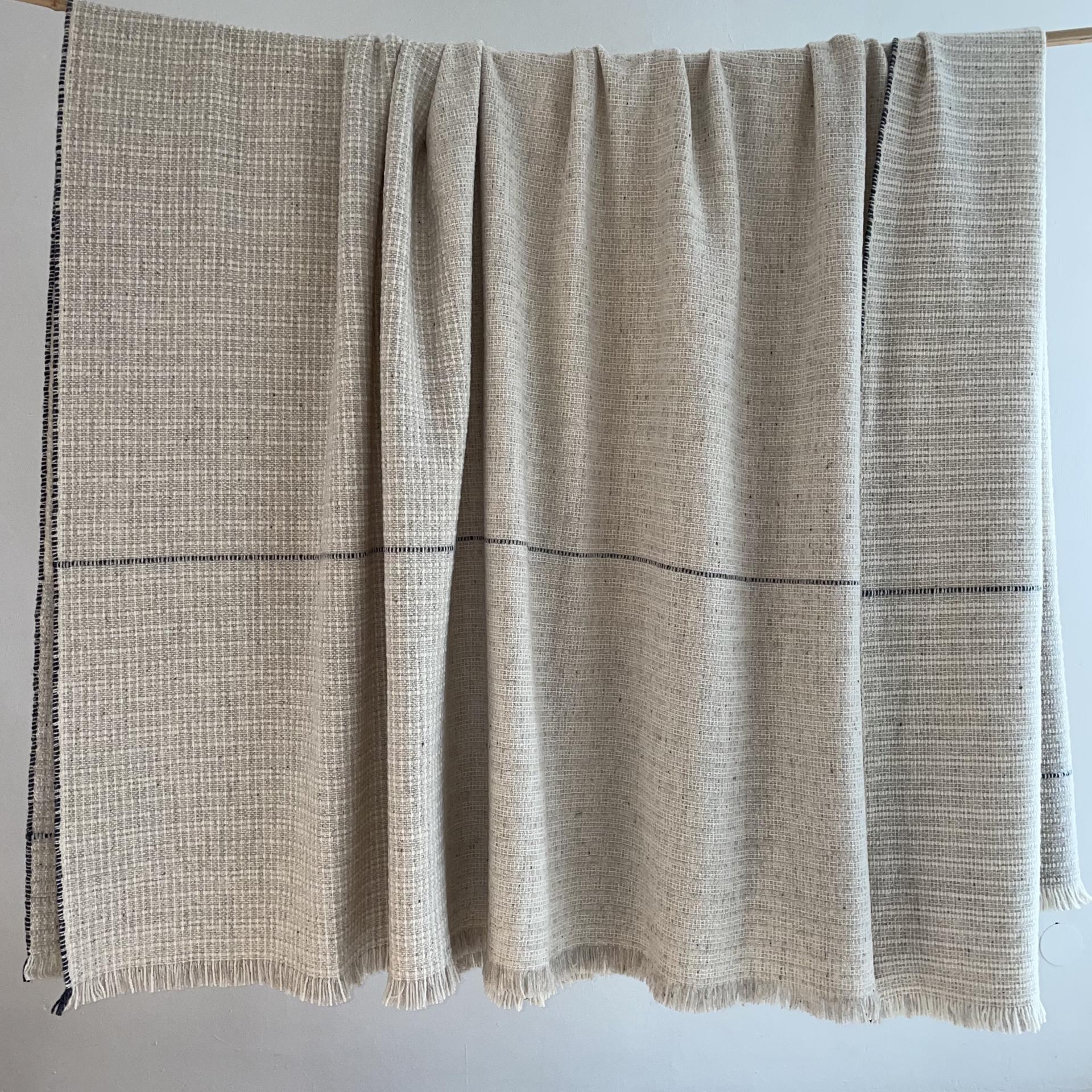 Handwoven Merino Bedspread, Beige & some Dark Grey