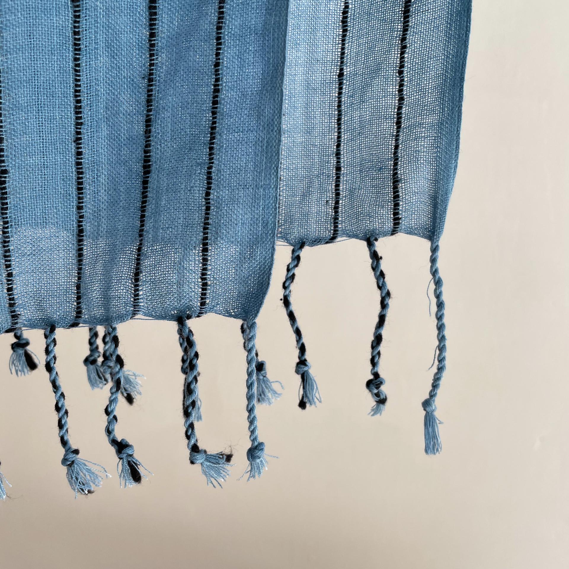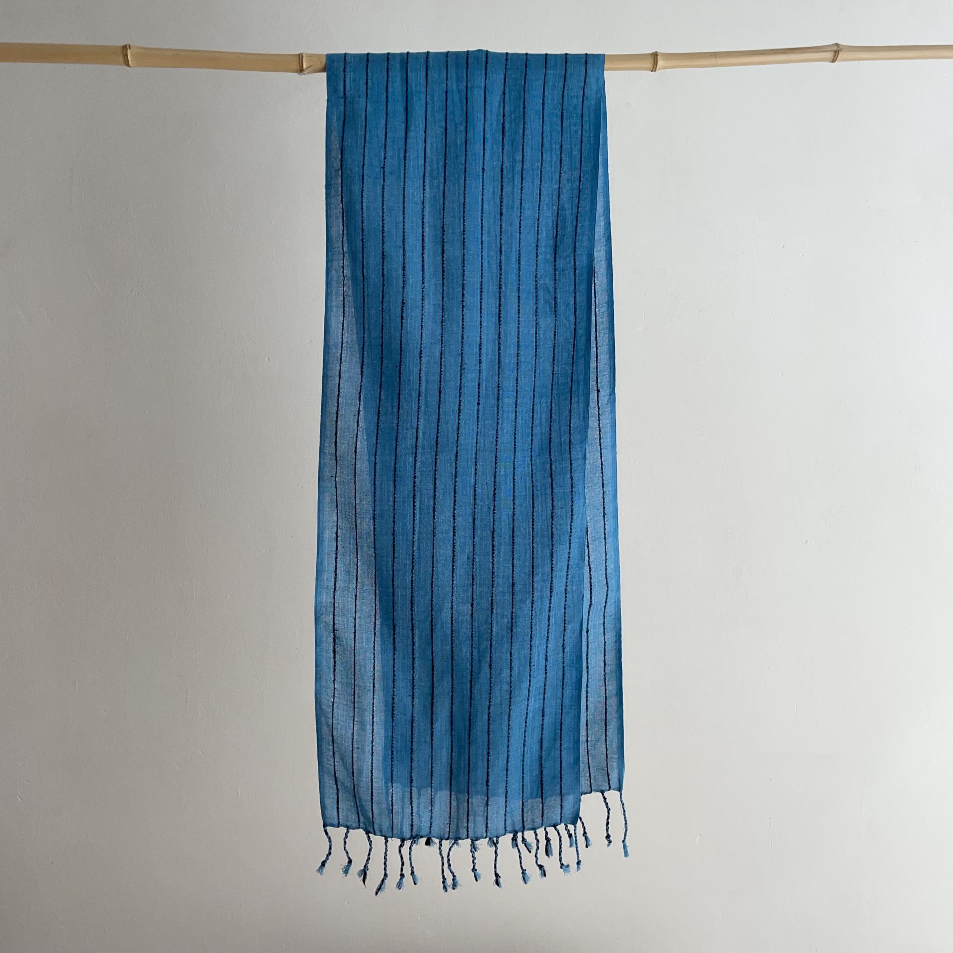 HANDWOVEN SCARF, COTTON & SILK, TURQUOISE BLUE, STRIPES