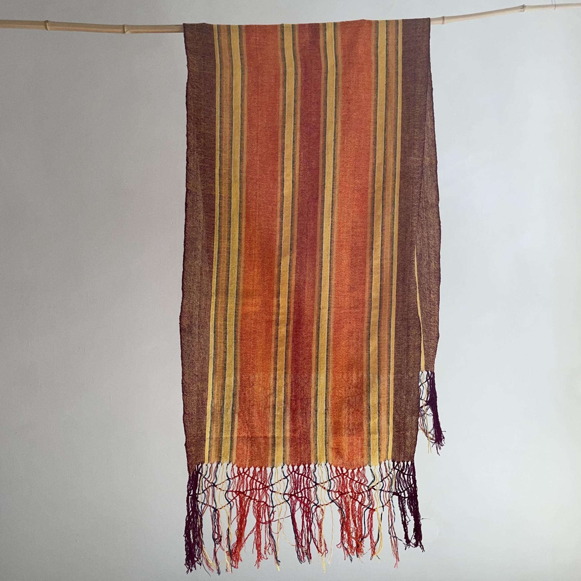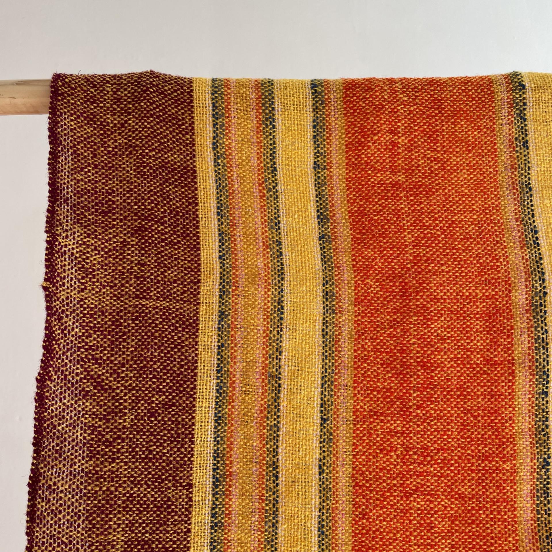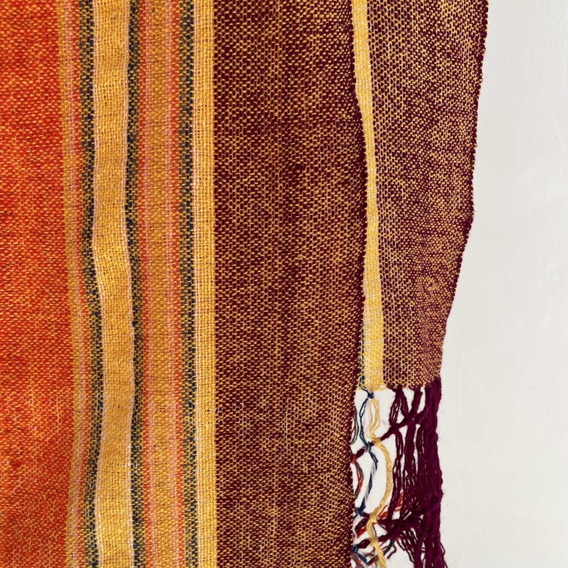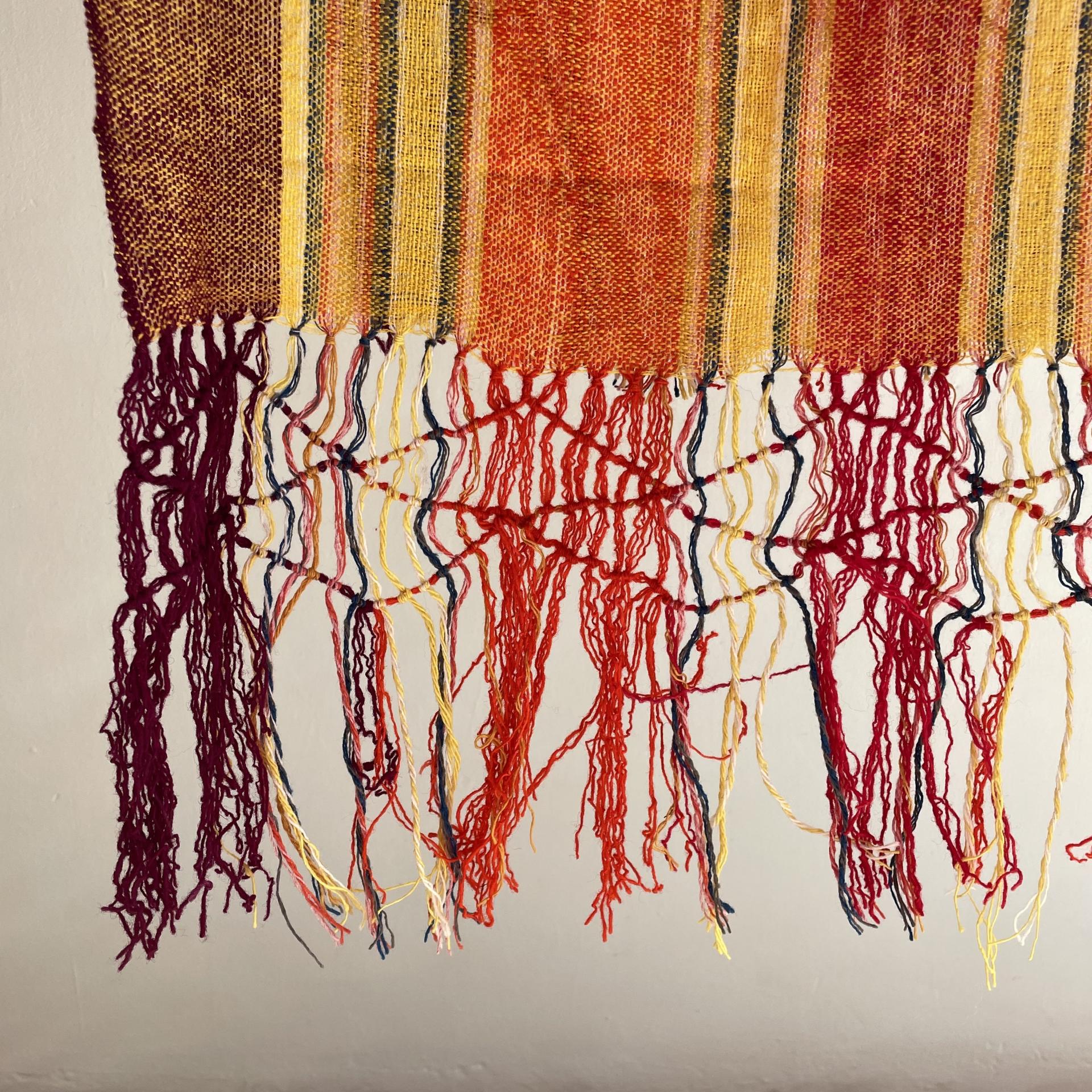 HANDWOVEN WOOL SHAWL FROM MEXICO, CASSIS, RED, ORANGE, YELLOW & SOME BLUE