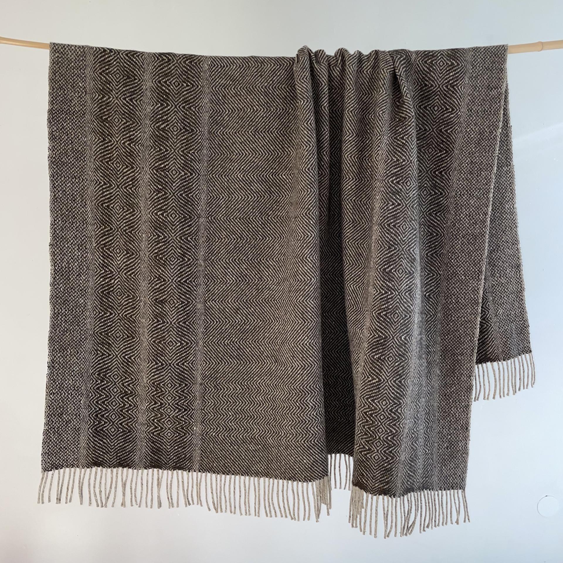 Handwoven Merino Bedspread, Beige & some Dark Grey