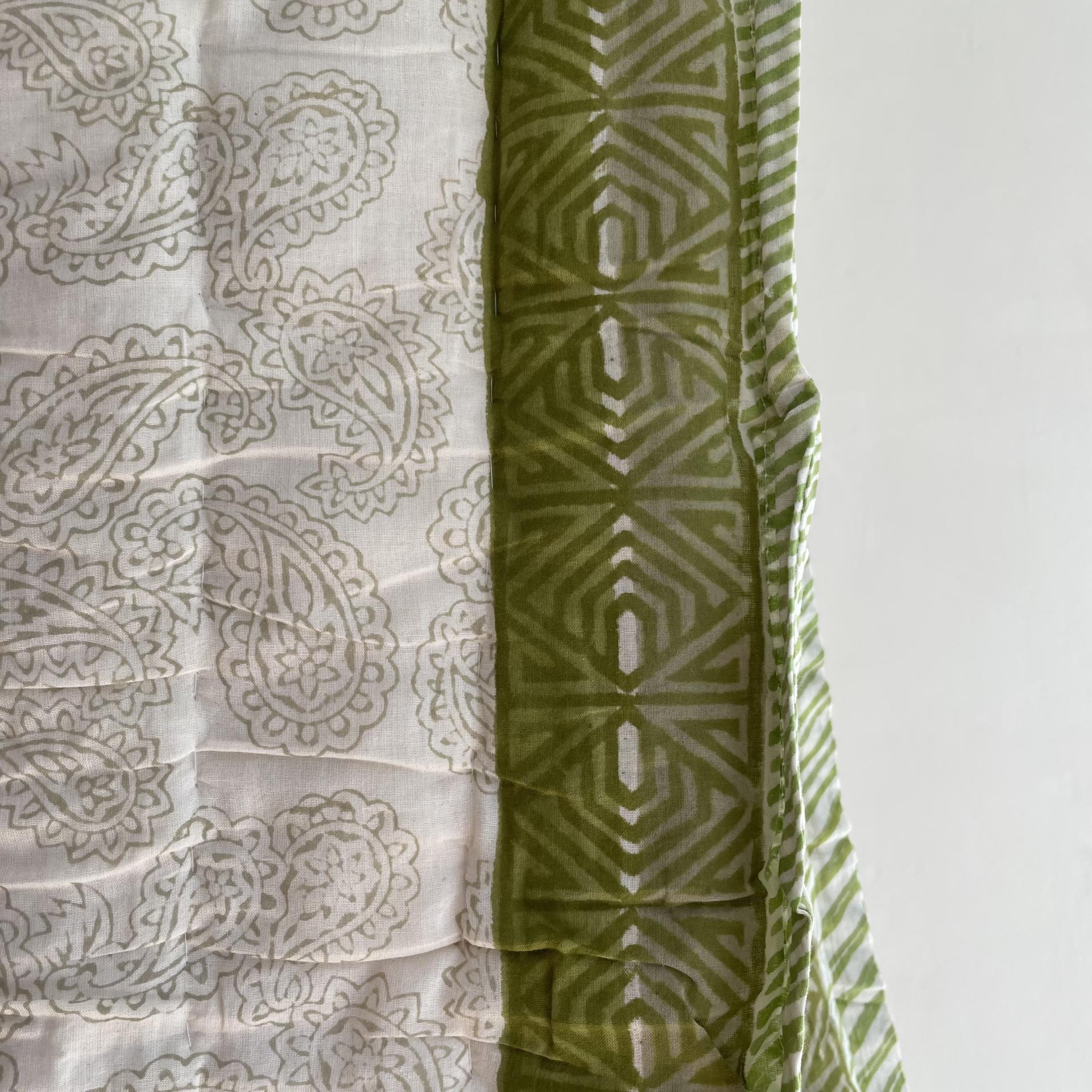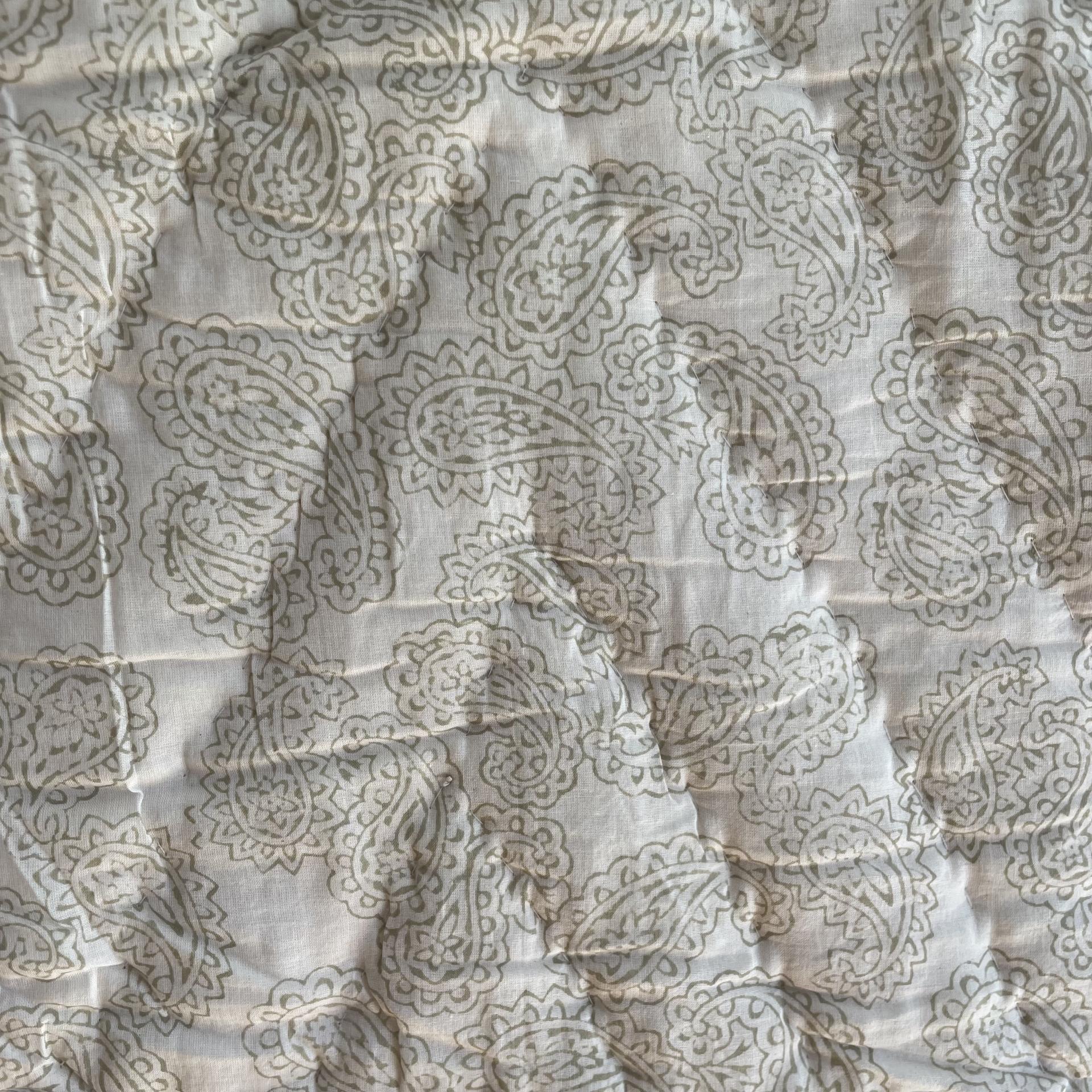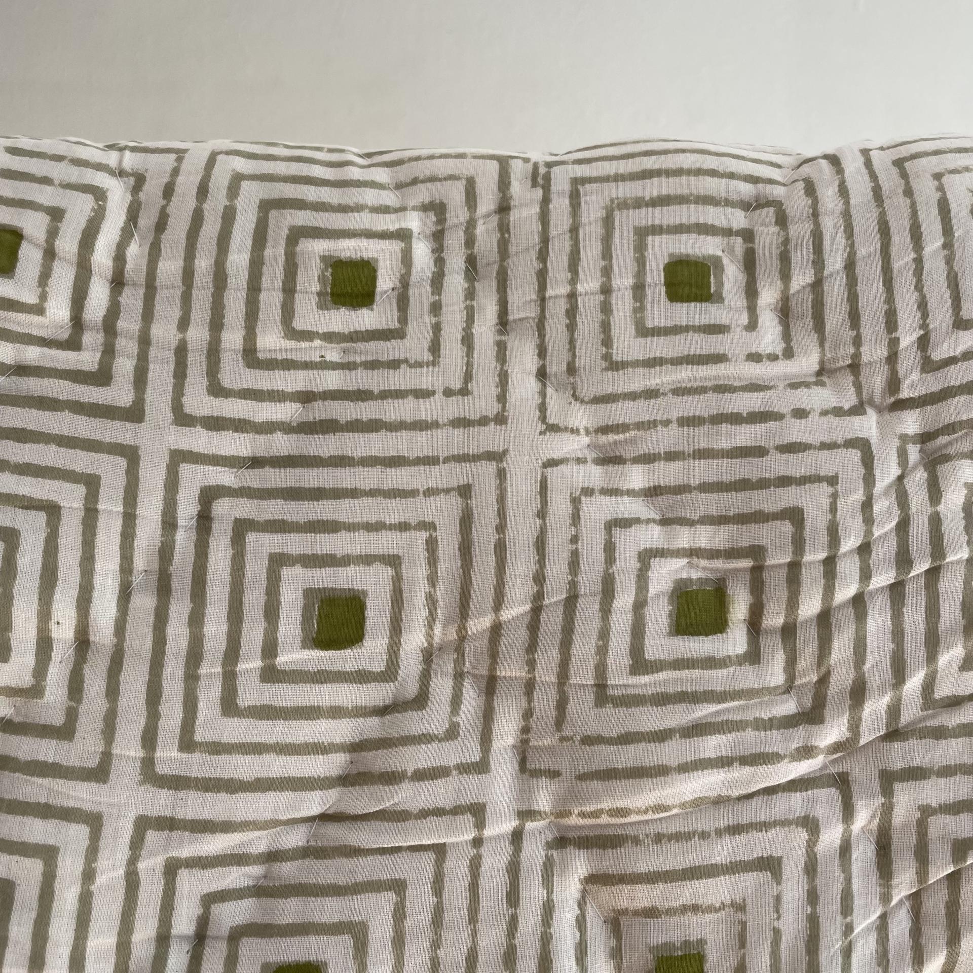 Woodblock Print Green, Smaller Quilted Cotton Blanket from India