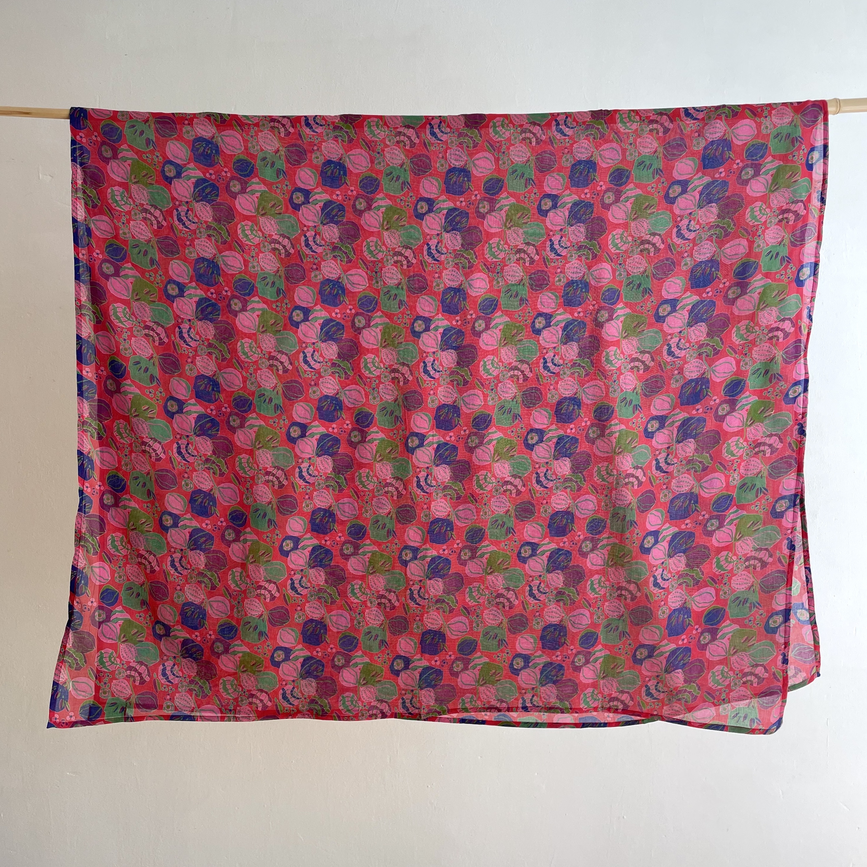 Wrap, Woodblock Print, Cotton, Bloom Red