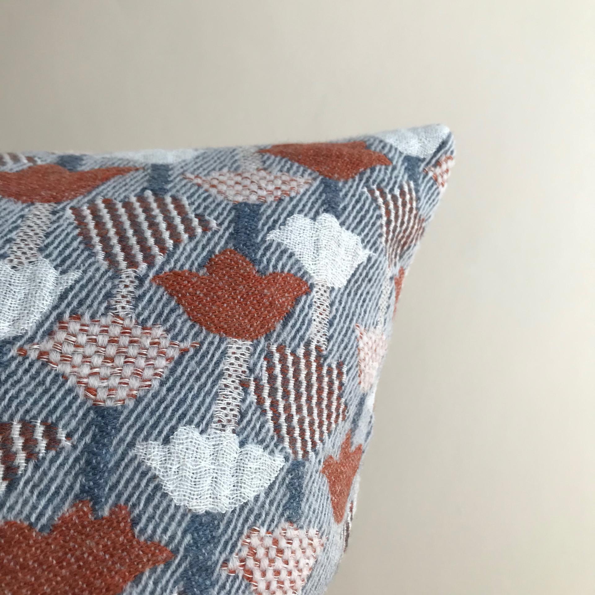rust, dovey blue and wool white