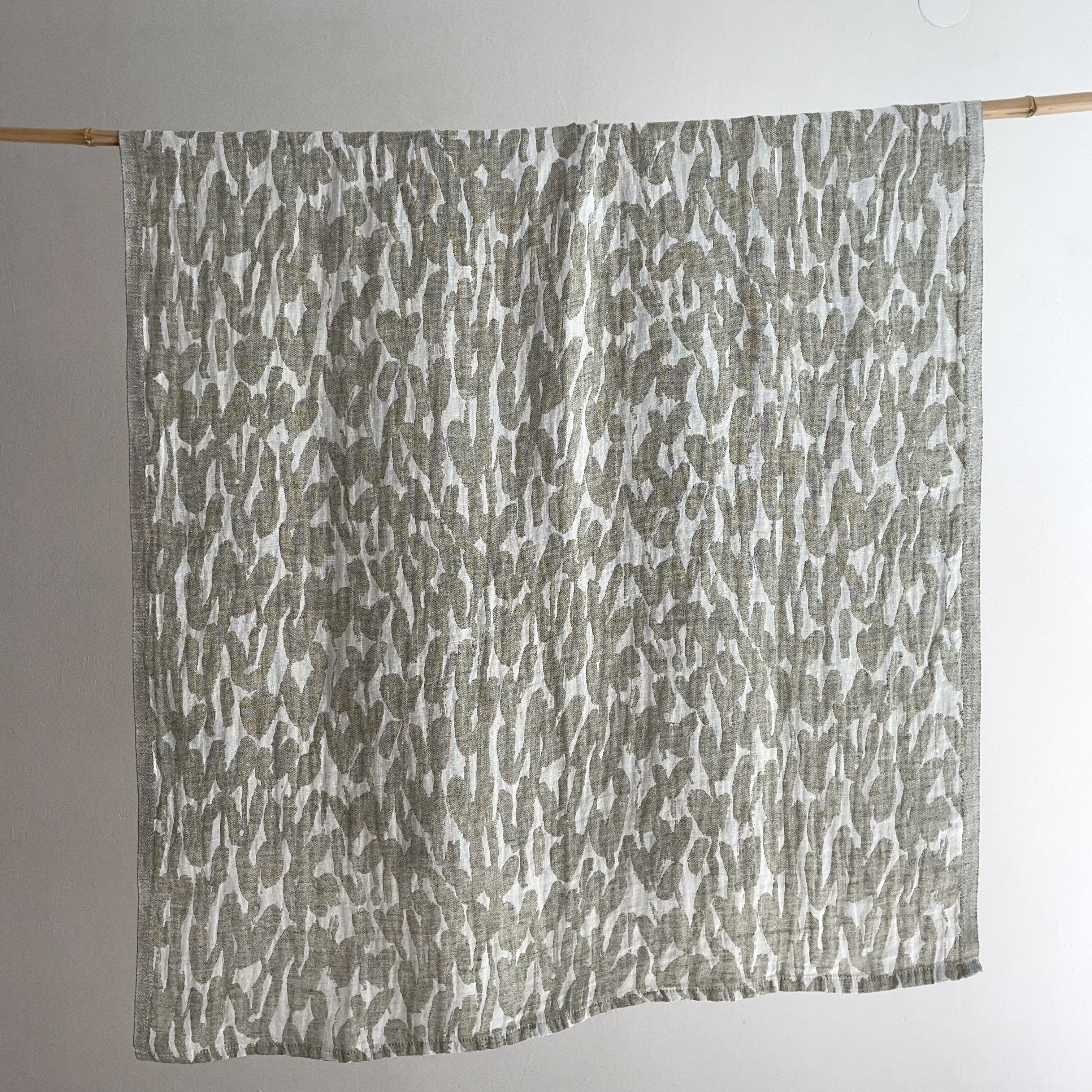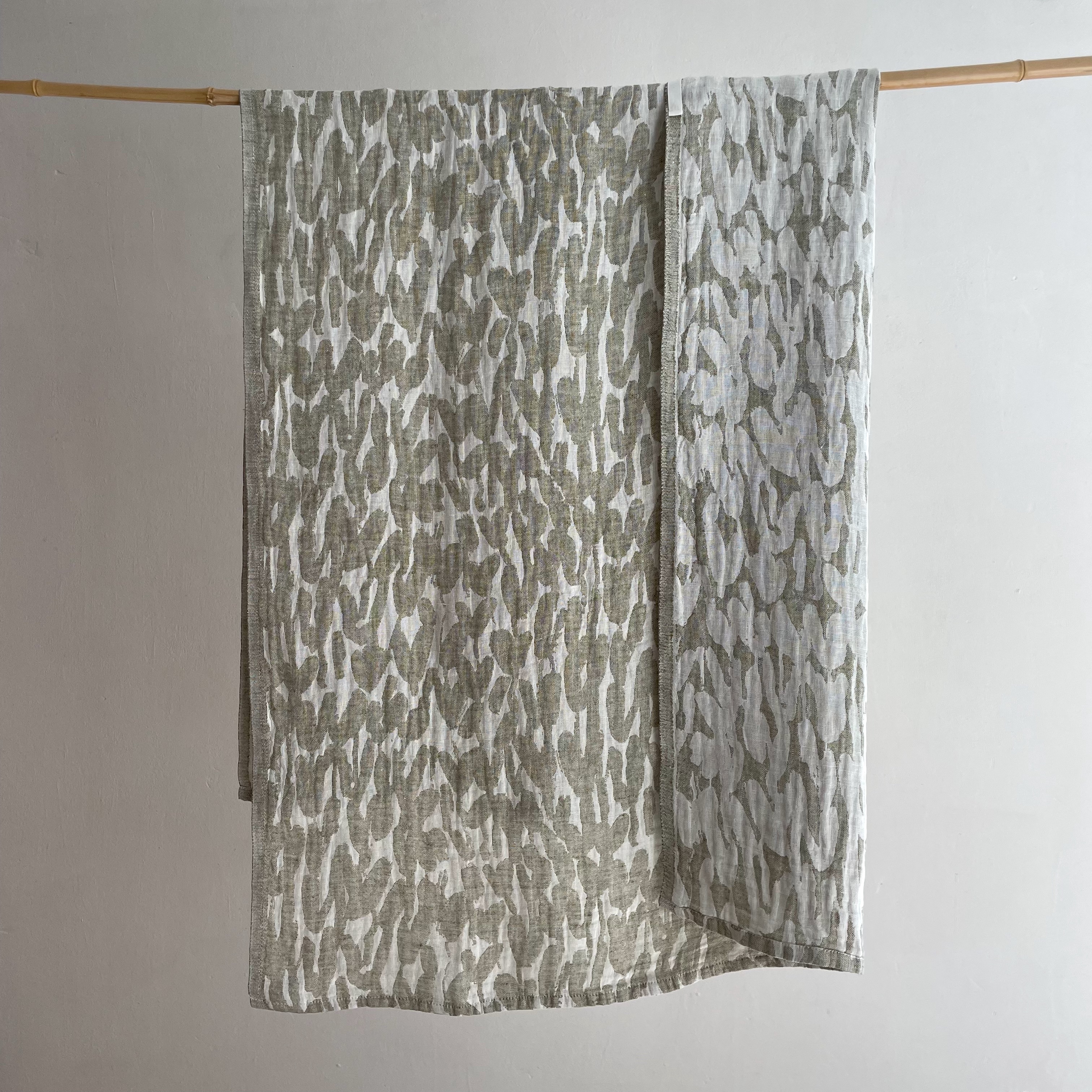 Jäkälä, LINEN TOWEL/BEACH TOWEL, Olive & White