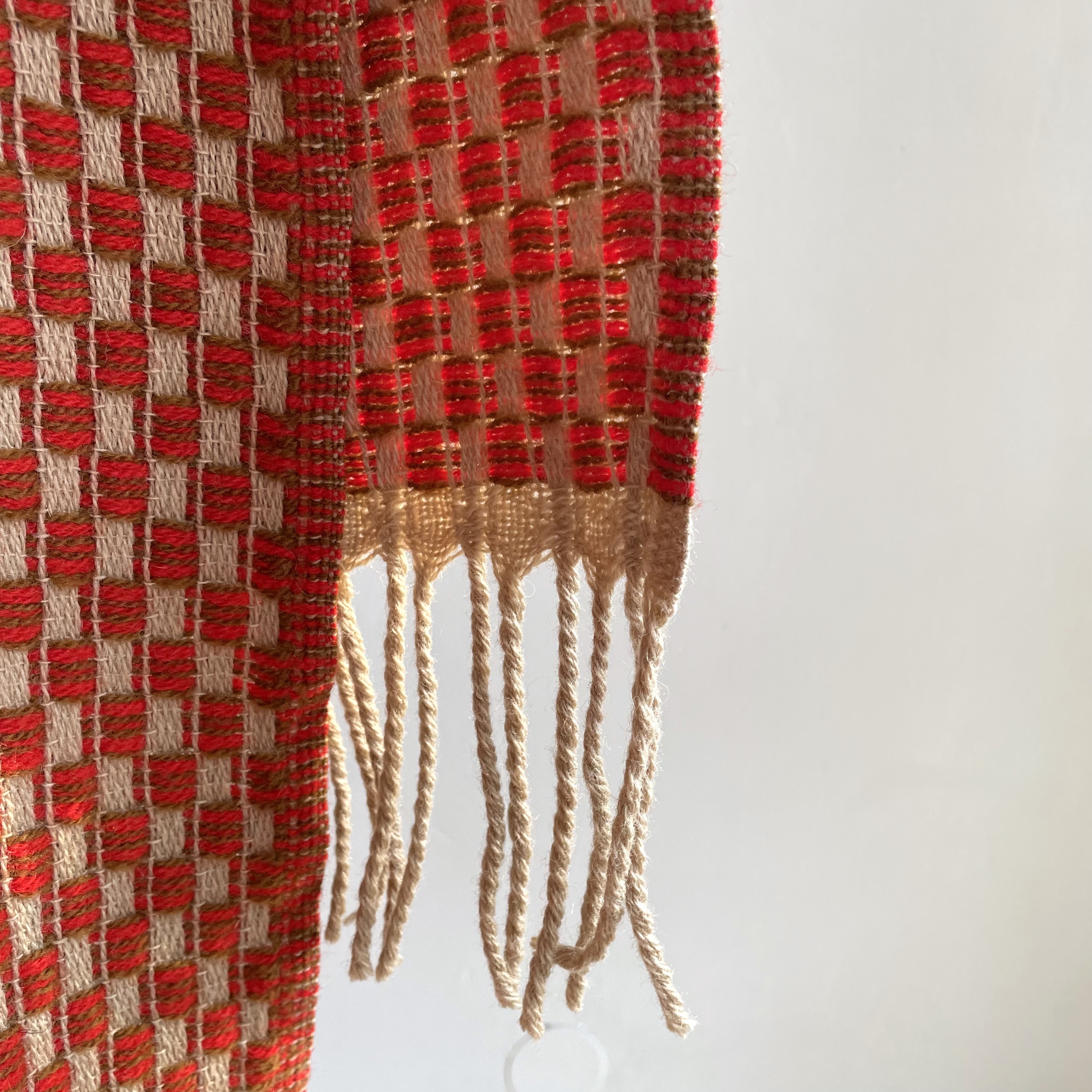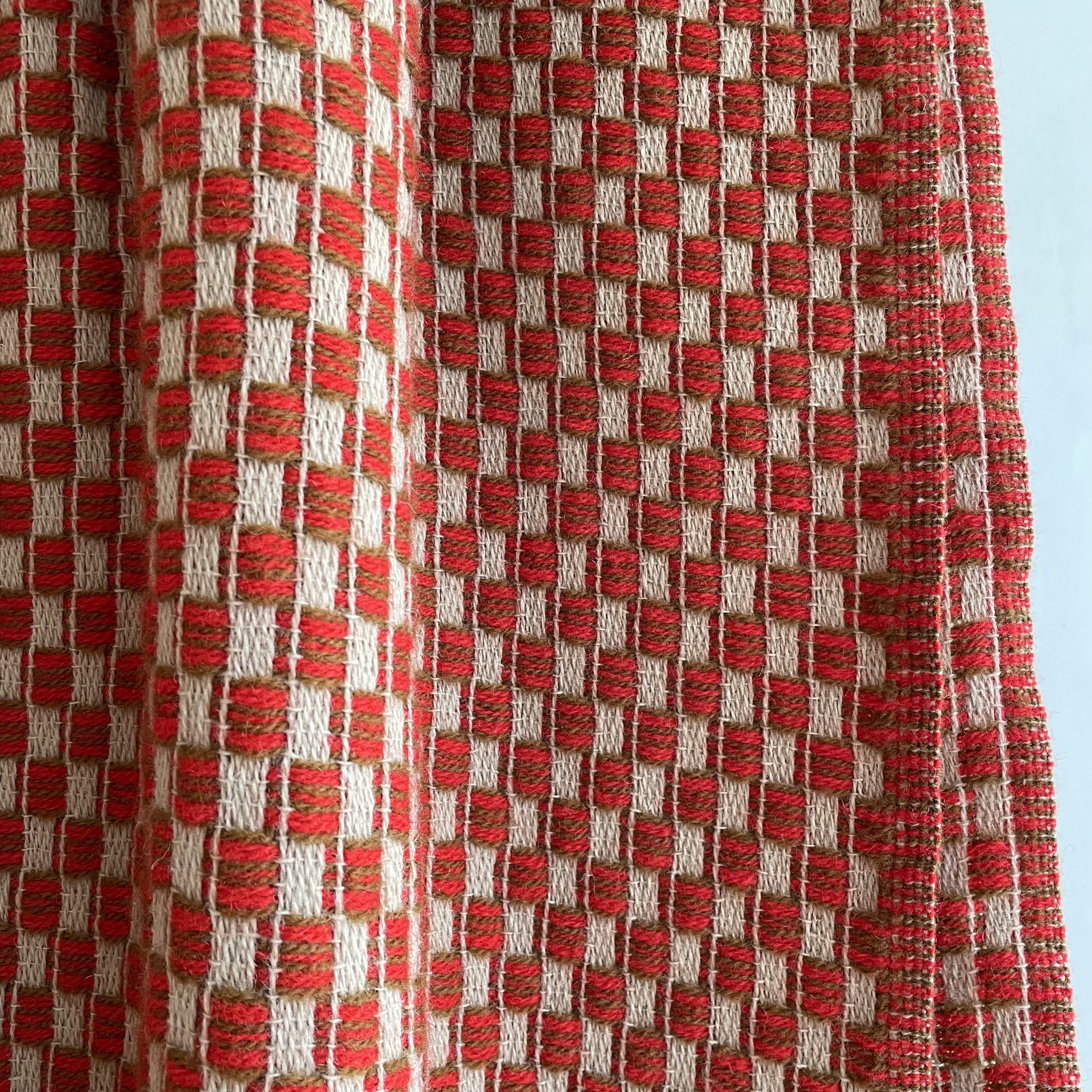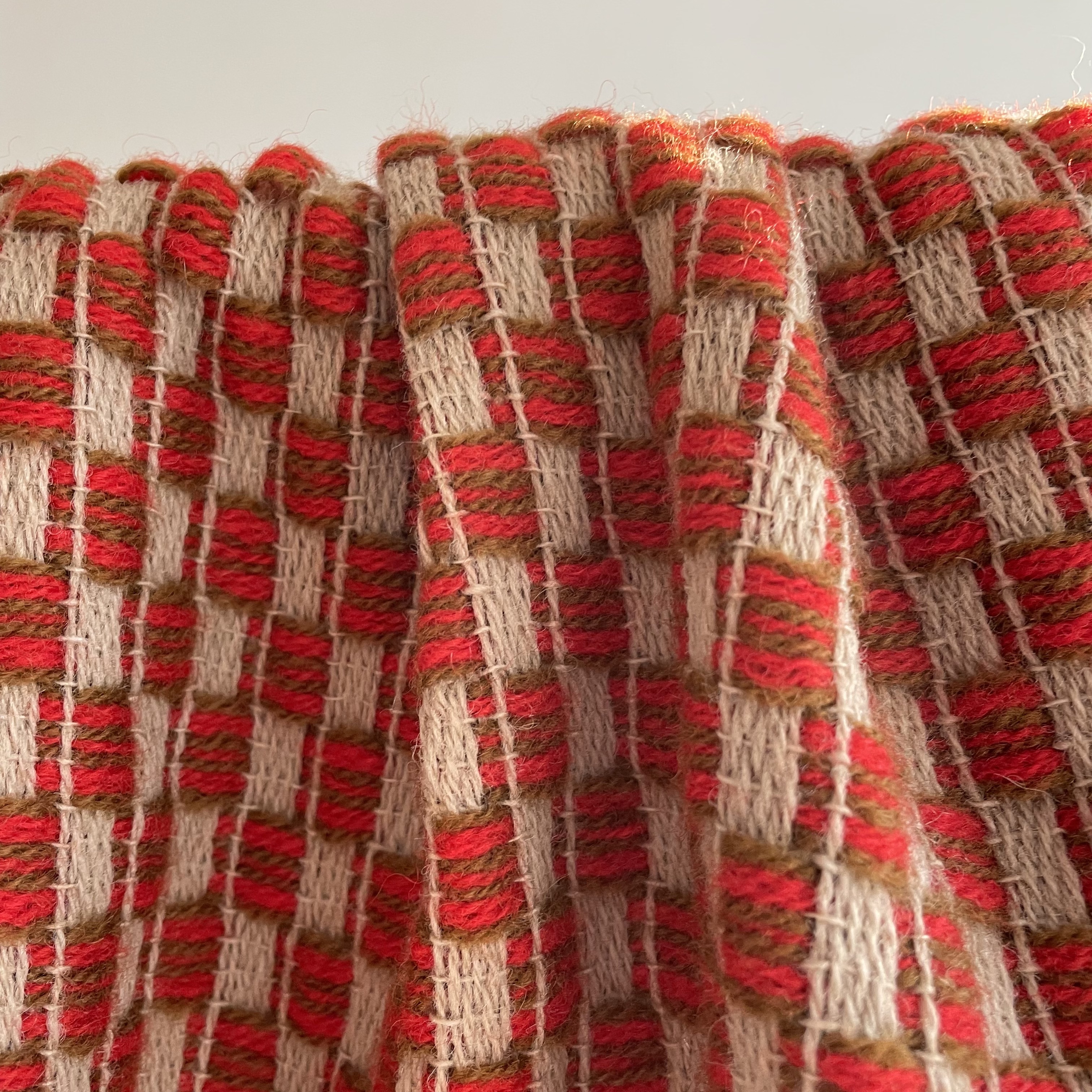 bright red, brown and beige